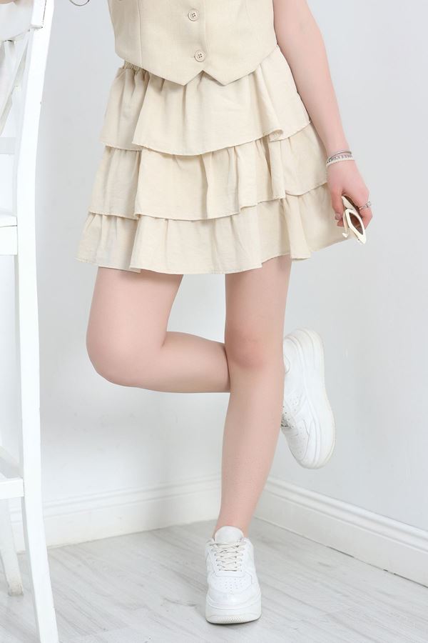 Pu Deri Piliseli Etek Krem - 51097.1779.