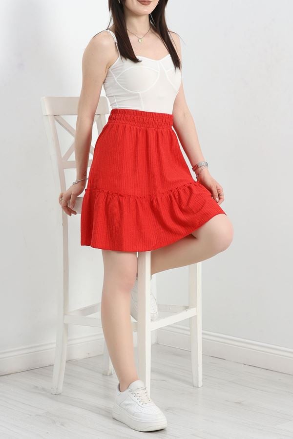 Dalgıç Kumaş Düğme Detaylı Mini Etek Bordo - 51045.1223.