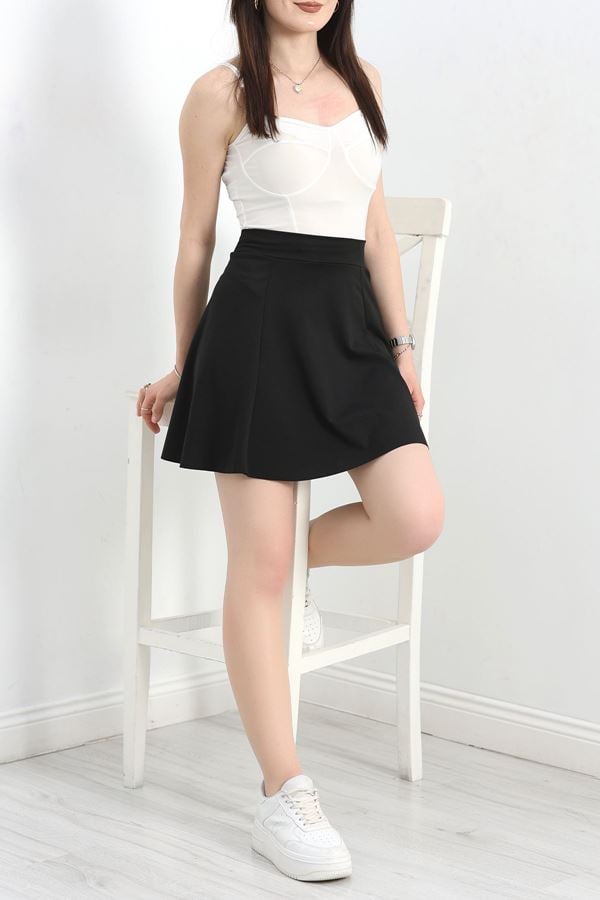 Çelik Örgü Kumaş Yırtmaçlı Şort Etek Siyah - 15519.316.