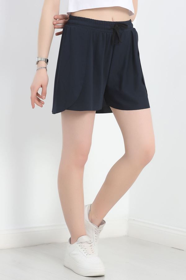 Kemerli Deri Şort Lacivert - 51218.1779.