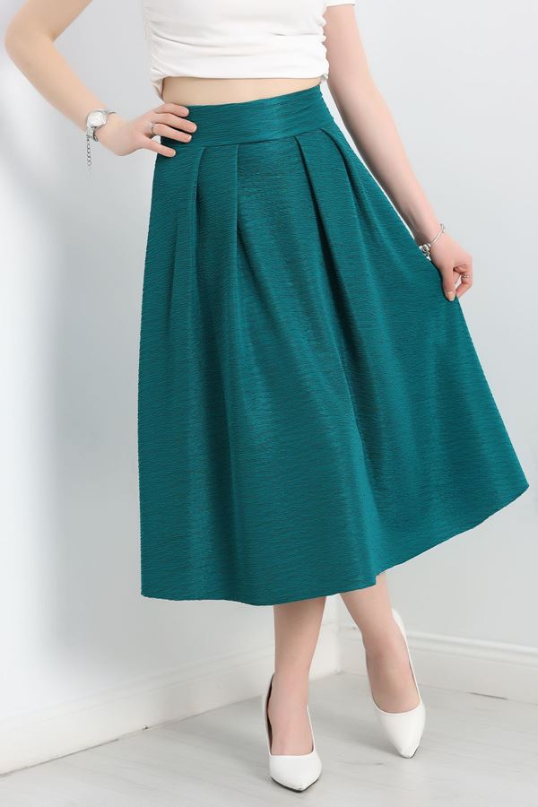 Pu Deri Piliseli Mini Etek Zümrüt - 51084.1779.
