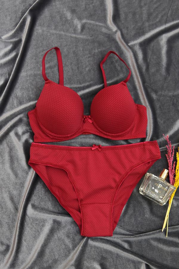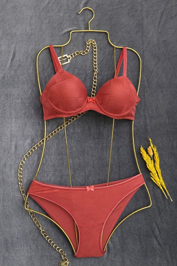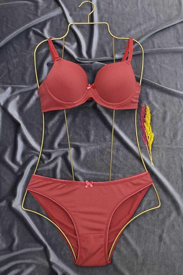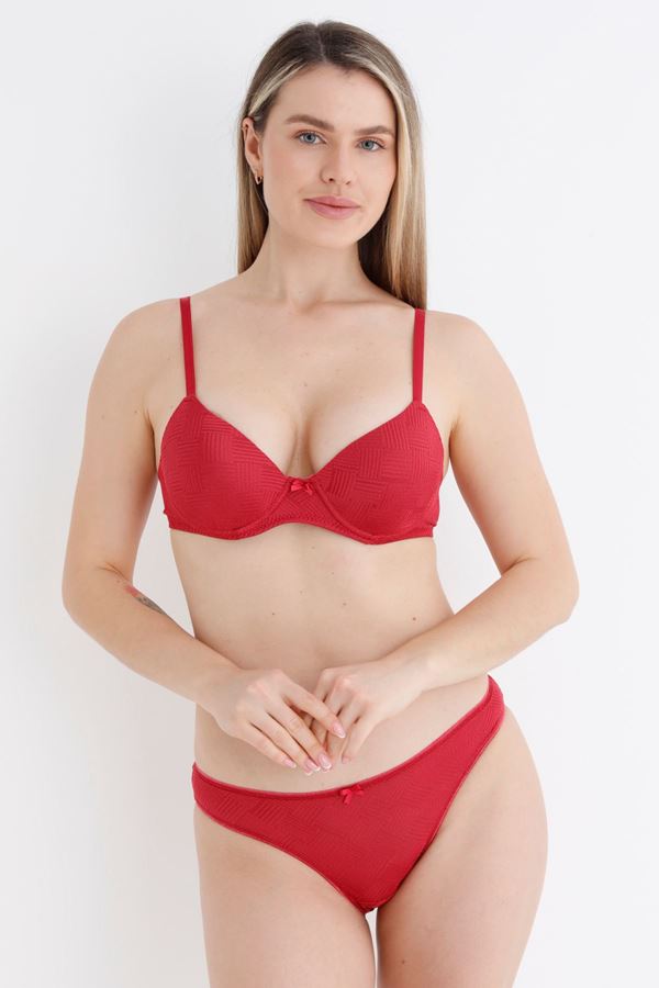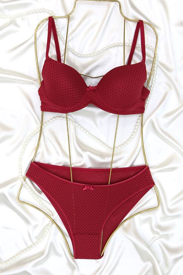 Sütyen Takım Küçük Baklava Desen Dolgulu Vişne - 2551.1783.
