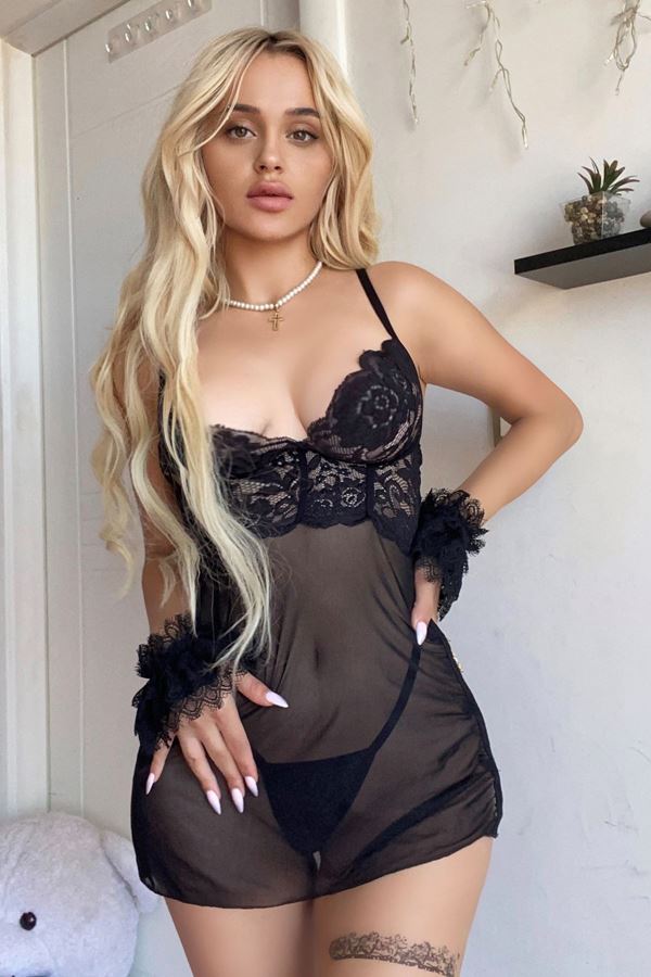 Özel Bölgesi Açık Dantelli Gecelik Siyah - 3065.1364.