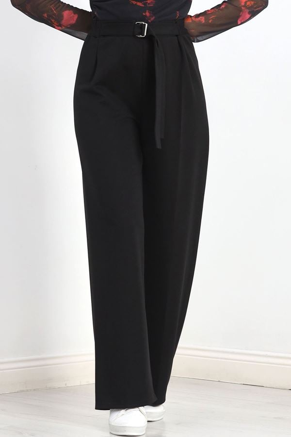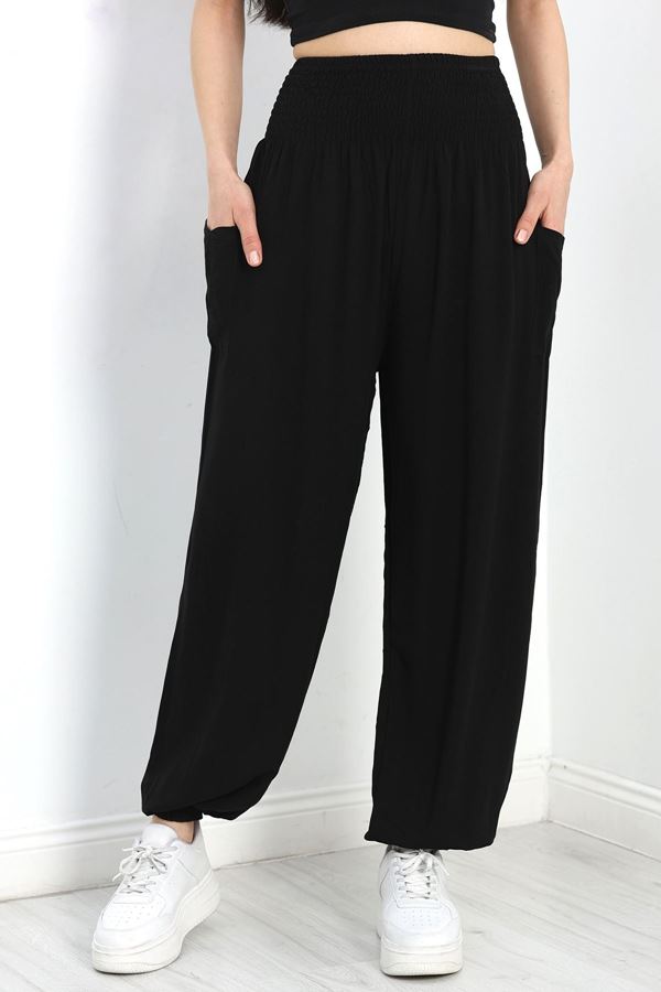 Beli Lastikli Dabıl Palazzo Pantolon Siyah - 90714.1837.