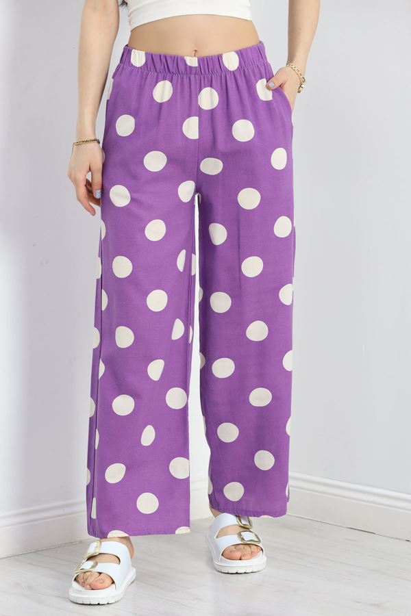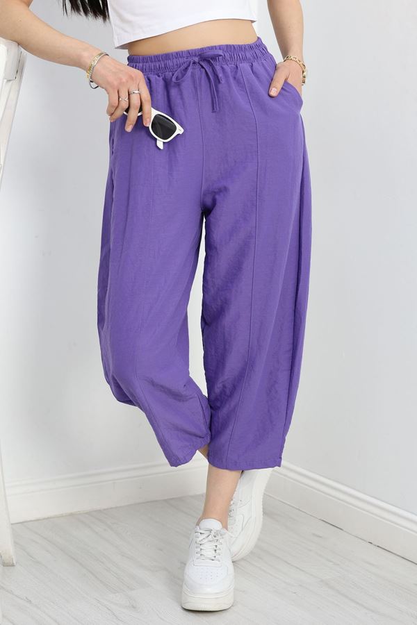 Dabıl Kumaş Beli Lastikli Palazzo Pantolon Mürdüm - 51063.1991.