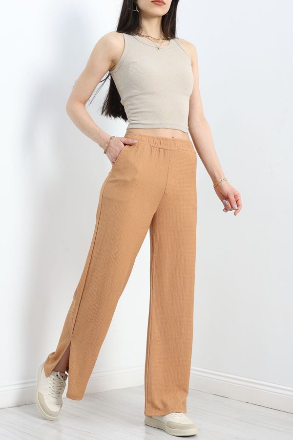 Dilvin Geniş Paça Yumuşak Pantolon Camel - 72170.2100.