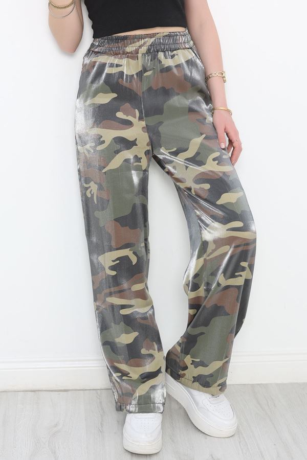 Dabıl Kumaş Beli Lastikli Palazzo Pantolon Haki - 51063.1991.