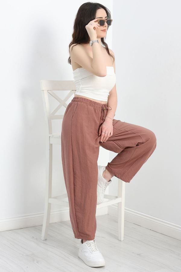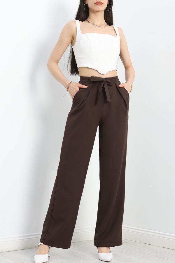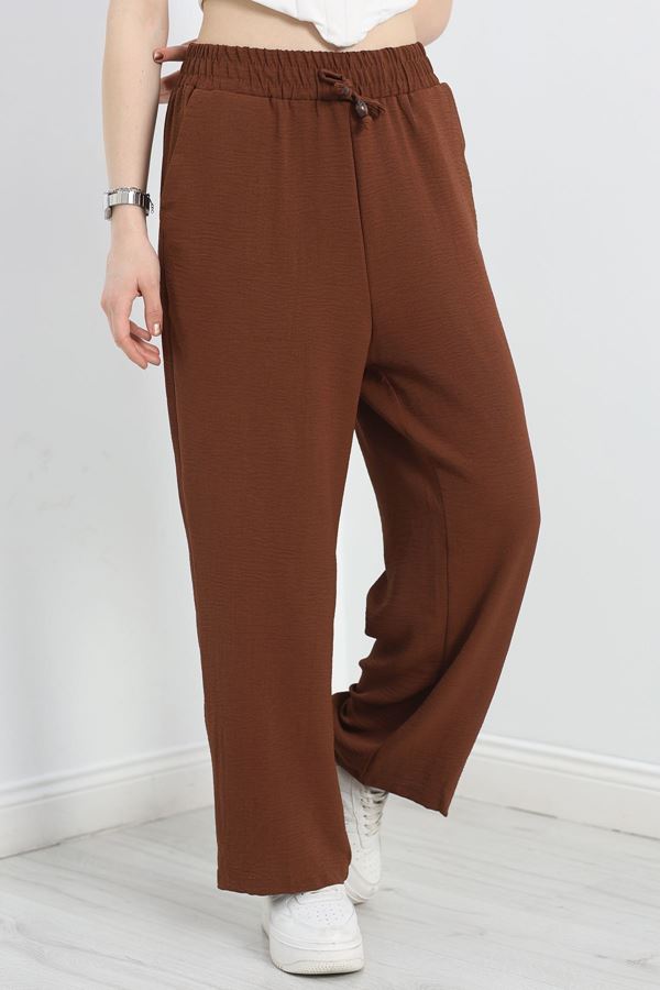 Beli Lastikli Dabıl Palazzo Pantolon Kahve - 90714.1837.