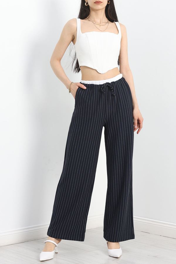 Şeritli Triko Pantolon Lacivert - 2393.1765.
