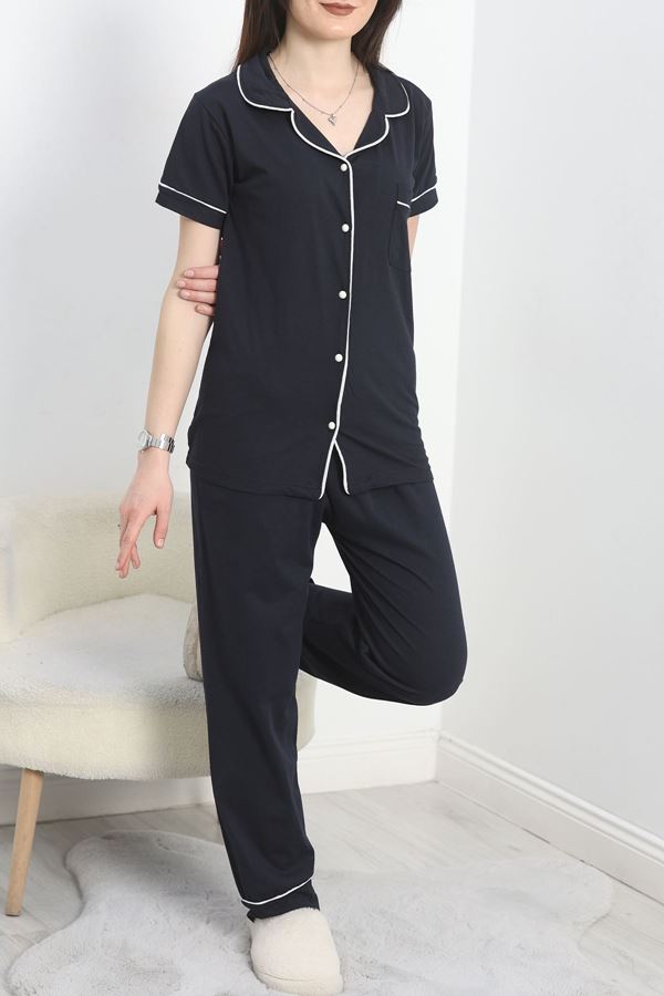 85 Cm Astarlı Kaşe Kaban İndigo - 90037.1839.