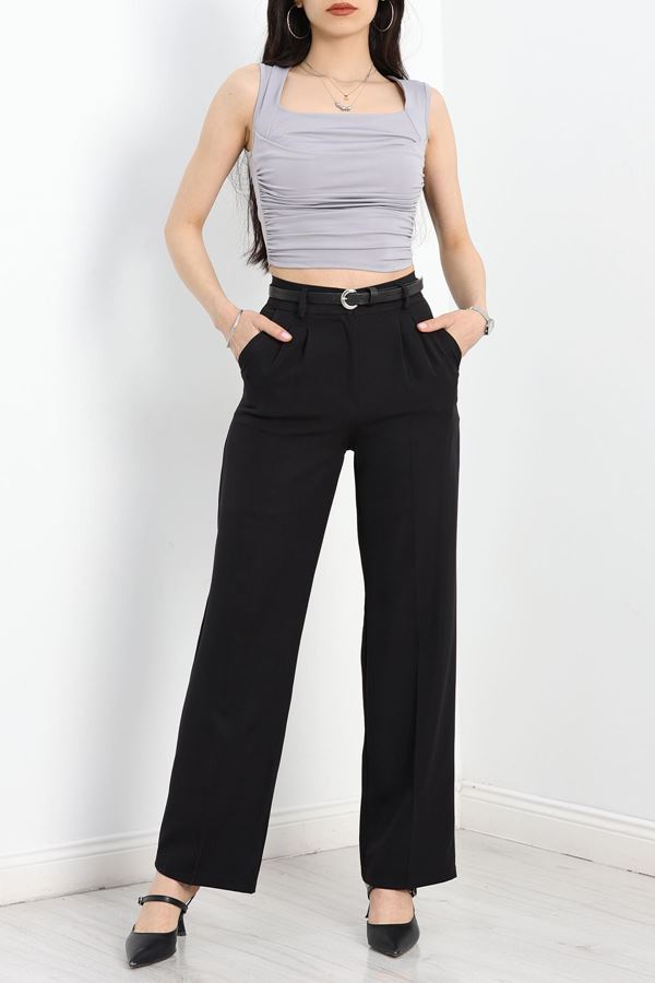 Kemer Cırtlı Krep Pantolon Siyah - 20255.1865.