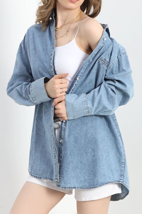 Terikoton Oversize Gömlek Beyaz - 30840.1949.