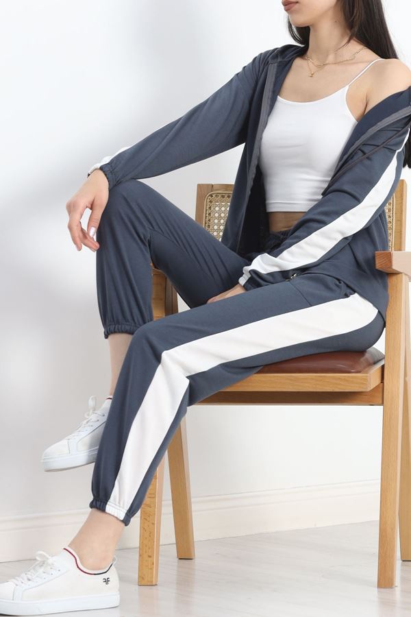 Yırtmaçlı Şeritli 2 İplik Eşofman Altı Gri - 40022.1857.
