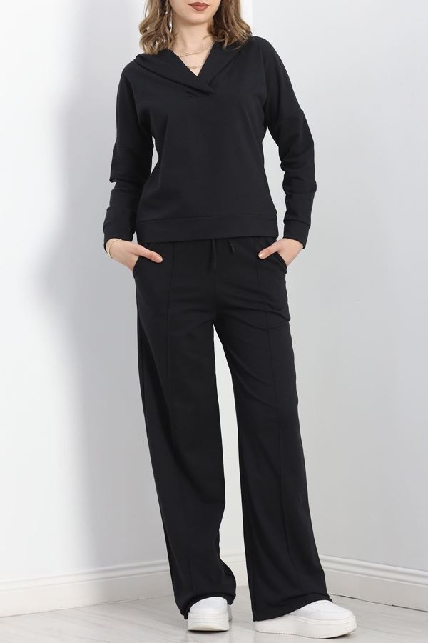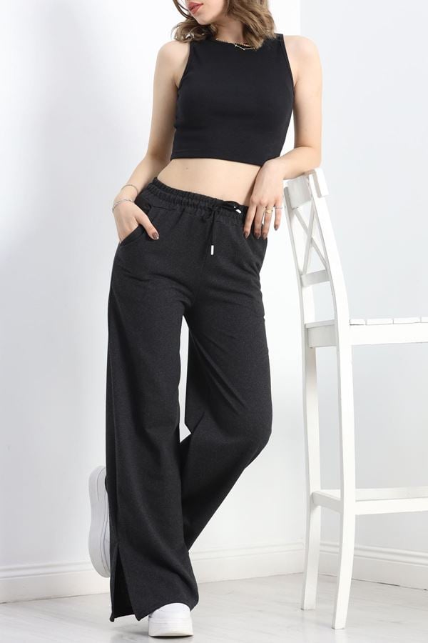 Yırtmaçlı 2 İplik Eşofman Altı Siyah - 40025.1857.
