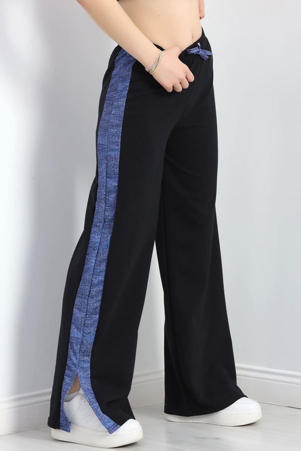 Yırtmaçlı Şeritli 2 İplik Eşofman Altı Siyah - 40022.1857.