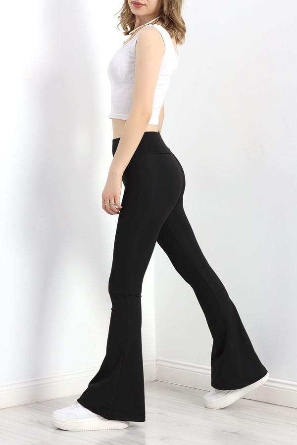 Geniş Kemer İspanyol Paça Dalgıç Tayt Siyah - 40125.1098.
