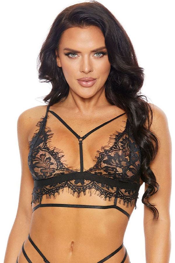 Yaprak Desen Sütyen Takım Dolgulu Siyah - 2559.1783.