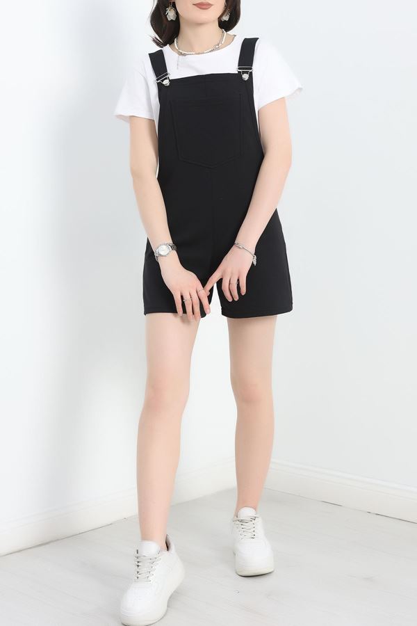 Askılı Düğmeli Süet Elbise Siyah - 42680.1256.