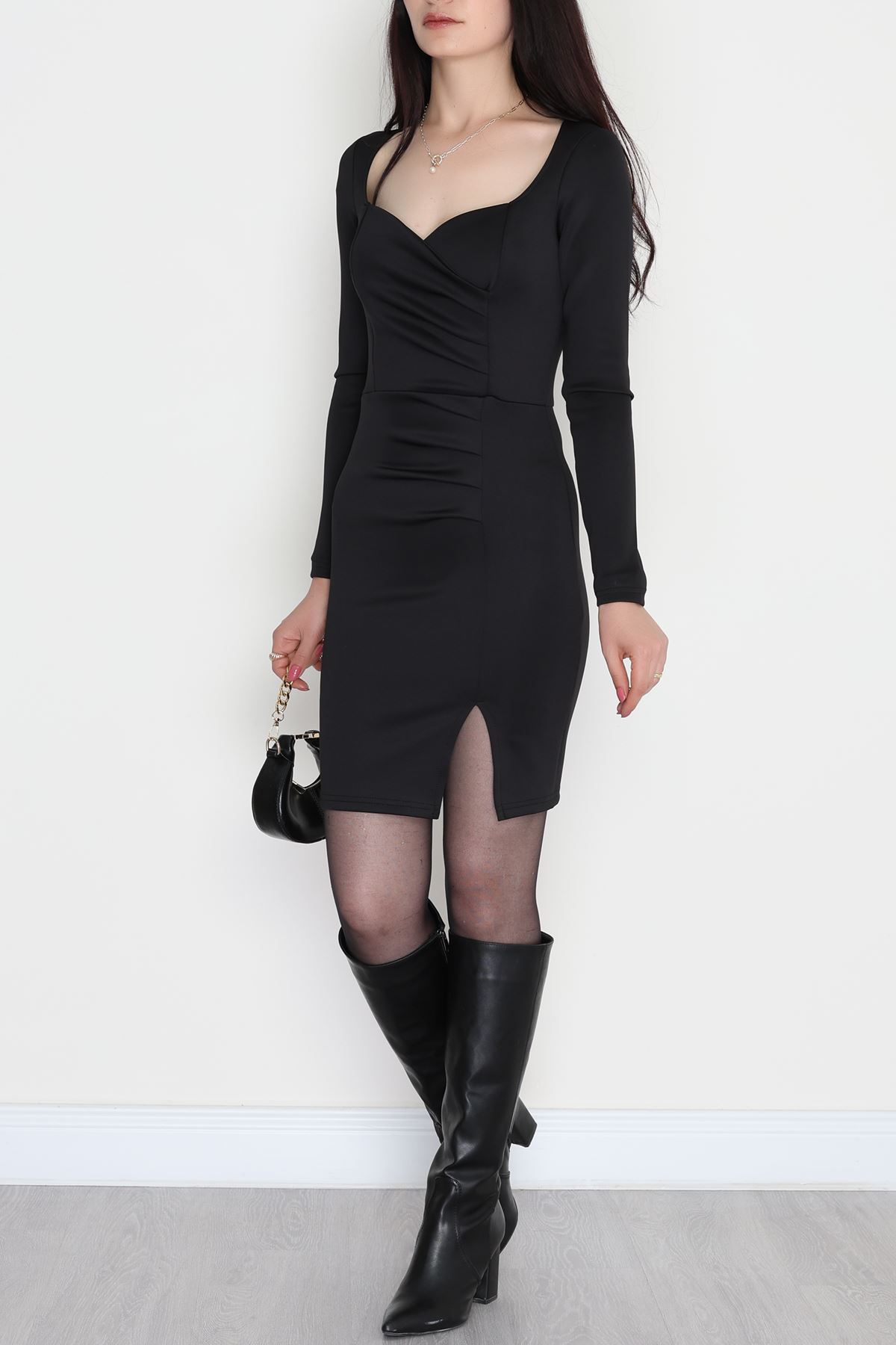 Kalp Yaka Krep Elbise Siyah - 582643.1592.