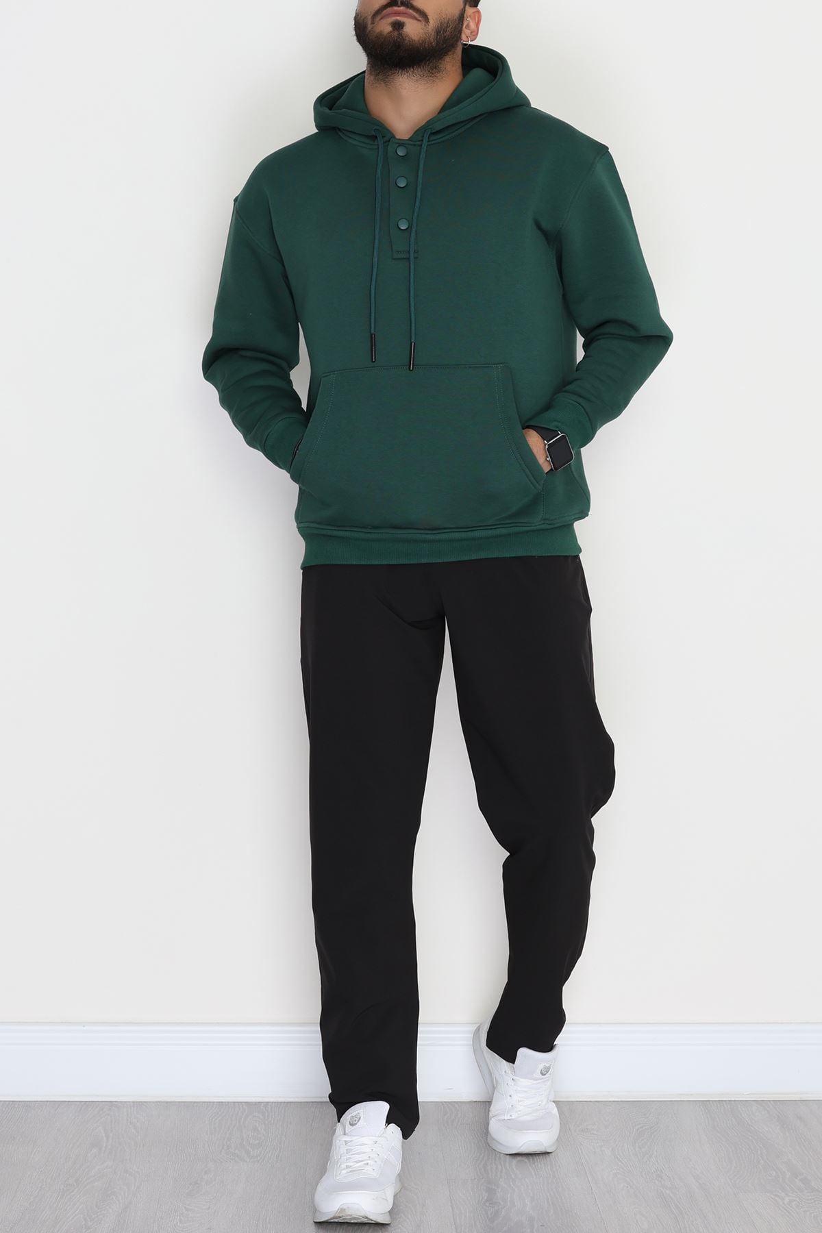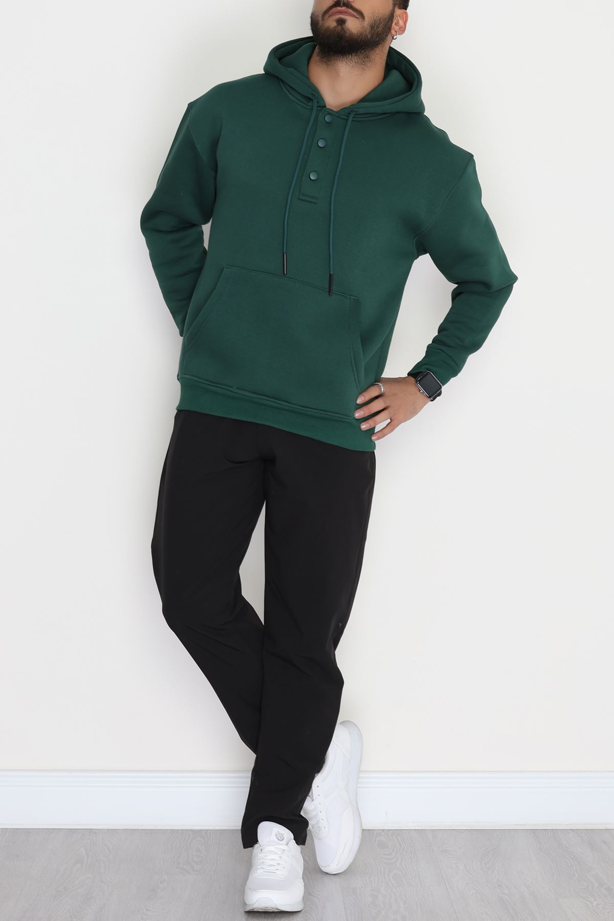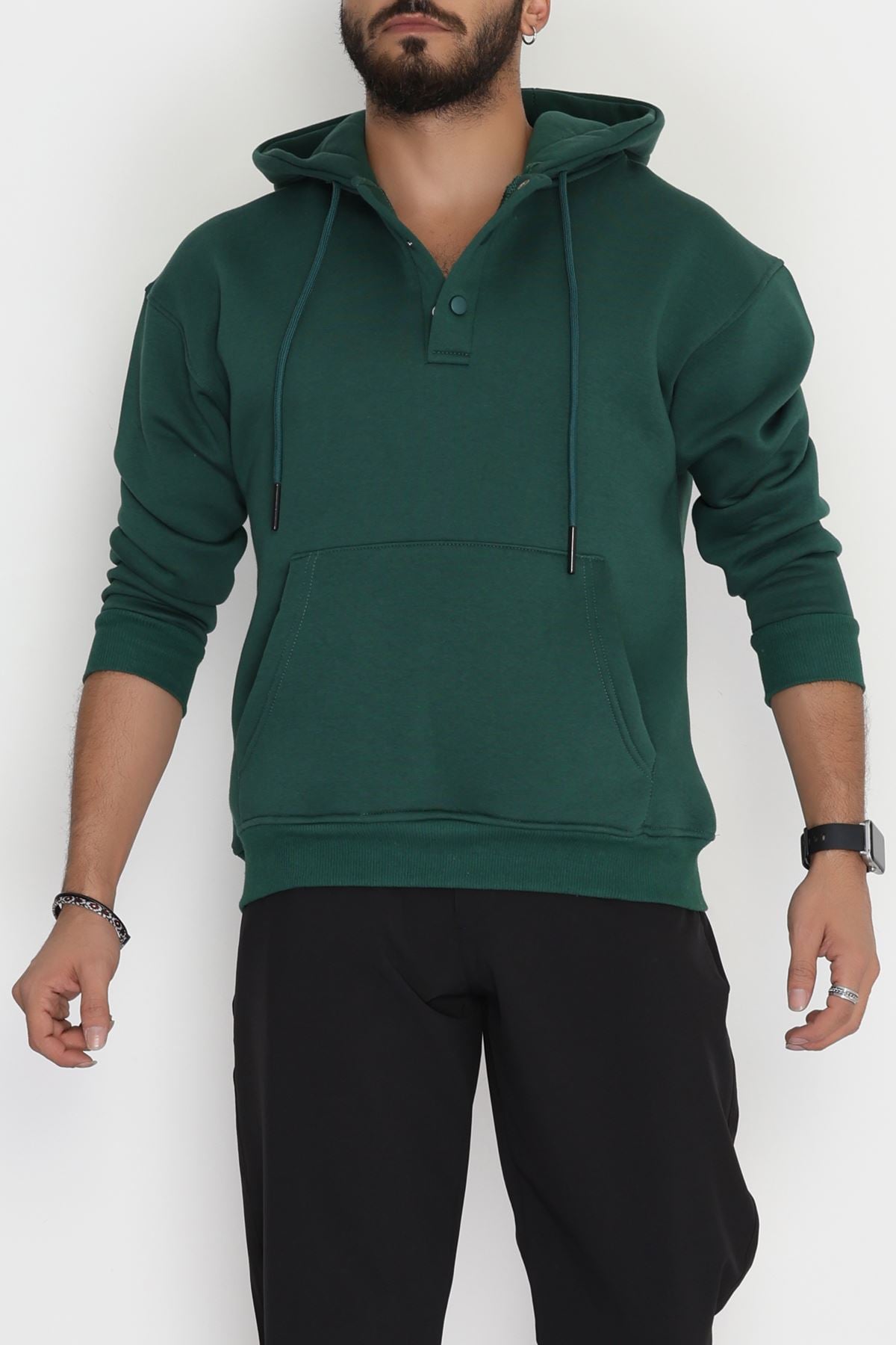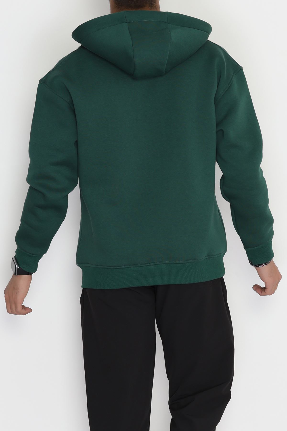 Kanguru Cepli 3 İplik Şardonlu Erkek Sweat Zümrüt - 42592.2086.