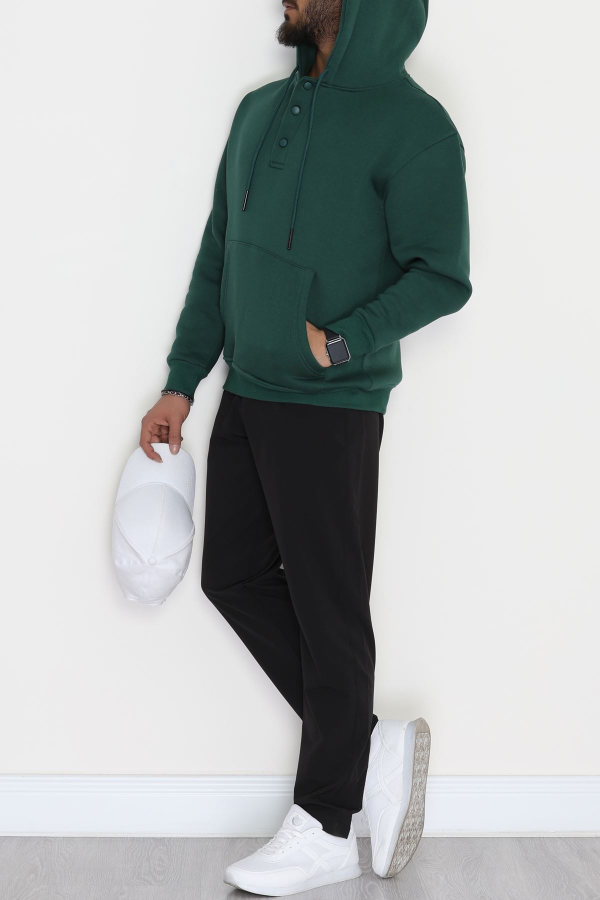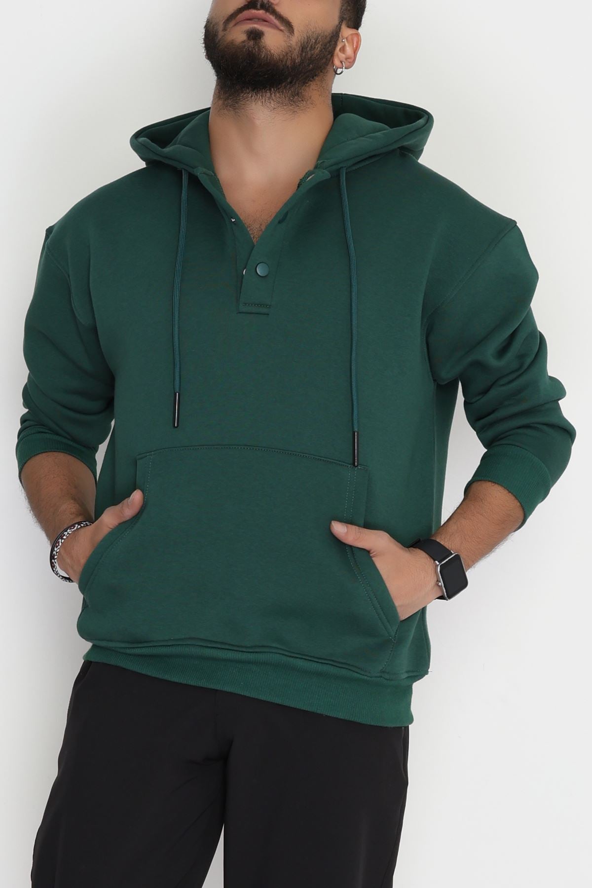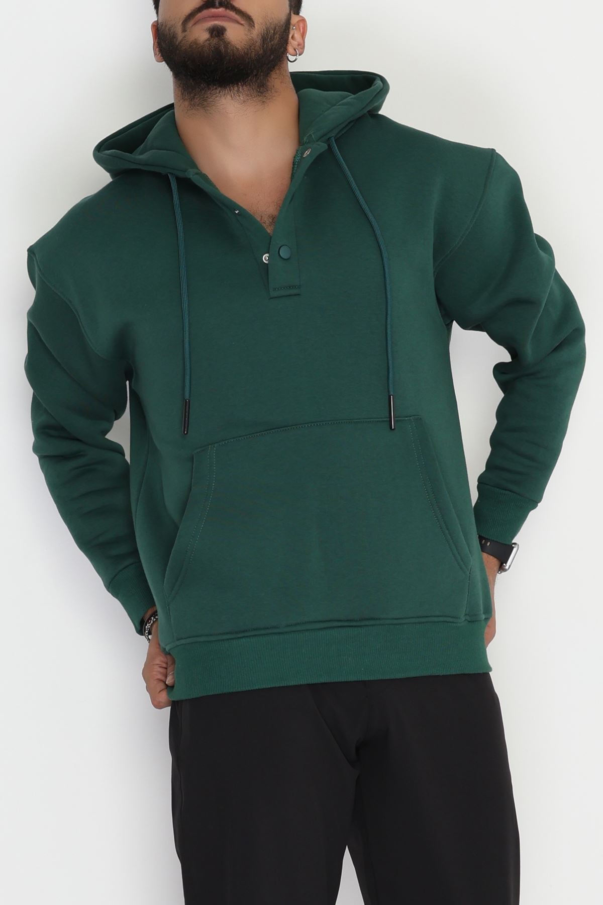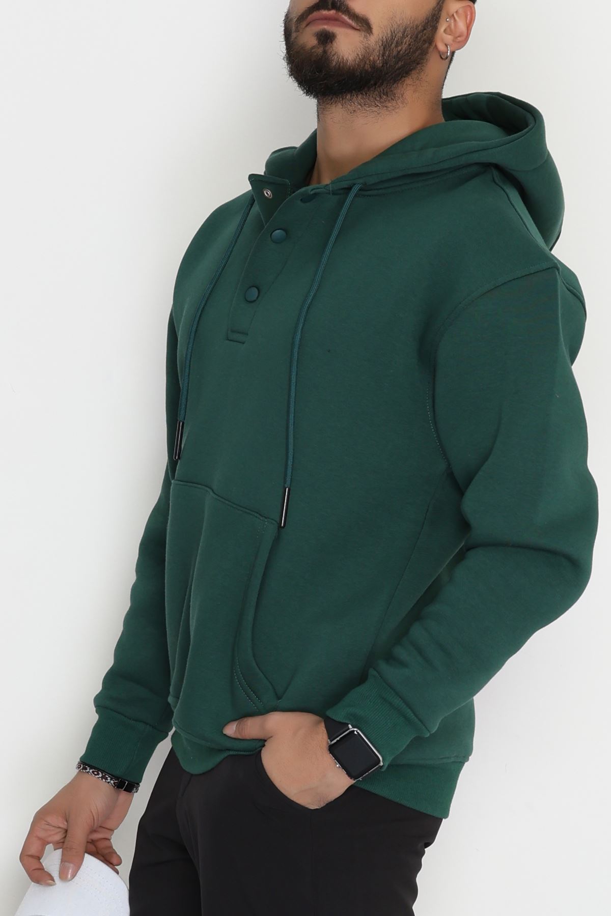Kanguru Cepli 3 İplik Şardonlu Erkek Sweat Zümrüt - 42592.2086.