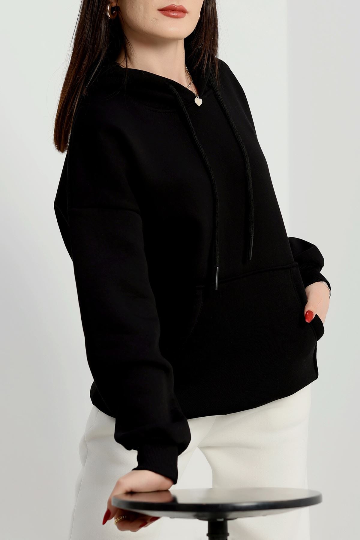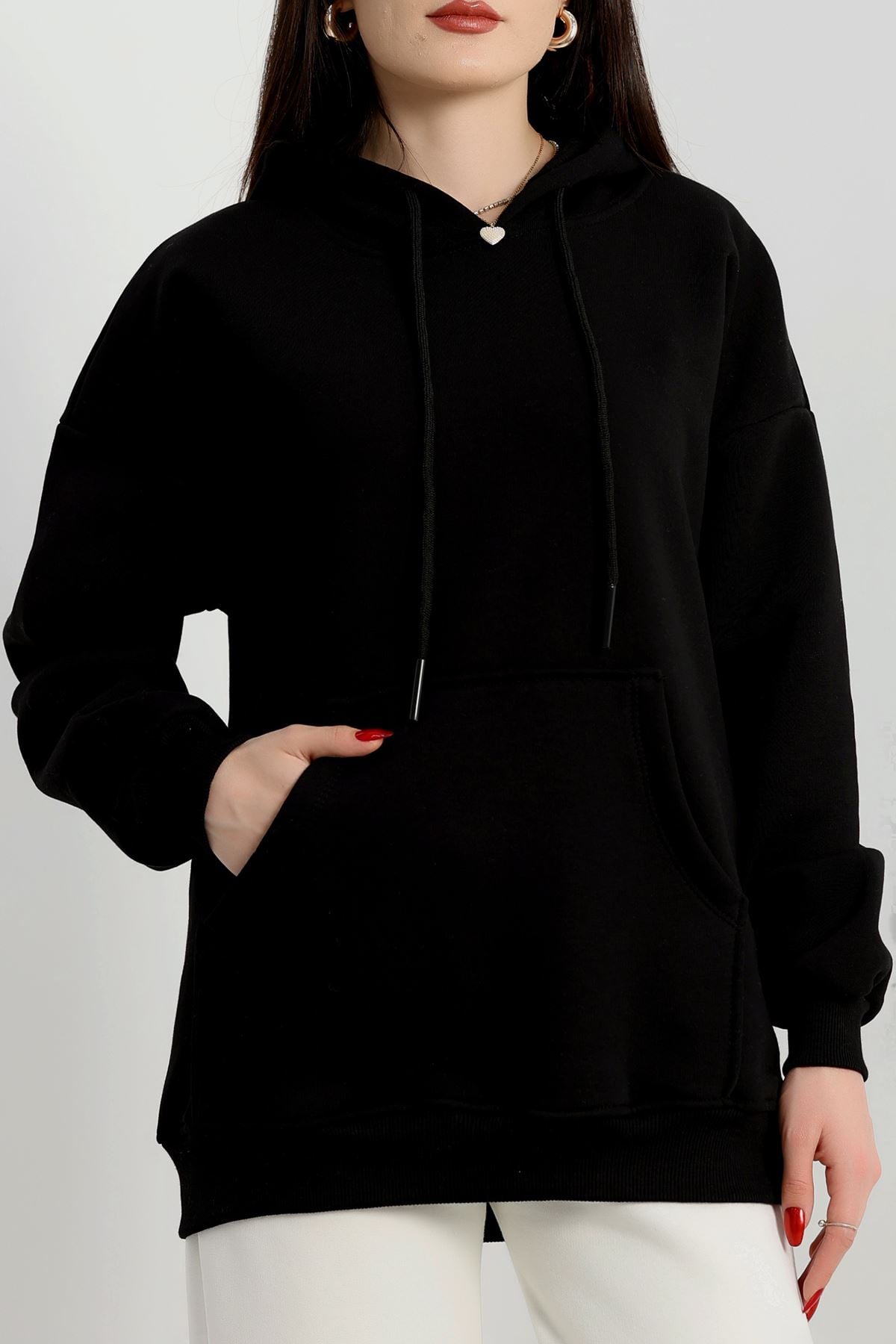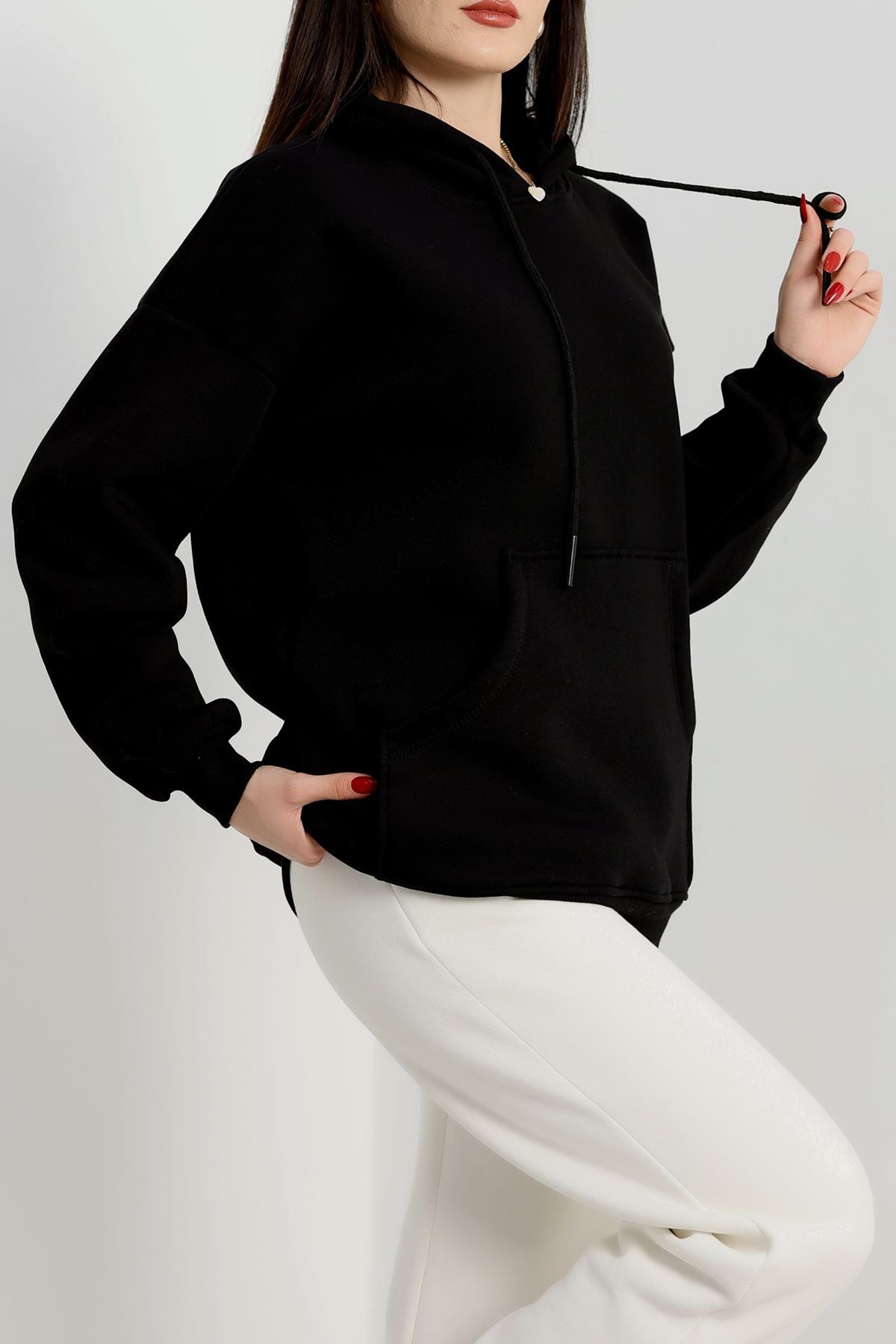 3 İplik Kanguru Cepli Kapşonlu Sweat Siyah - 20960.1878.