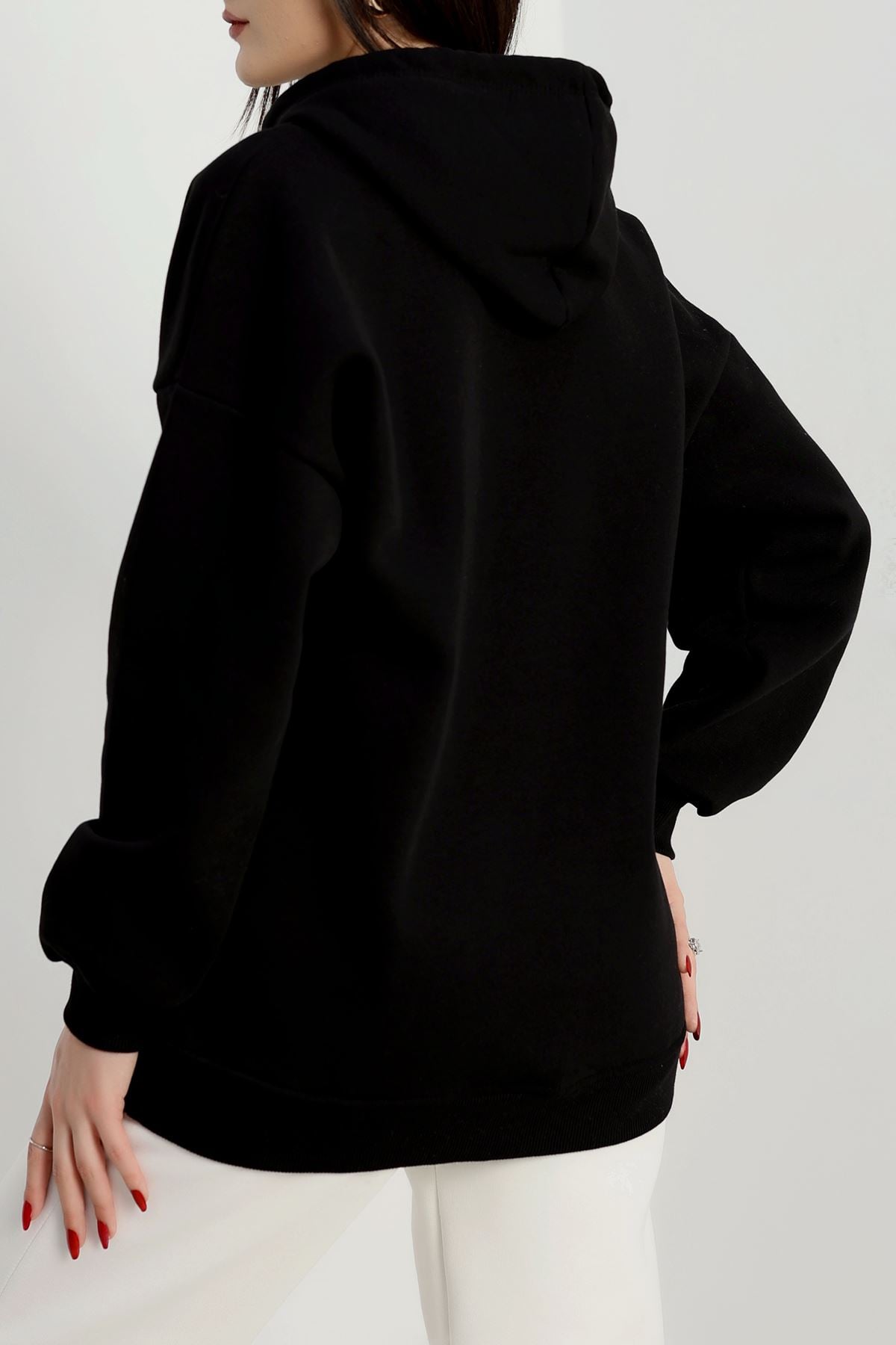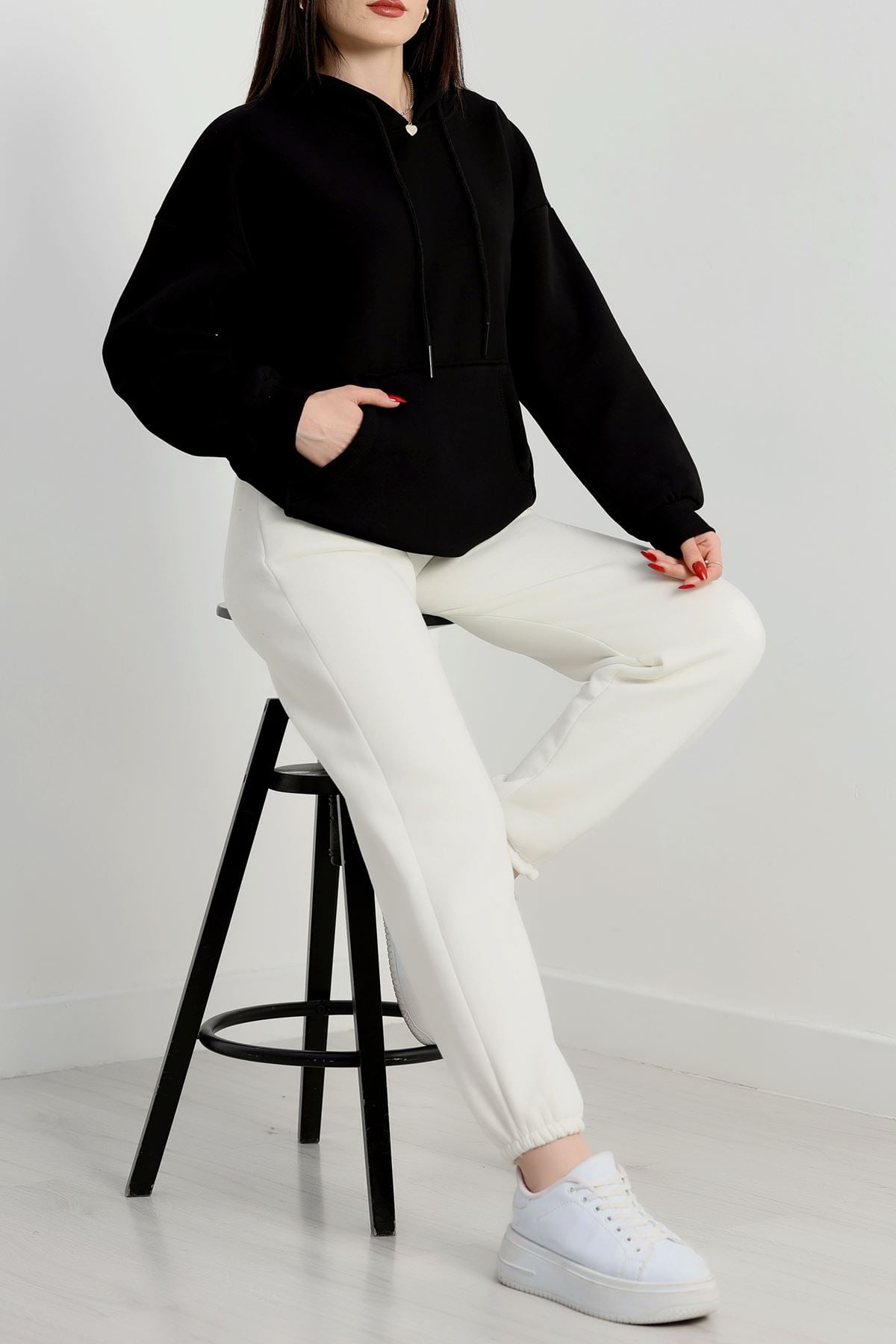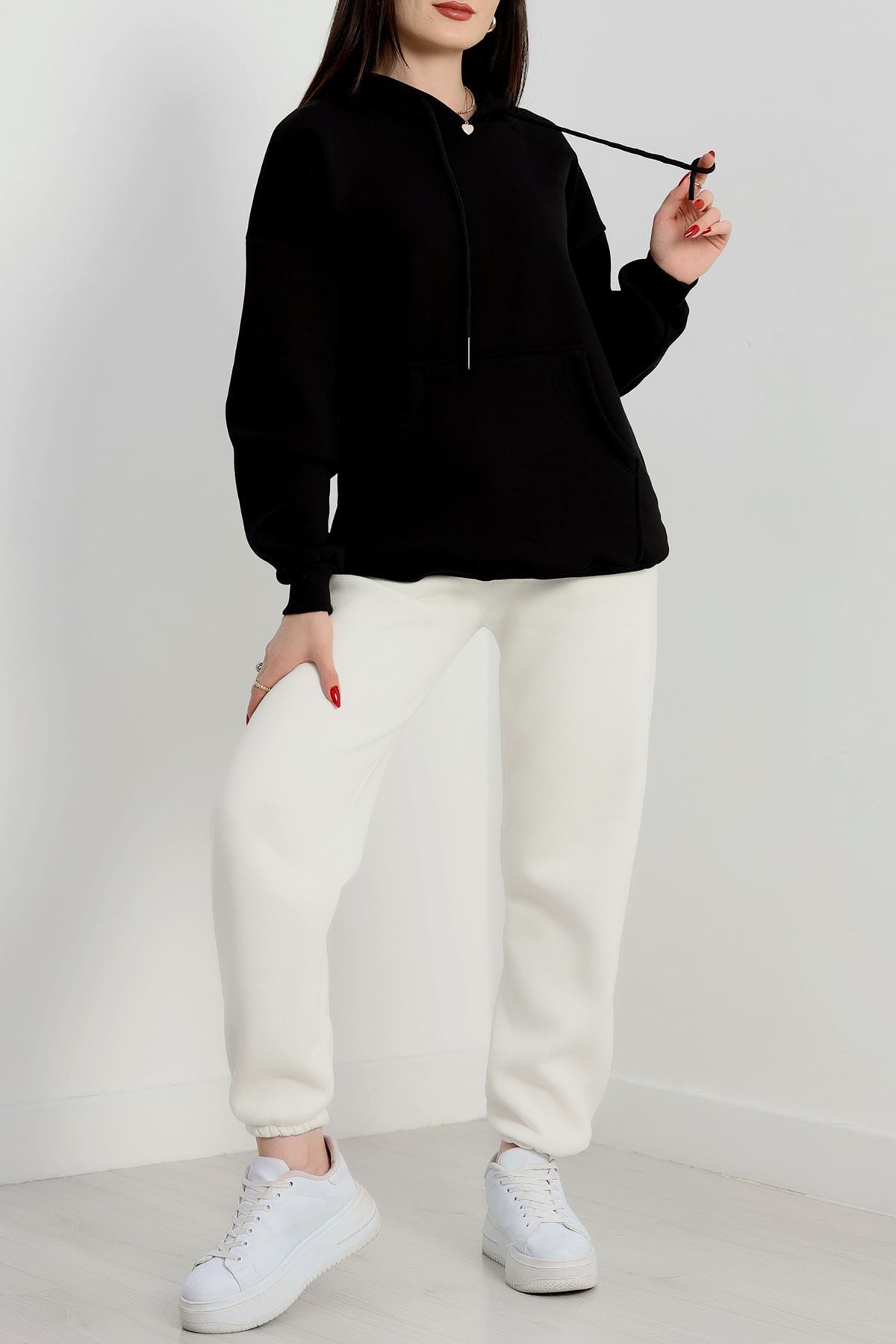 3 İplik Kanguru Cepli Kapşonlu Sweat Siyah - 20960.1878.