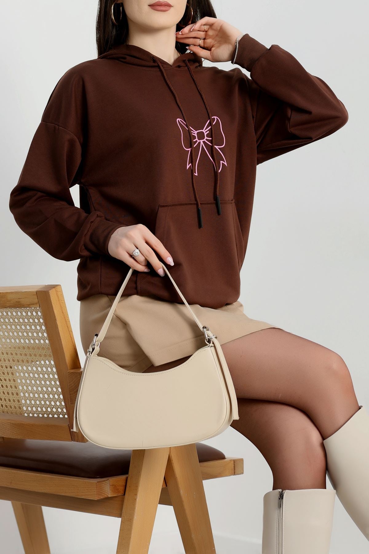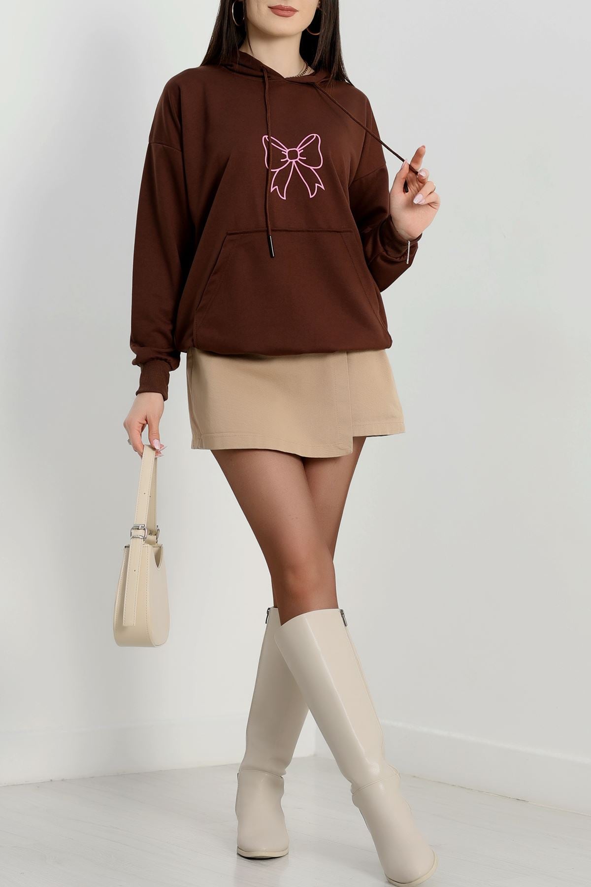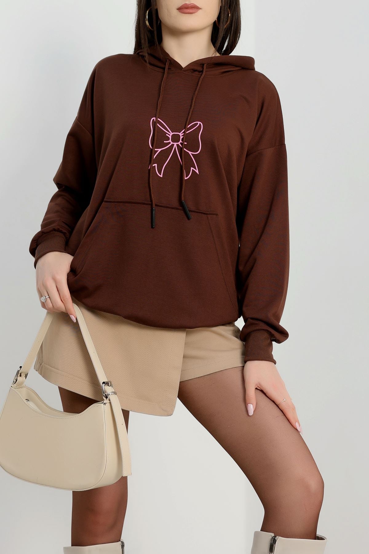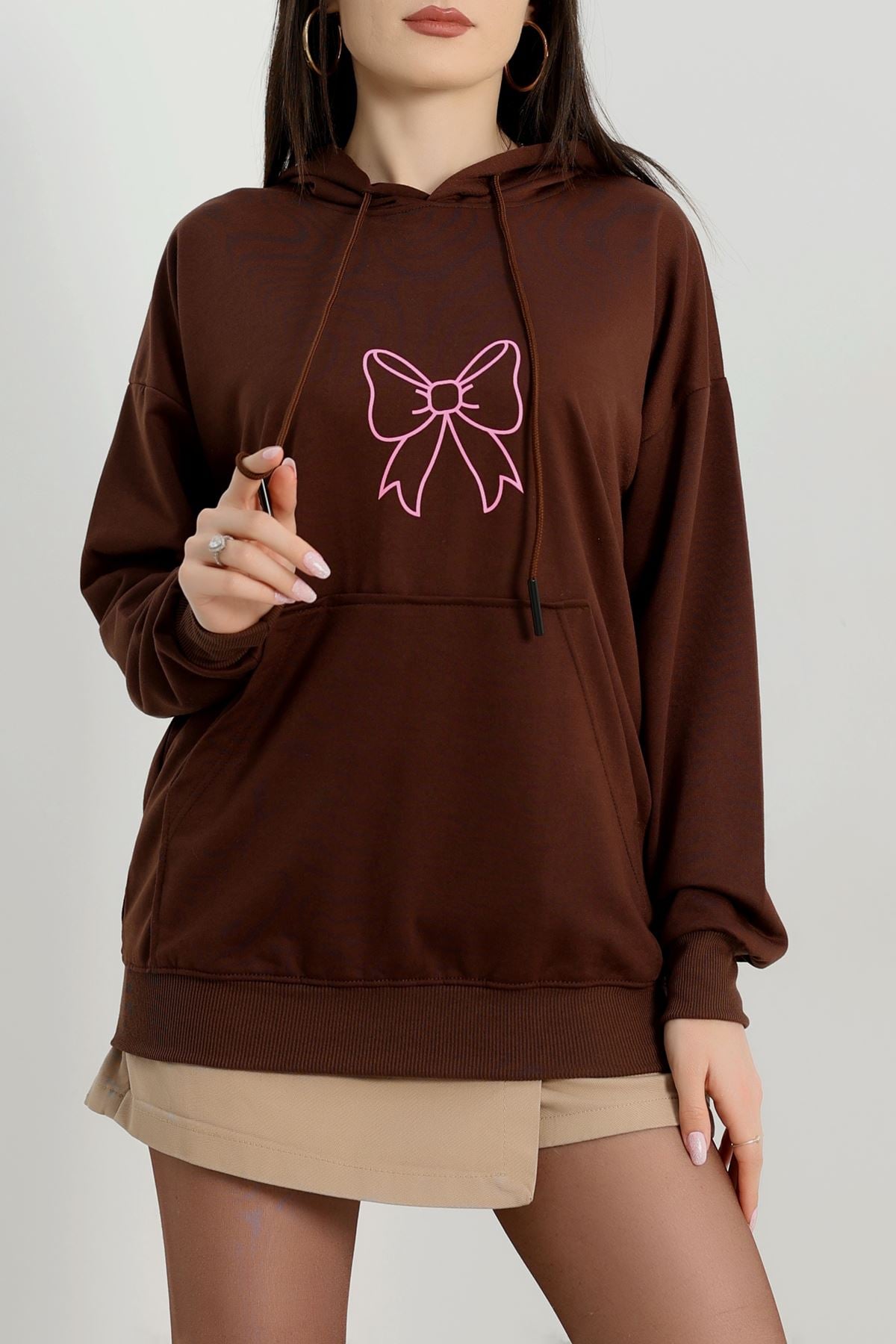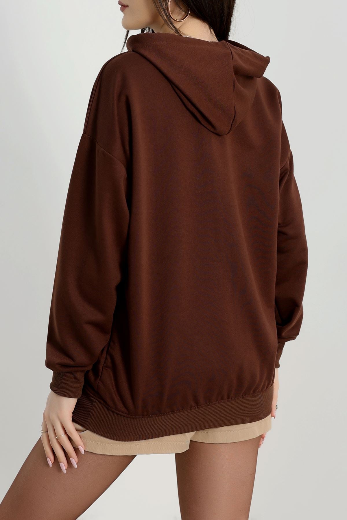 Kapşonlu 2 İplik Baskılı Sweat Acıkahve - 31304.1878.
