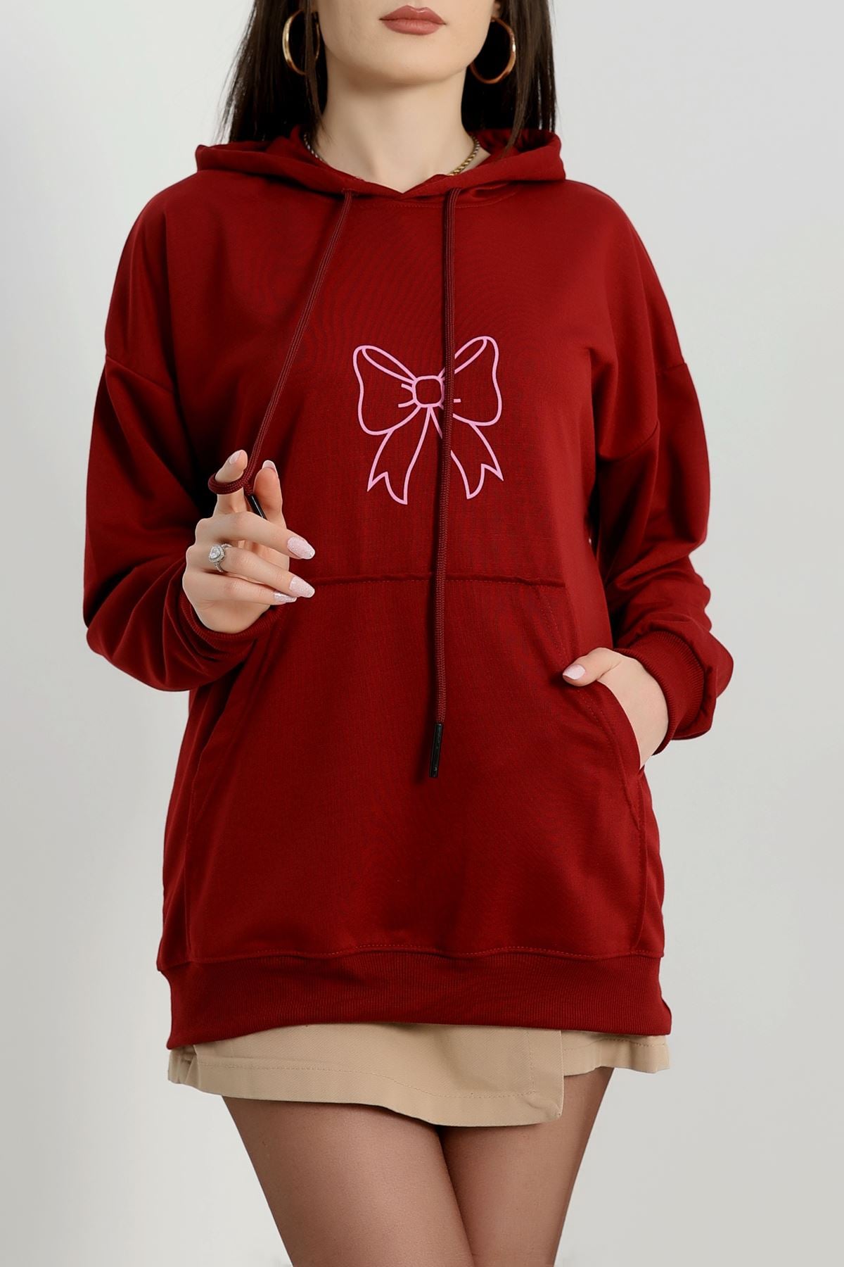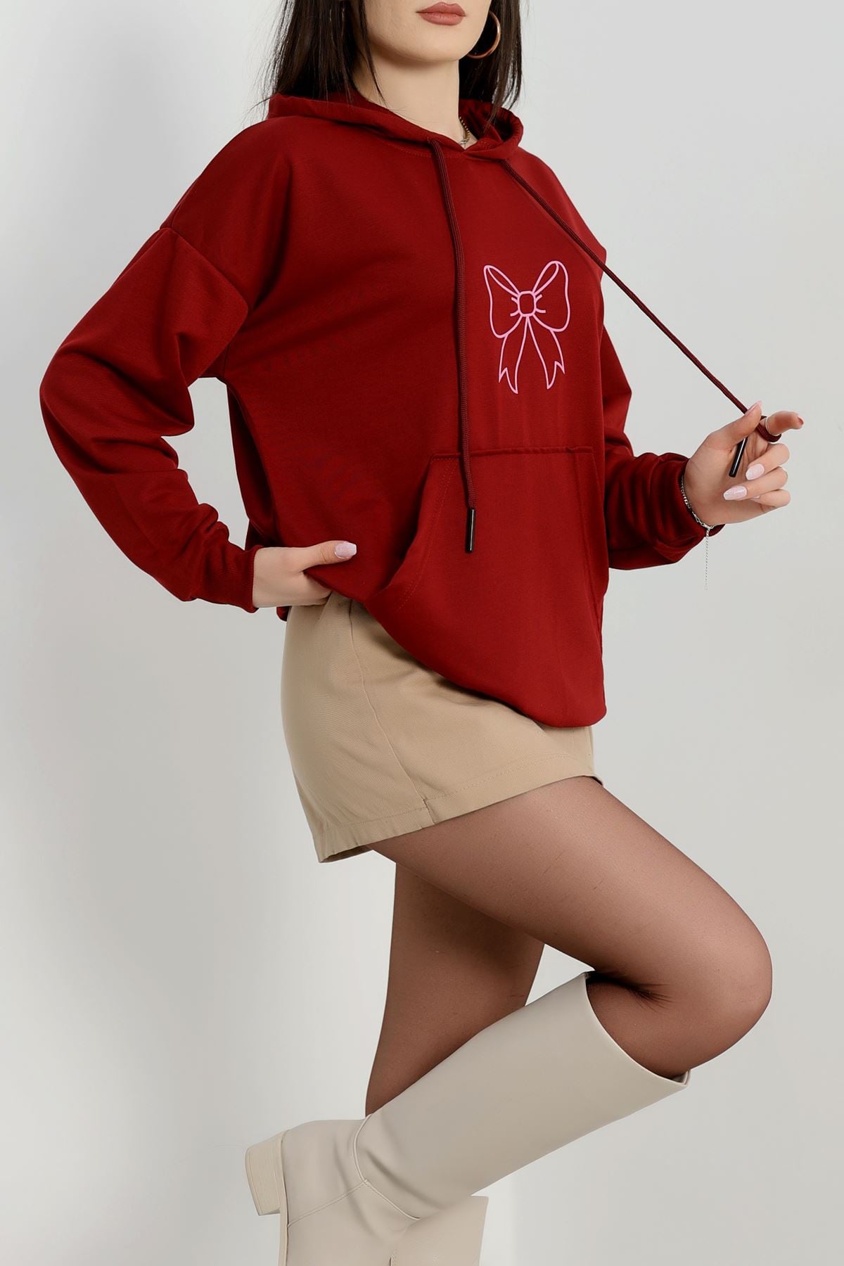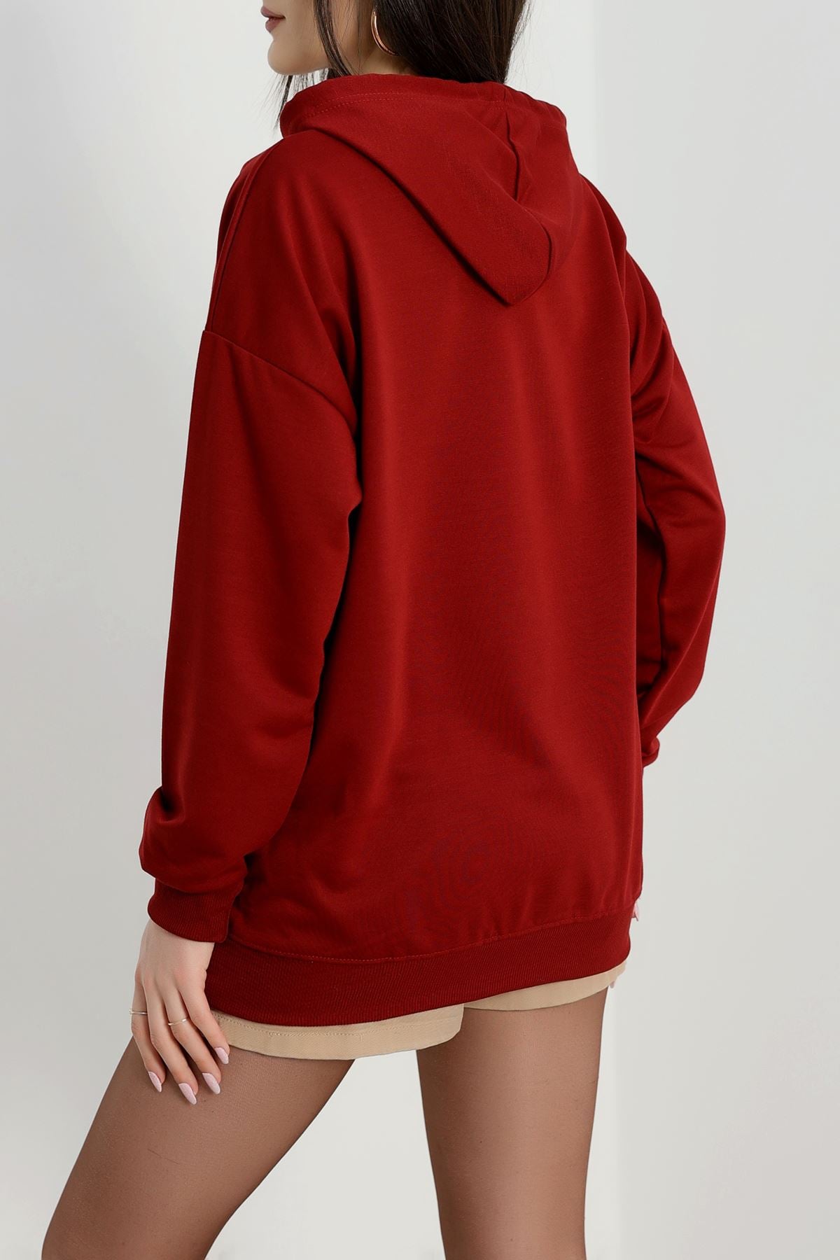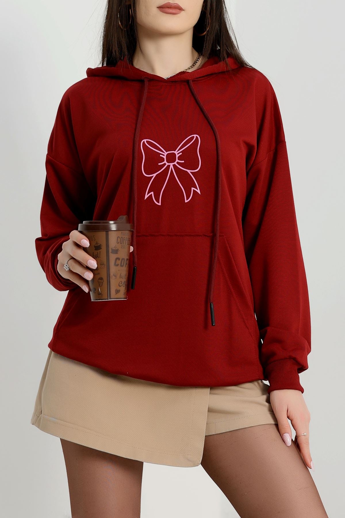Kapşonlu 2 İplik Baskılı Sweat Bordo - 31304.1878.