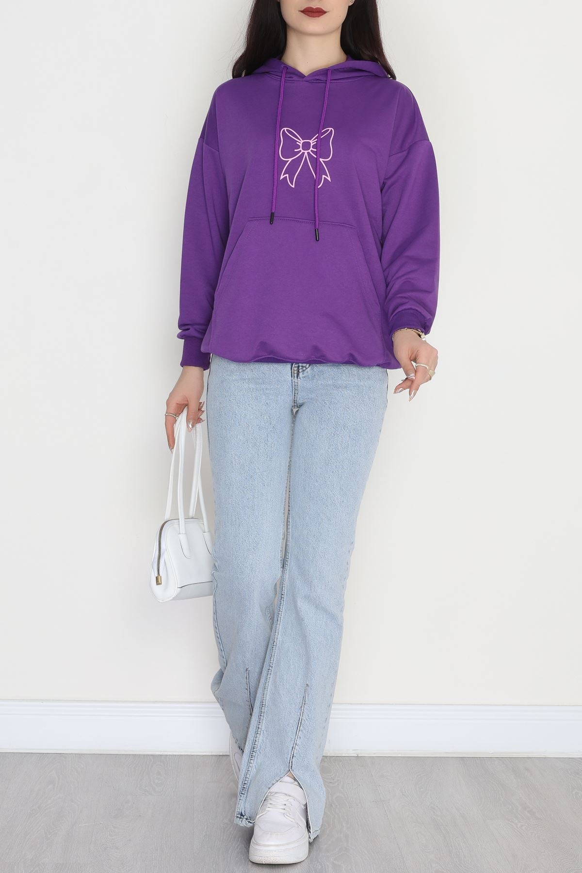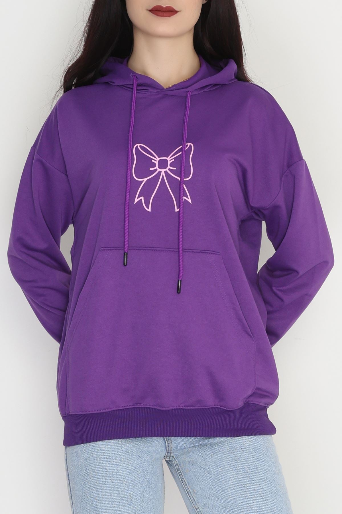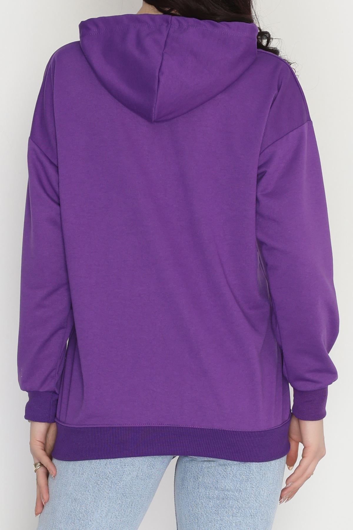 Kapşonlu 2 İplik Baskılı Sweat Mor - 31304.1878.