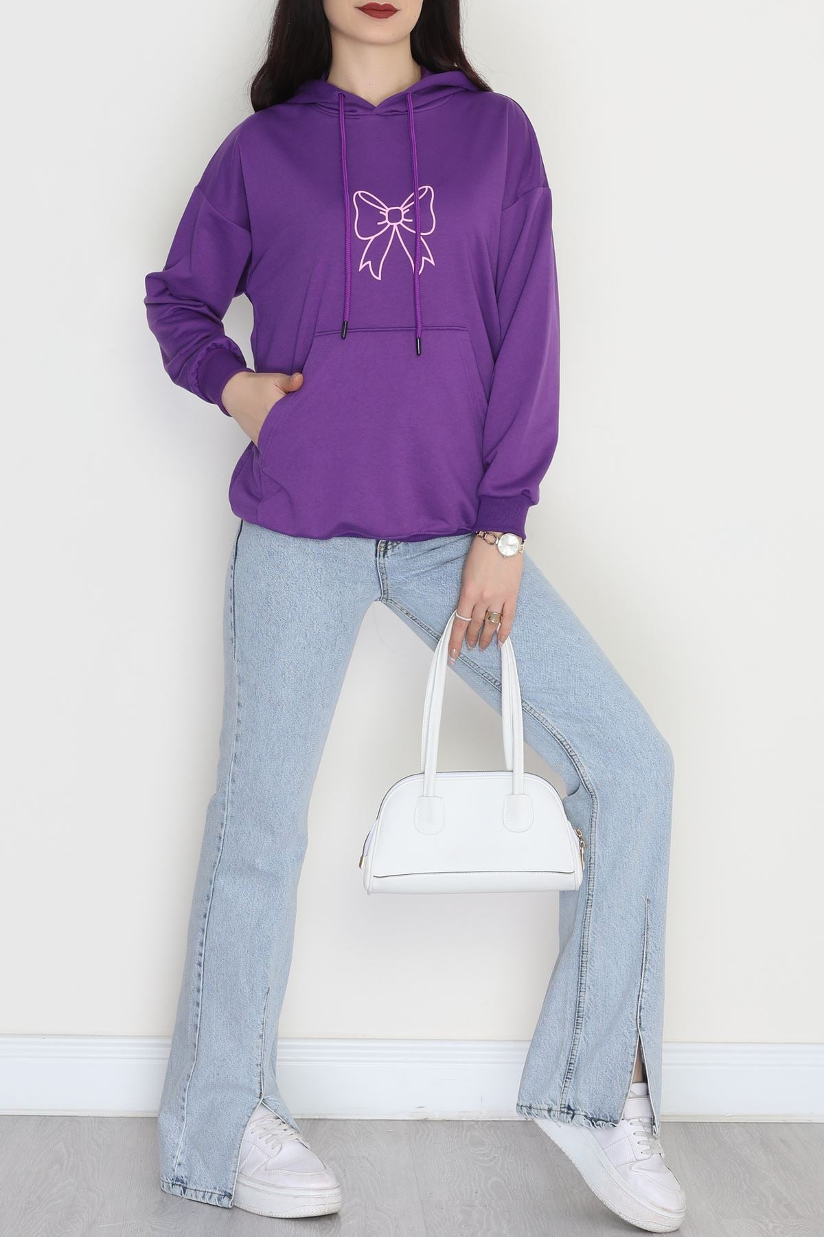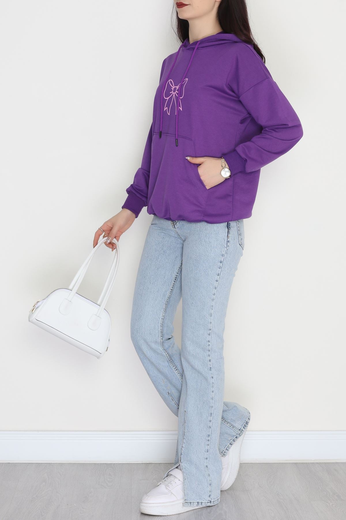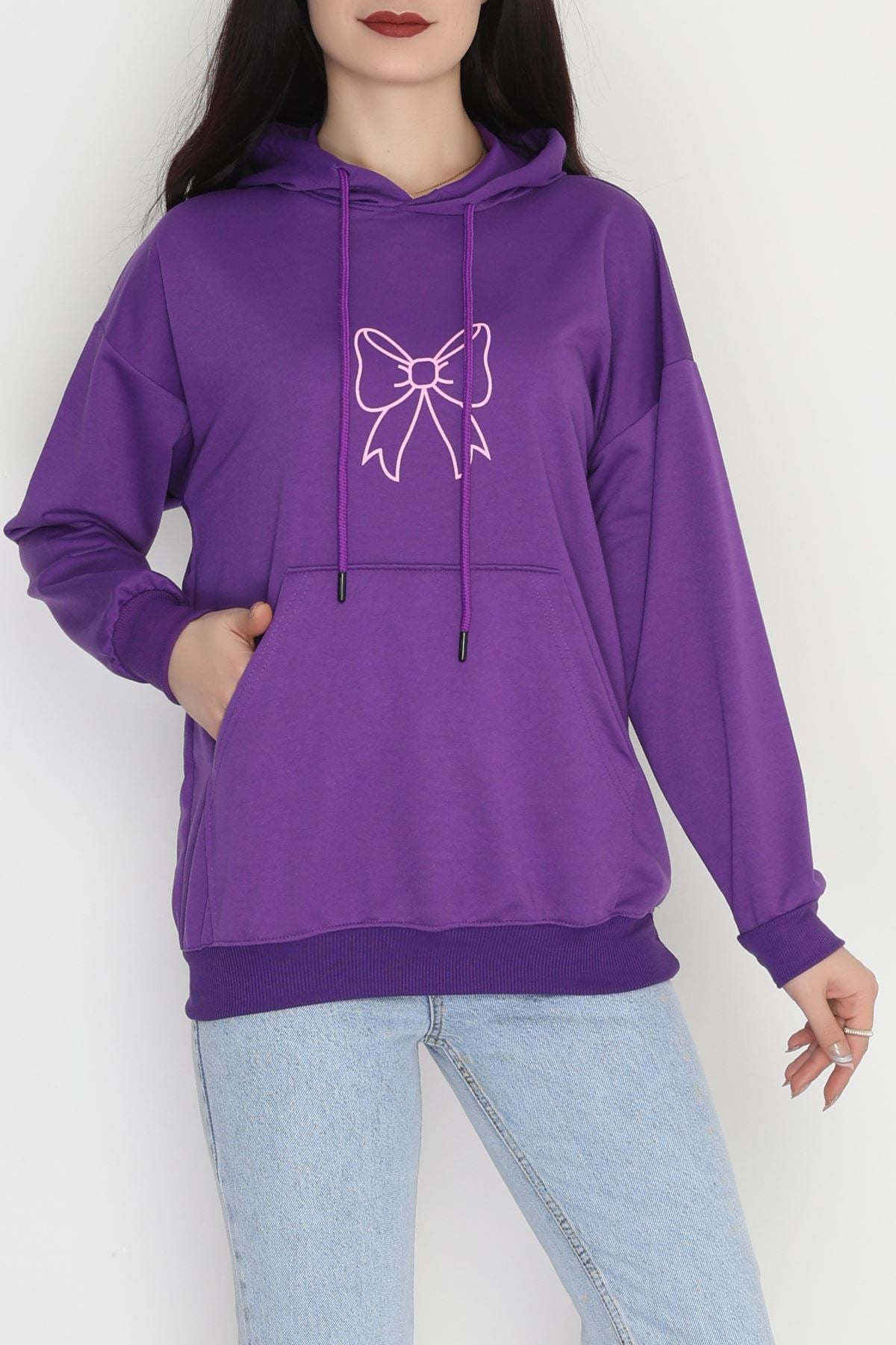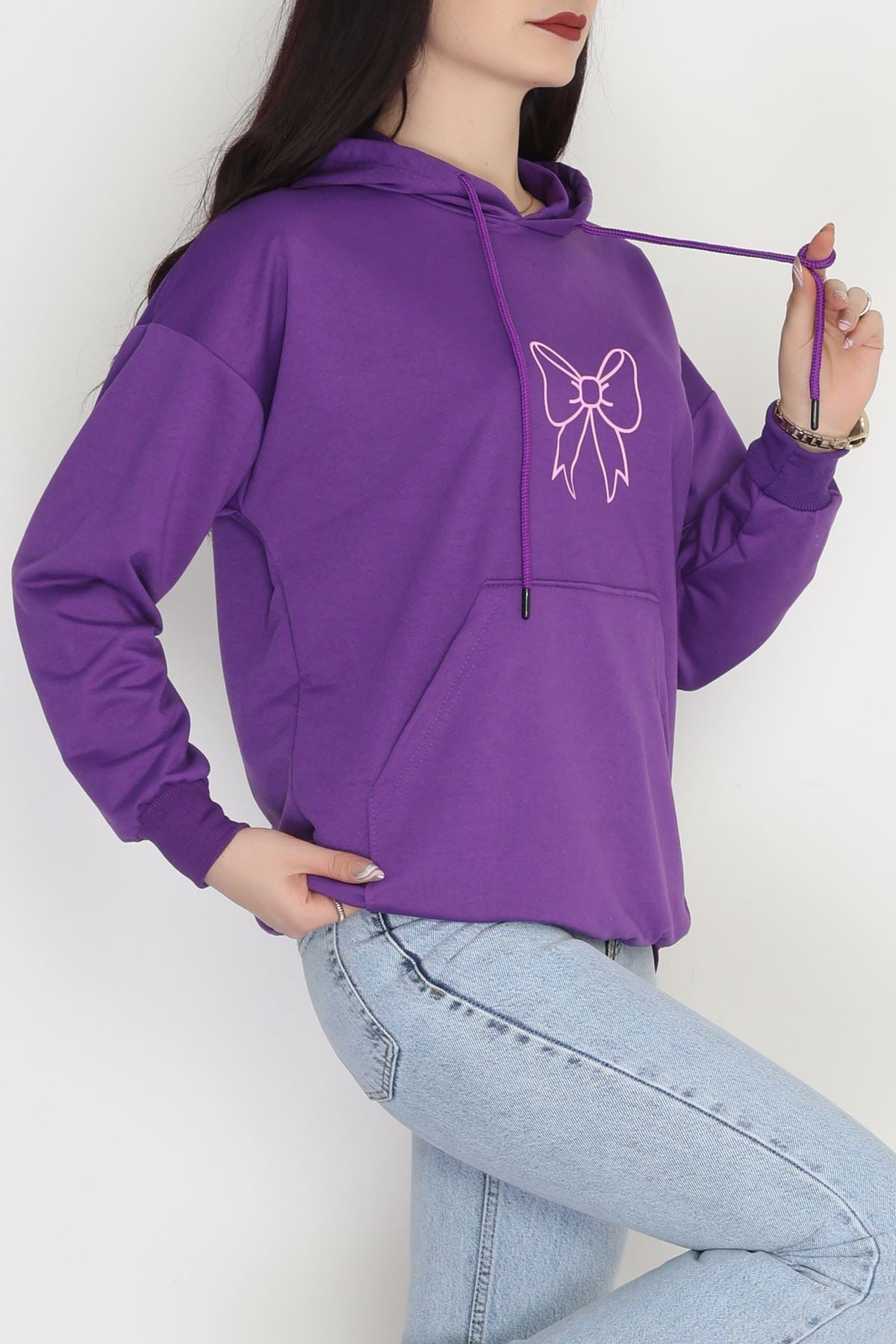 Kapşonlu 2 İplik Baskılı Sweat Mor - 31304.1878.