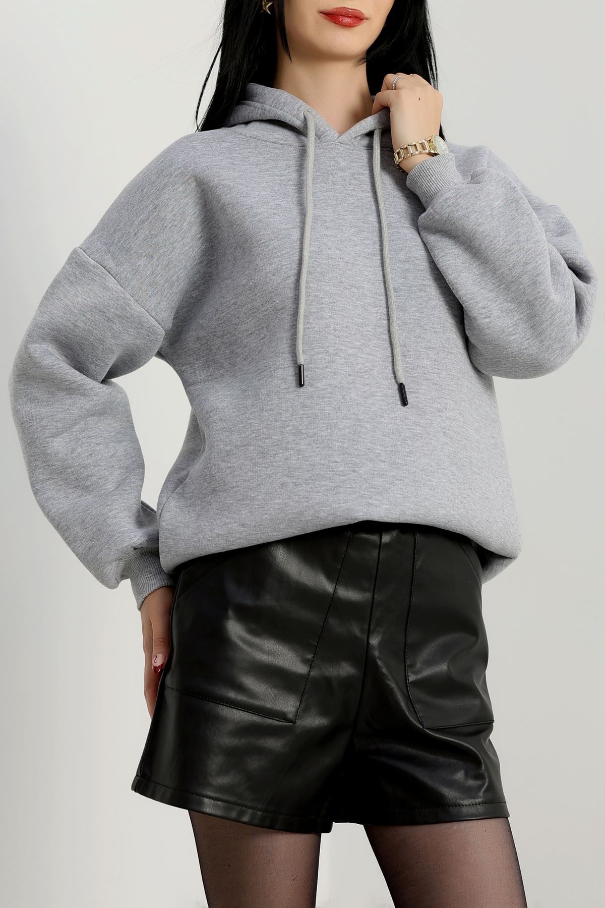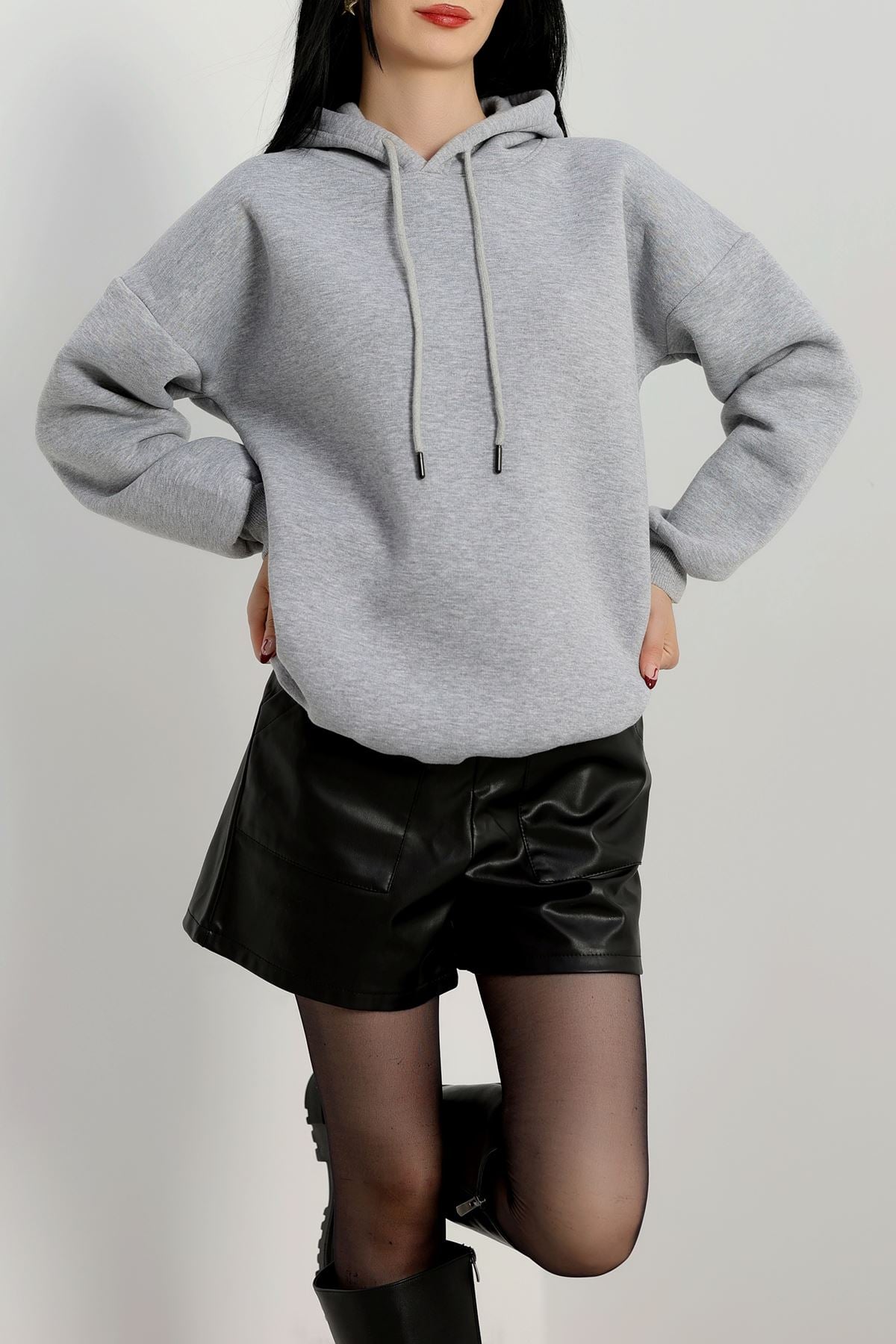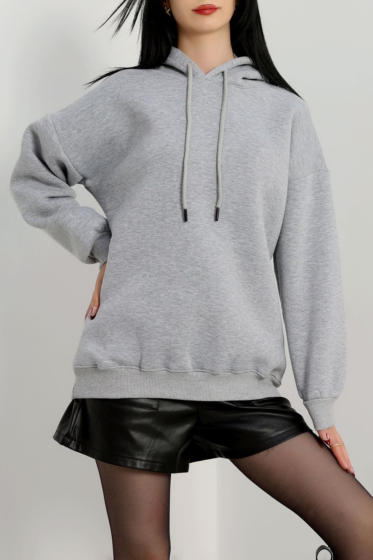 3 İplik Kapşonlu Sweat Gri - 20074.1878.