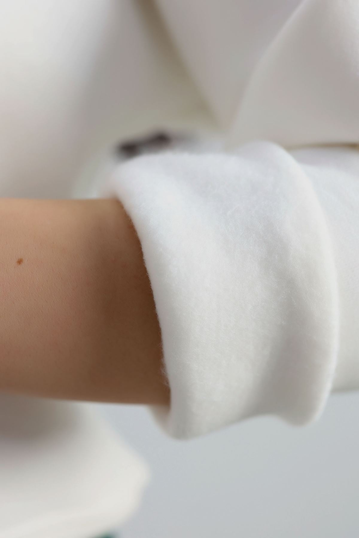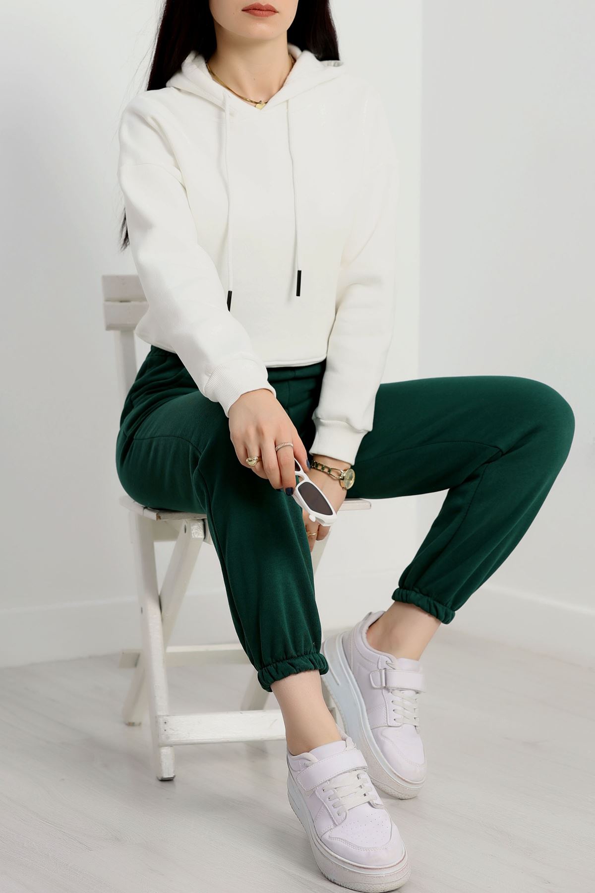 3 İplik Kapşonlu Crop Sweat Ekru - 20959.1878.
