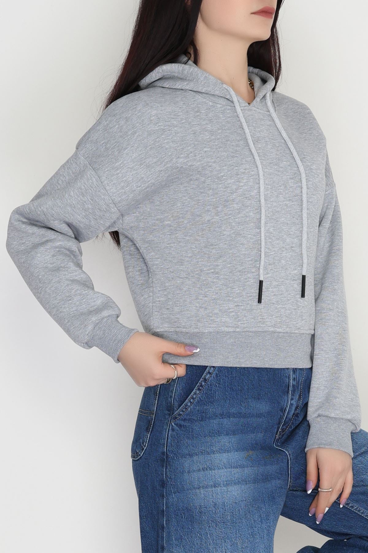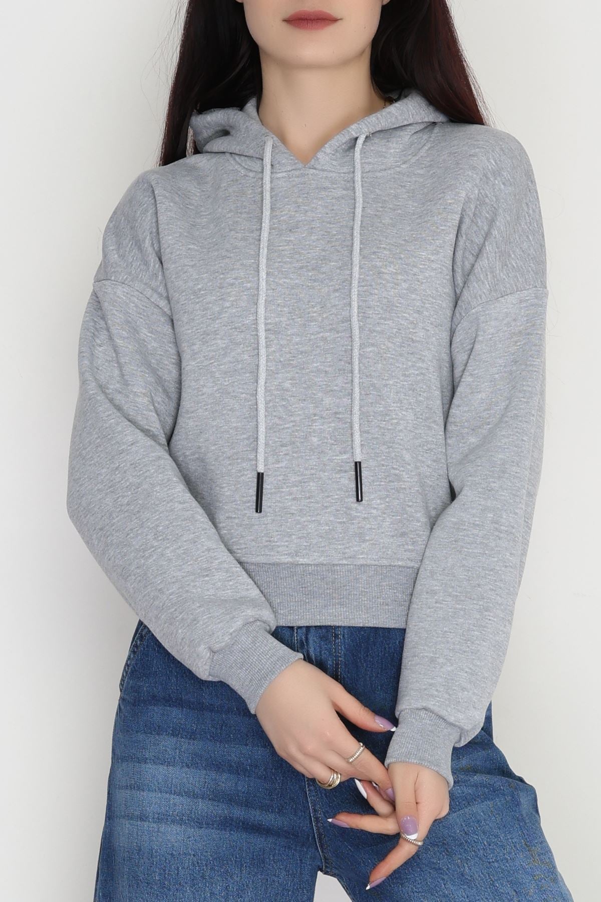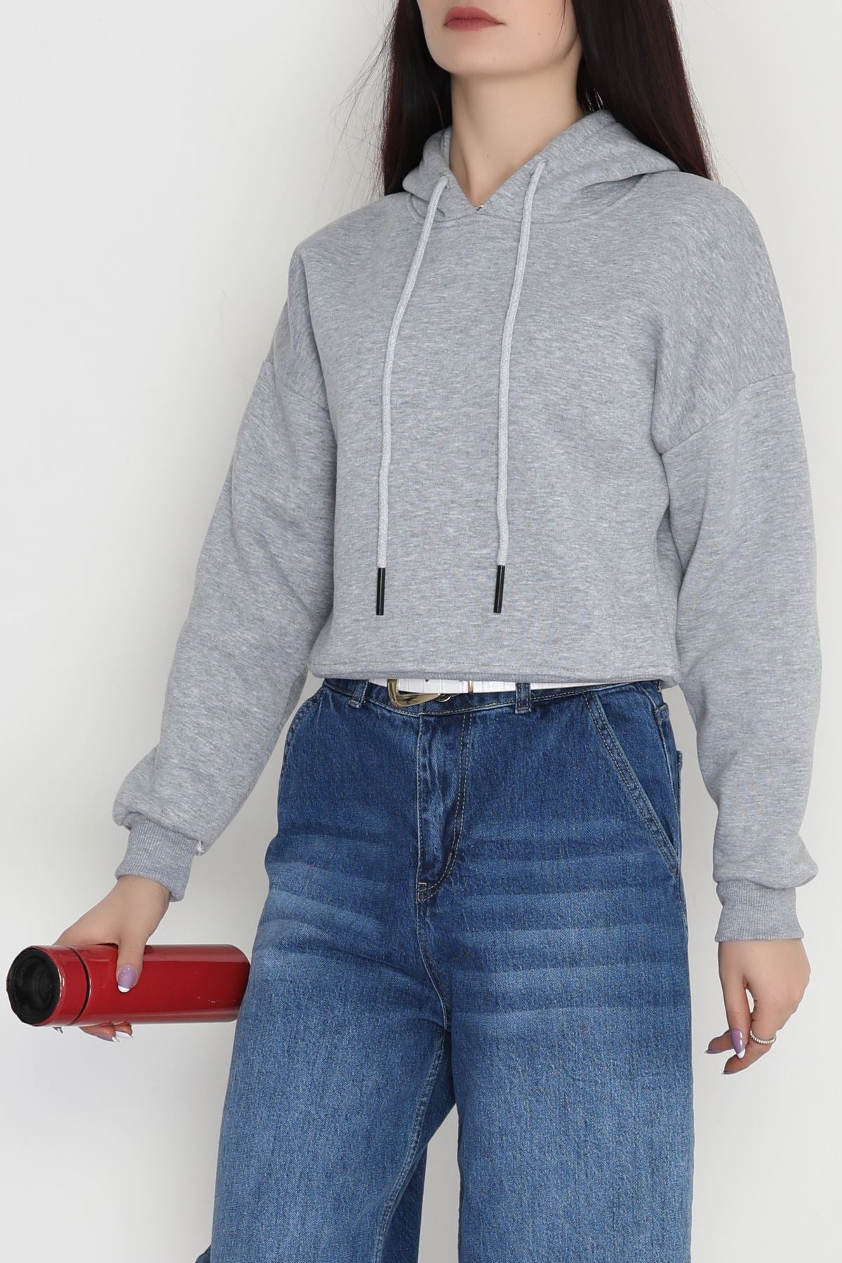 3 İplik Kapşonlu Crop Sweat Gri - 20959.1878.