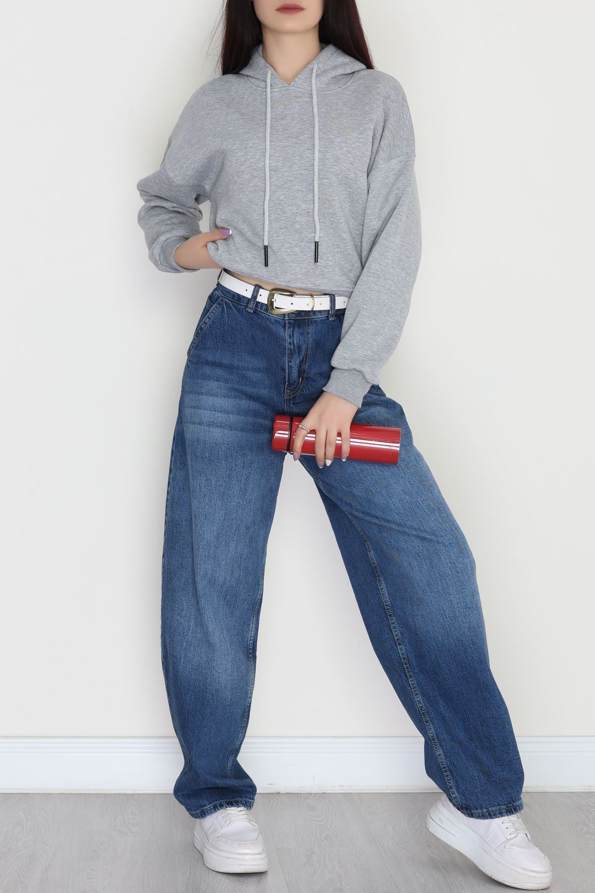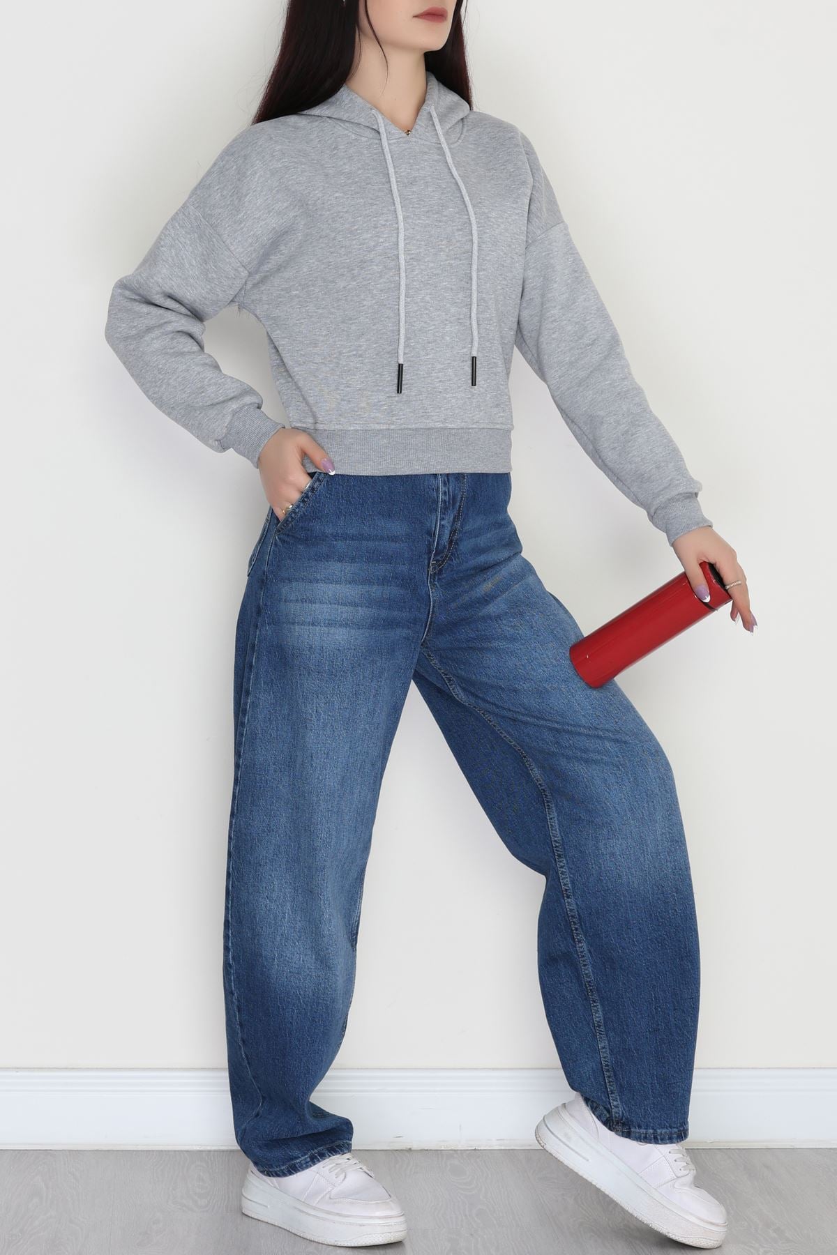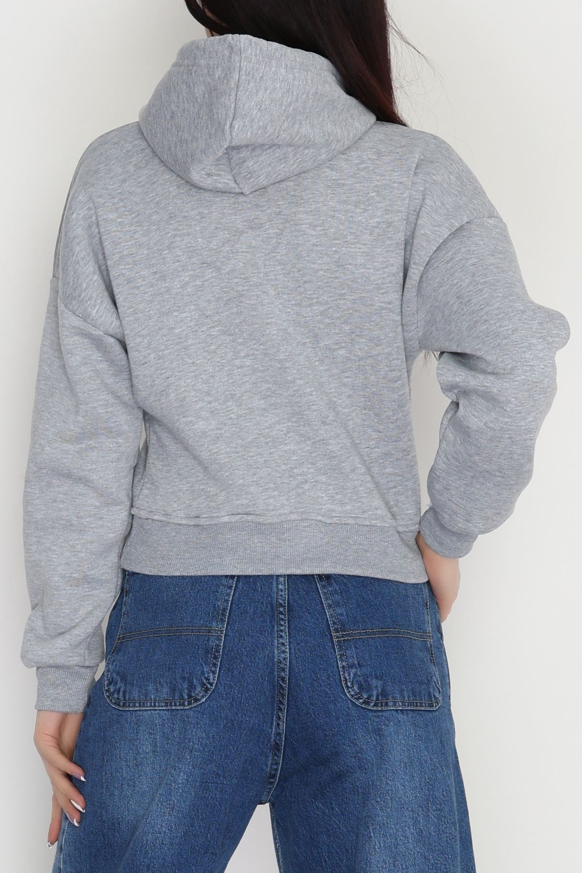 3 İplik Kapşonlu Crop Sweat Gri - 20959.1878.