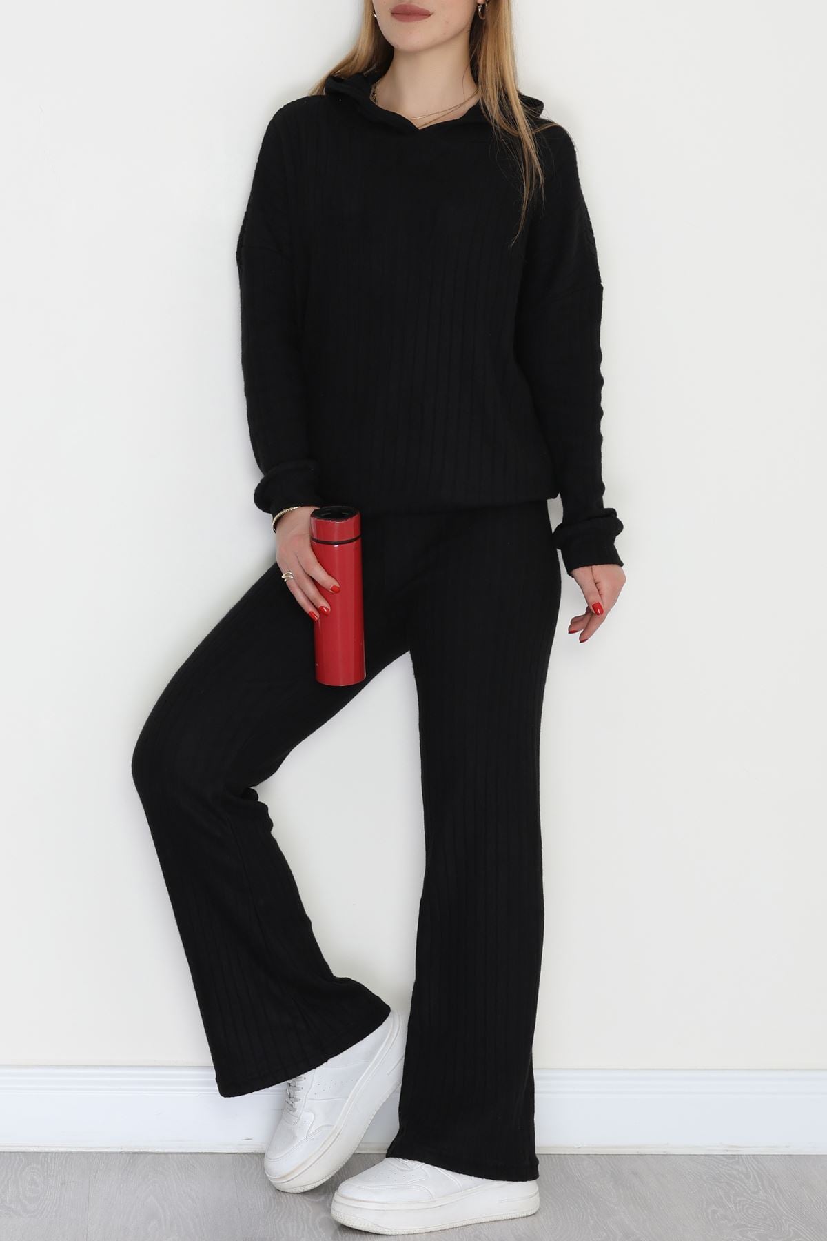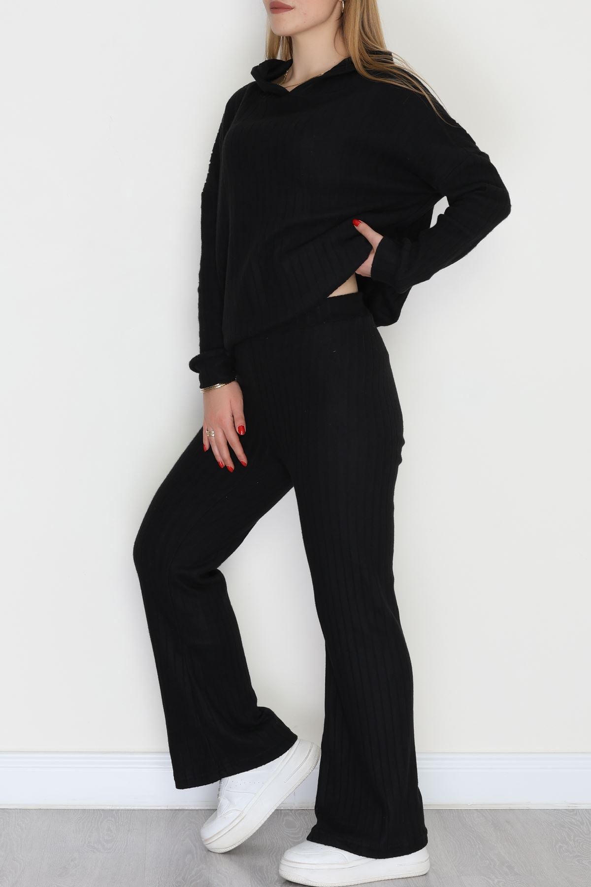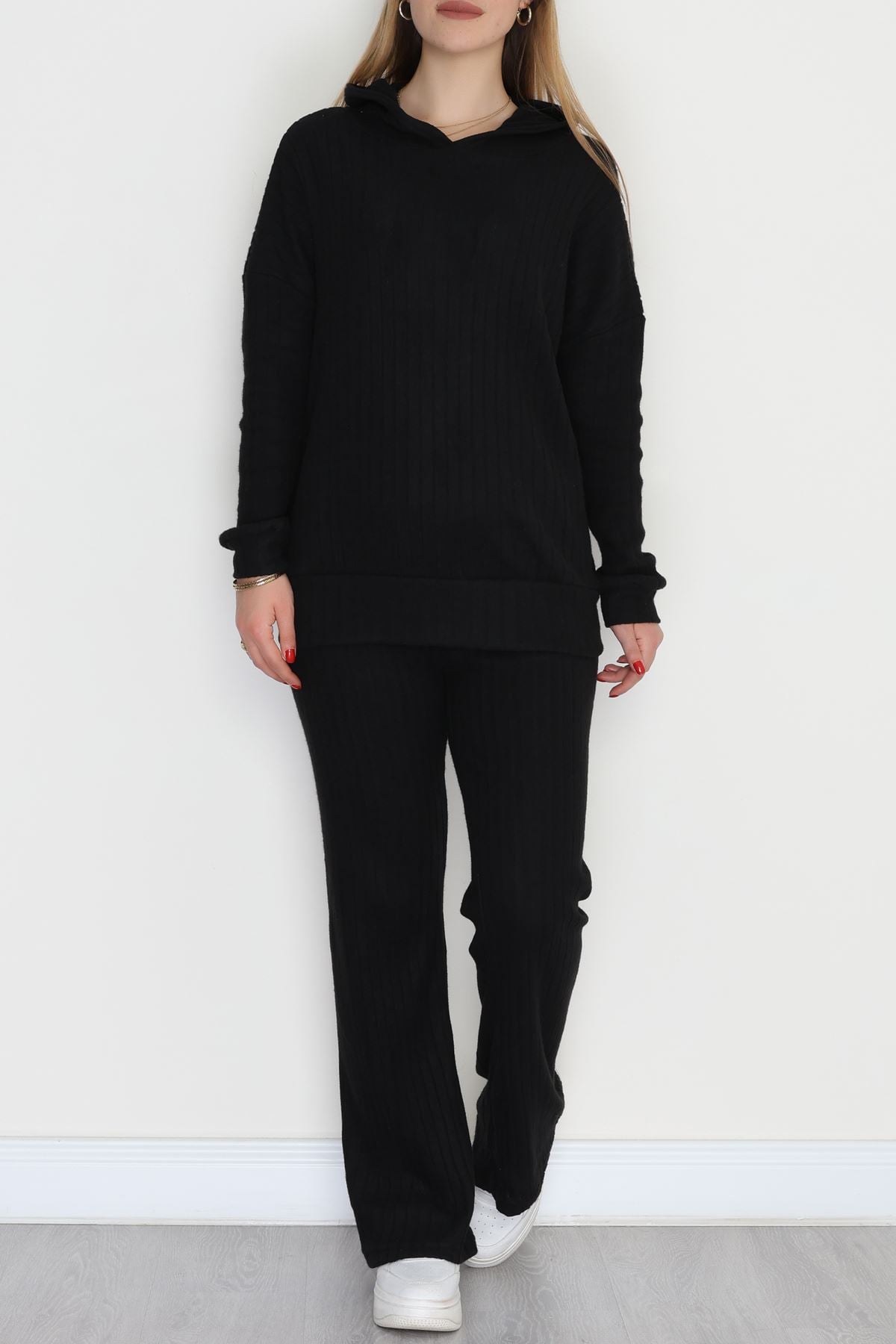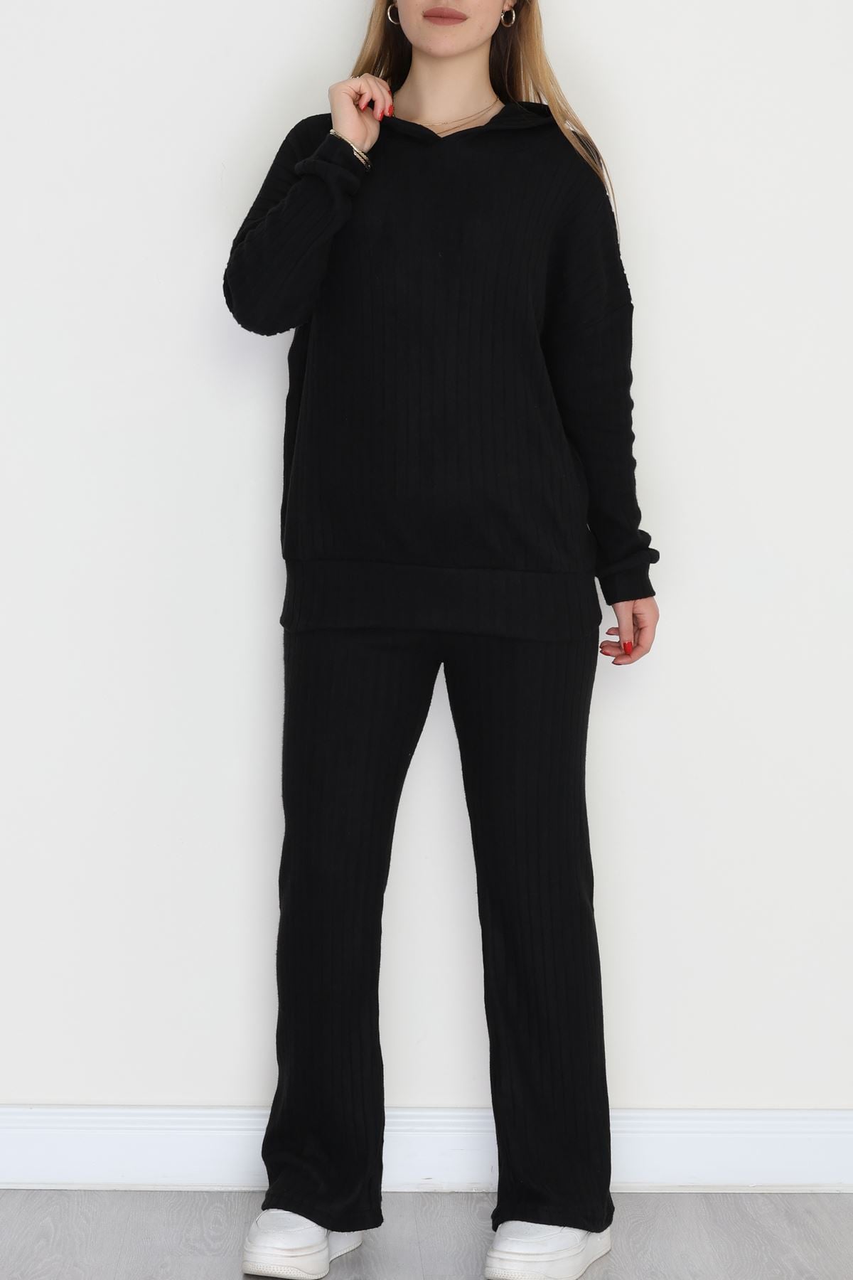 Kapşonlu İnterlok Kumaş İkili Takım Siyah - 42636.1567.