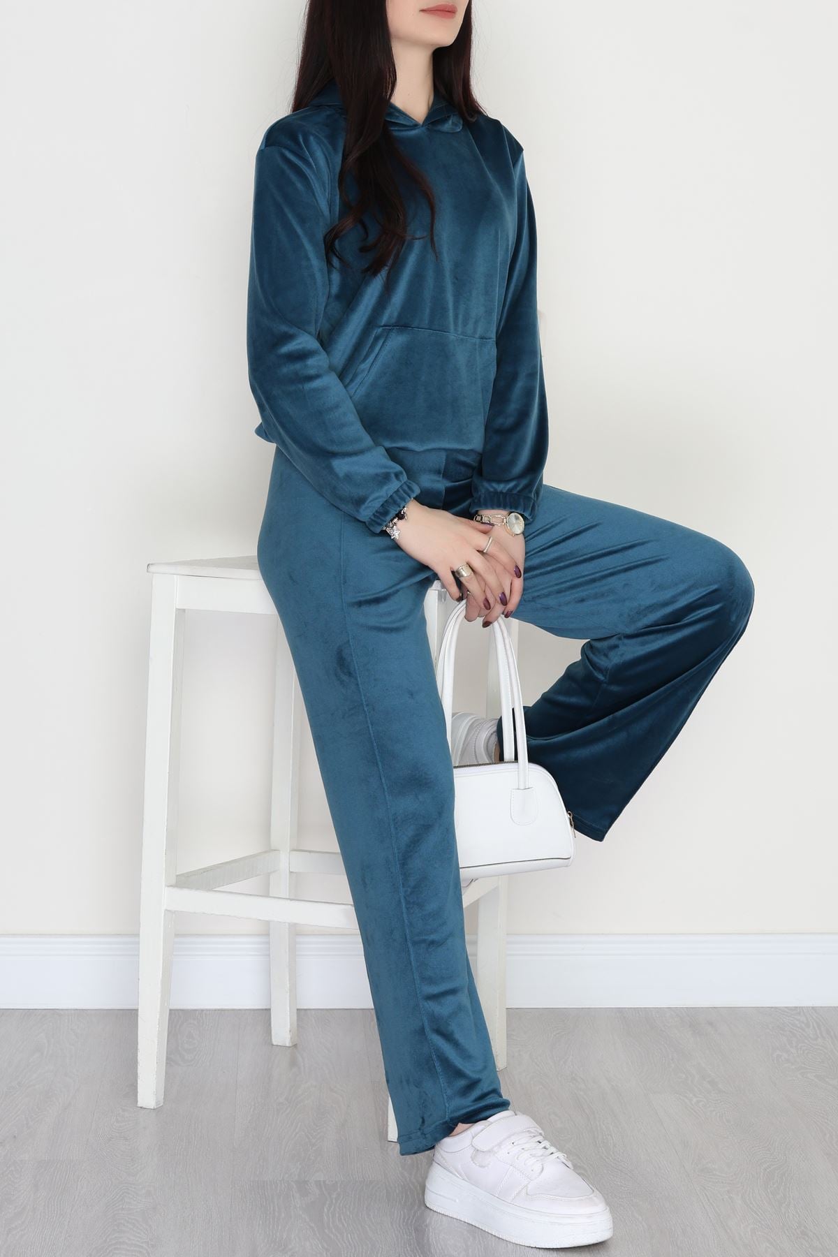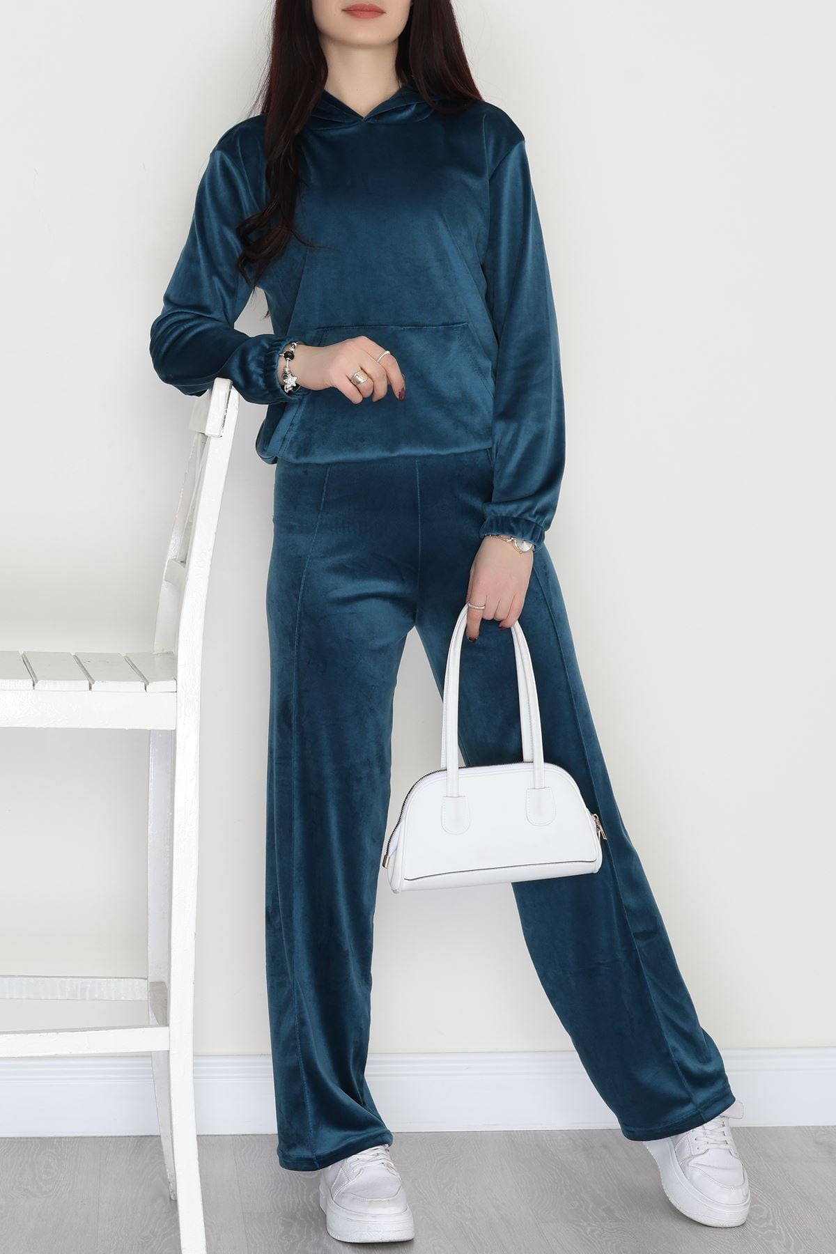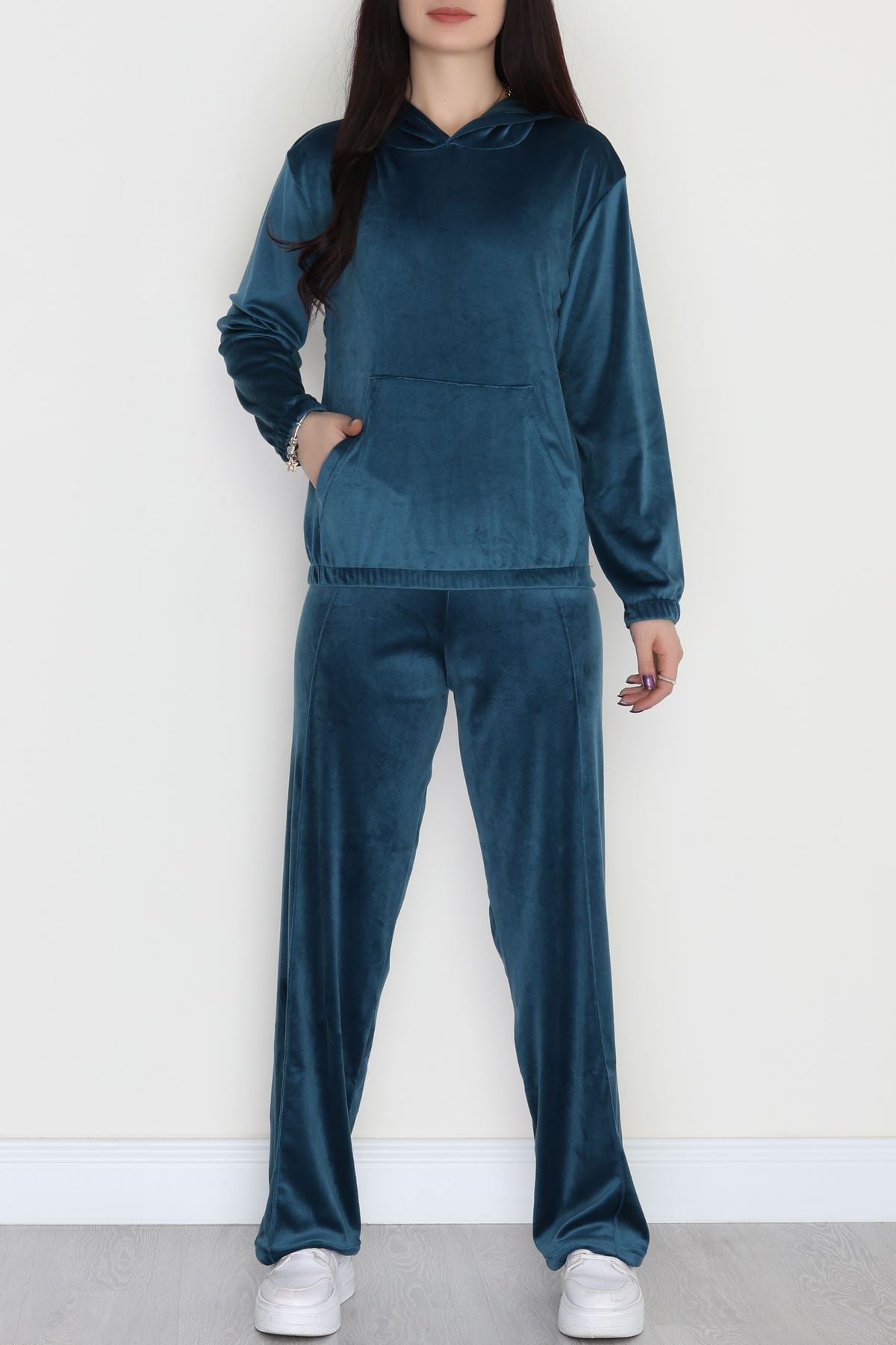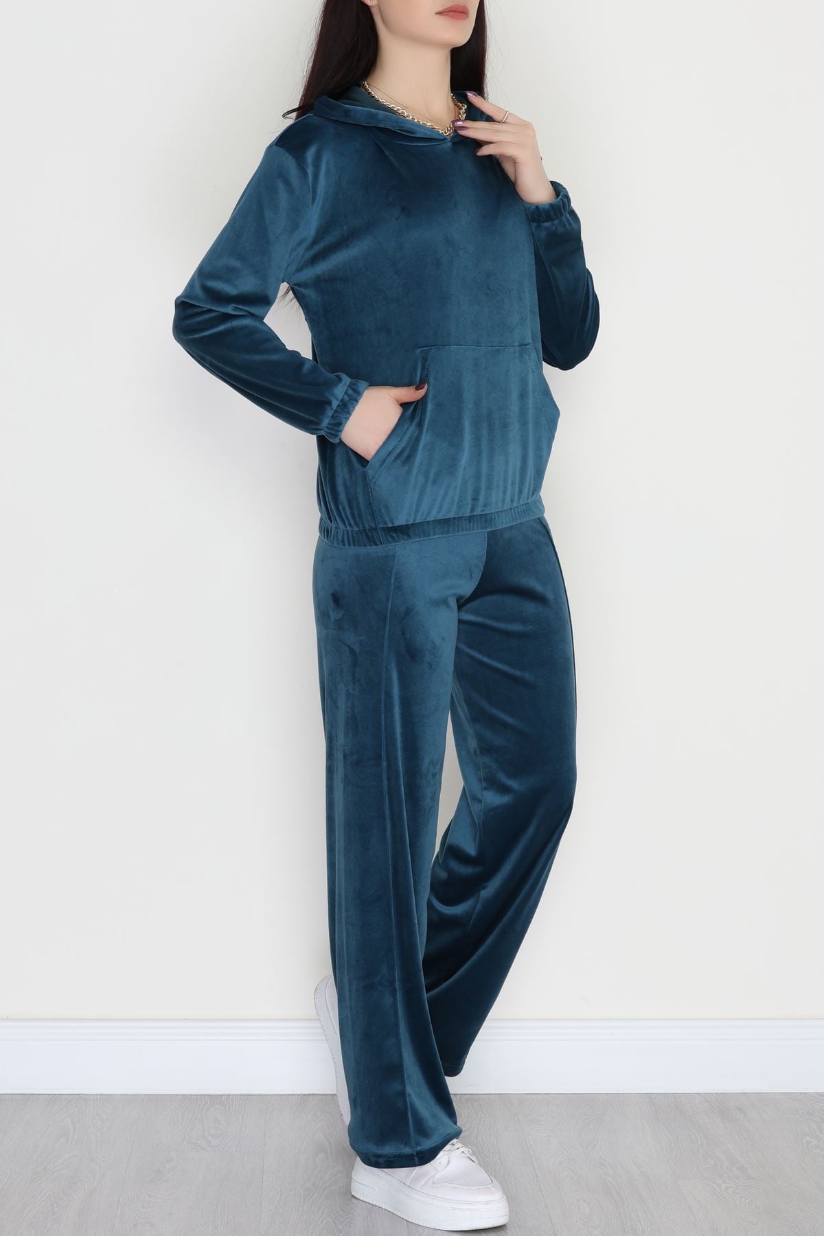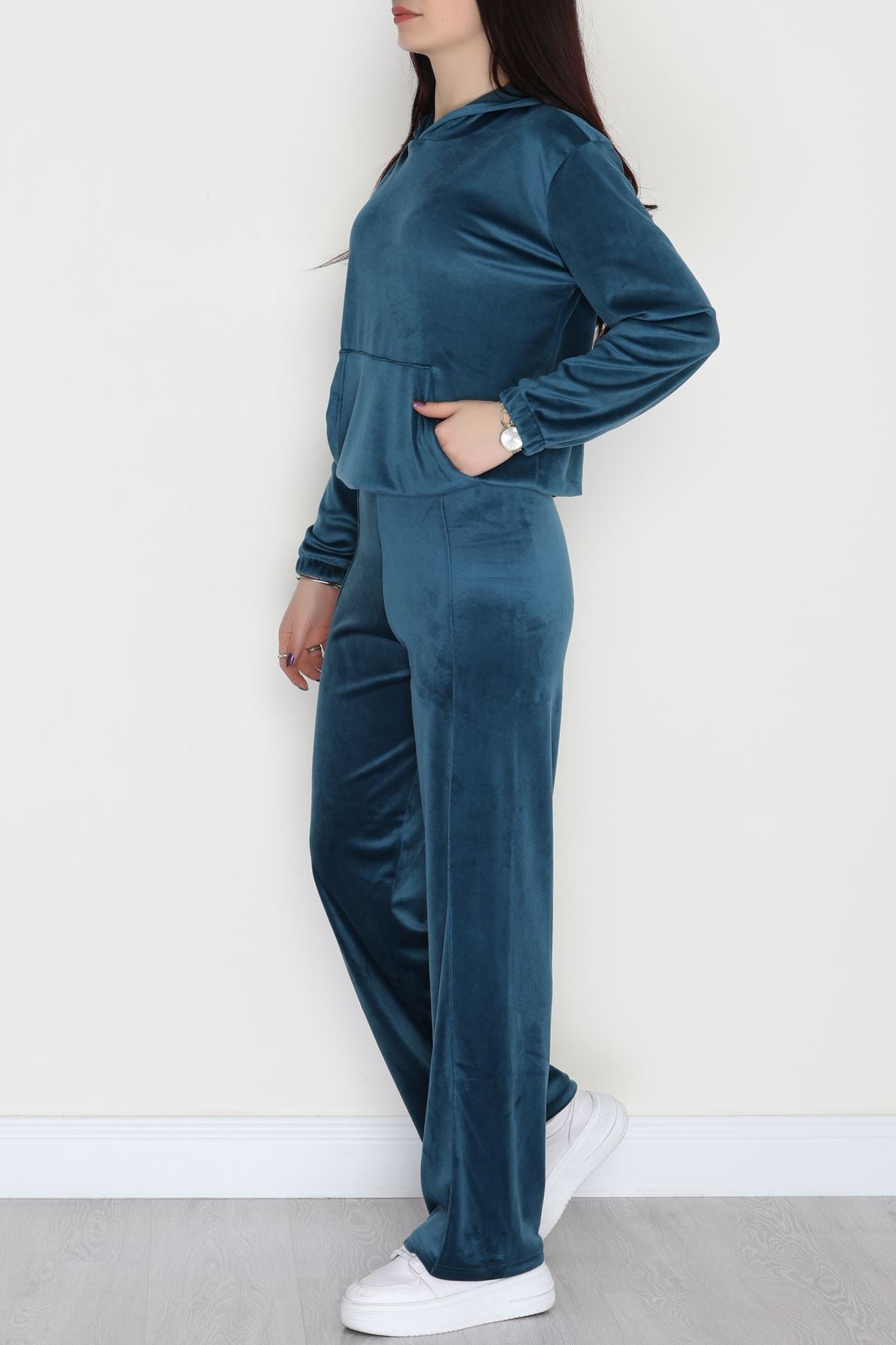 Kapşonlu Kadife Takım Petrol - 466.1287.