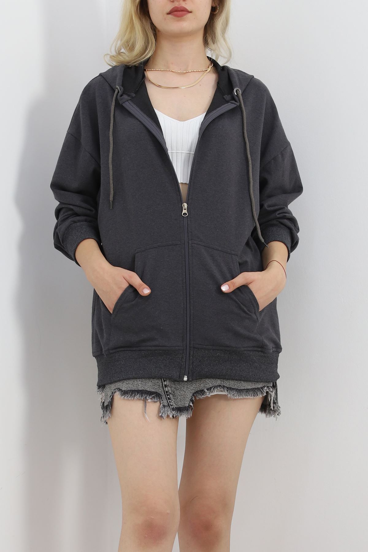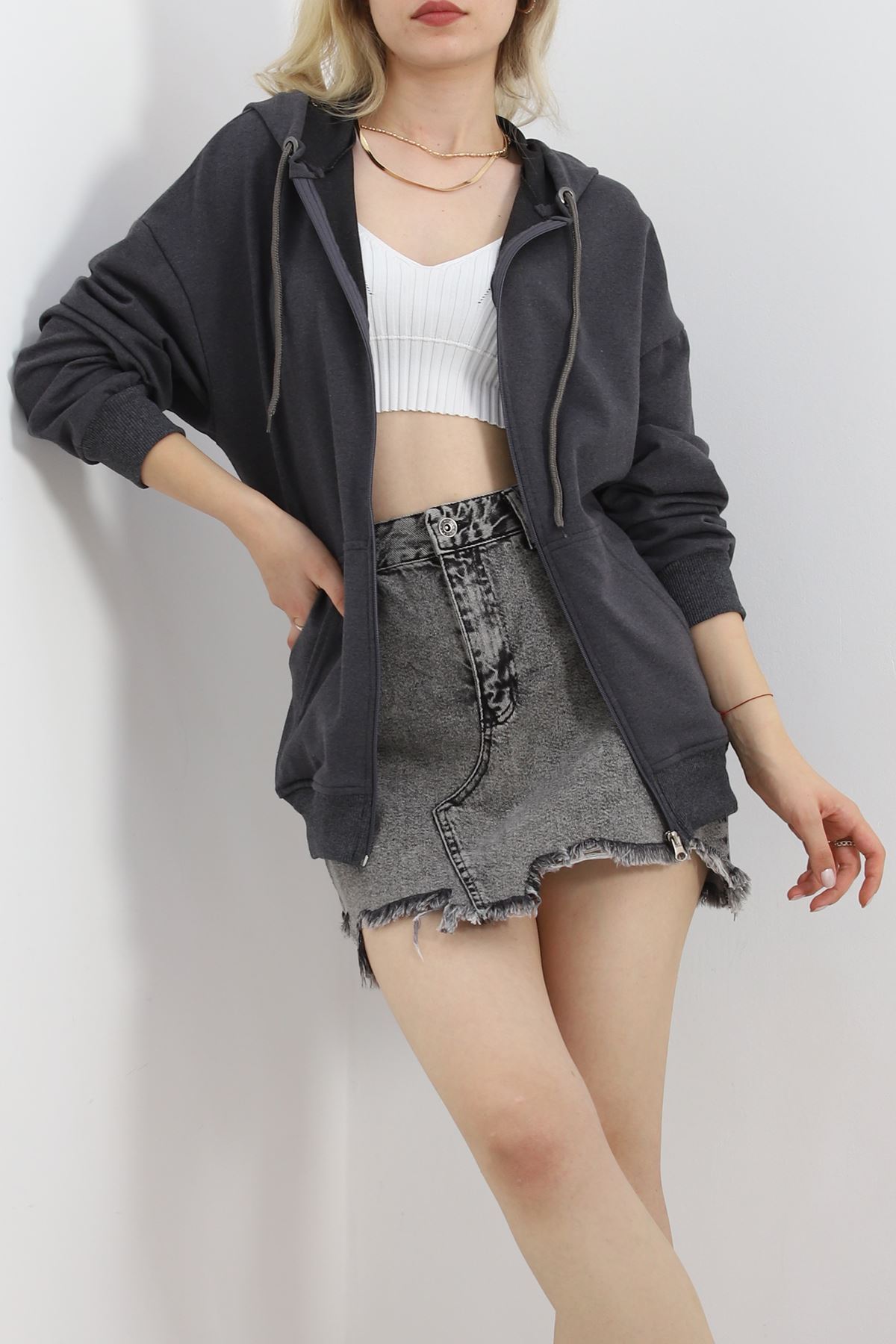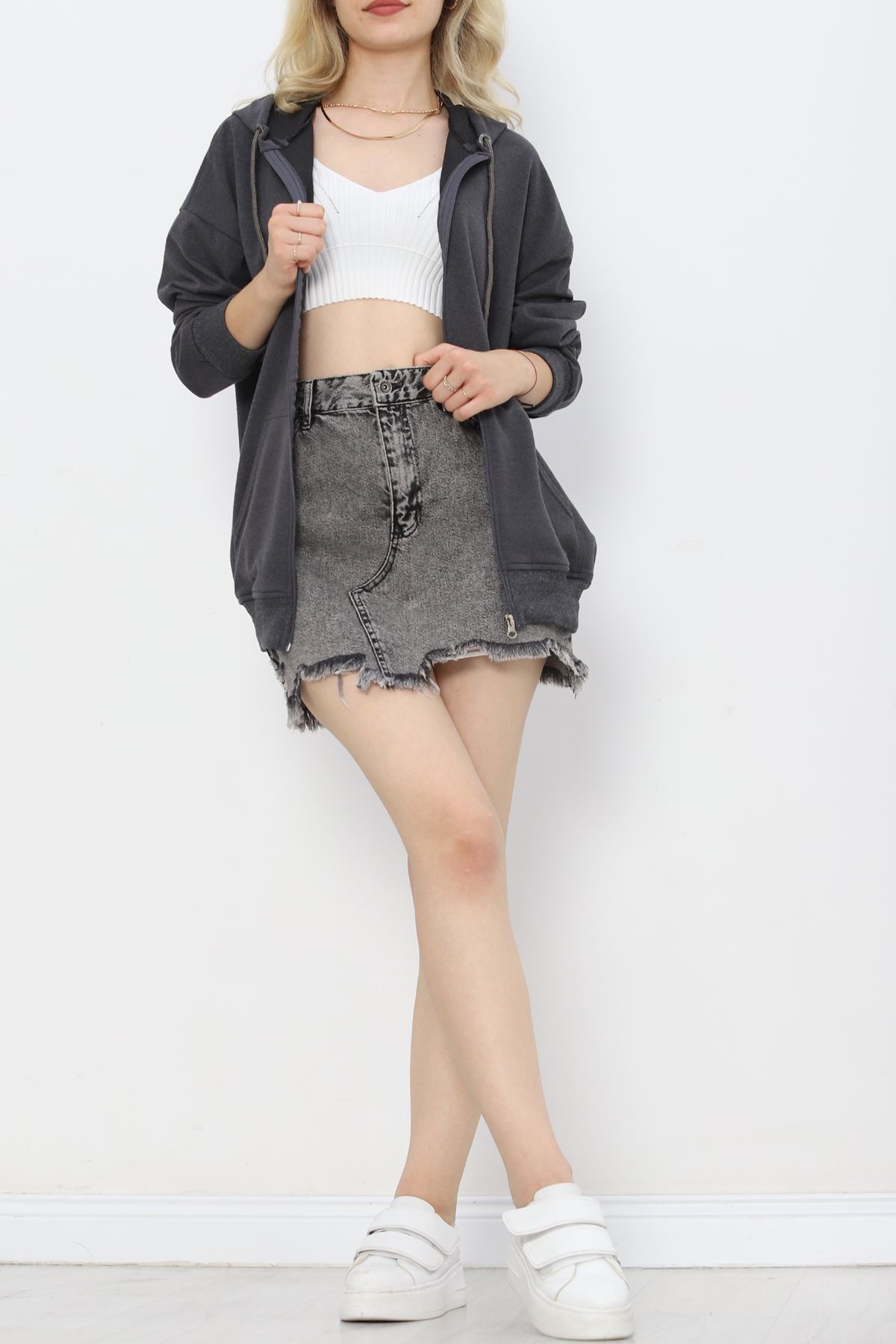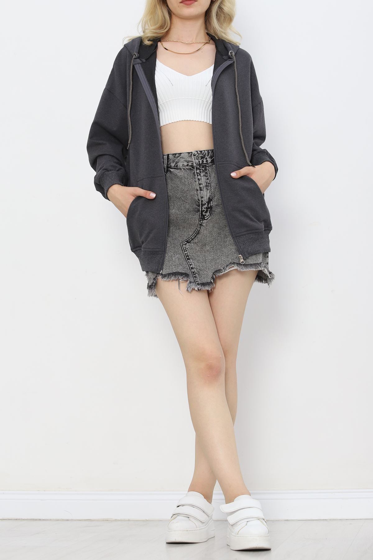 Kapşonlu Oversize Sweat Füme - 20201.053.
