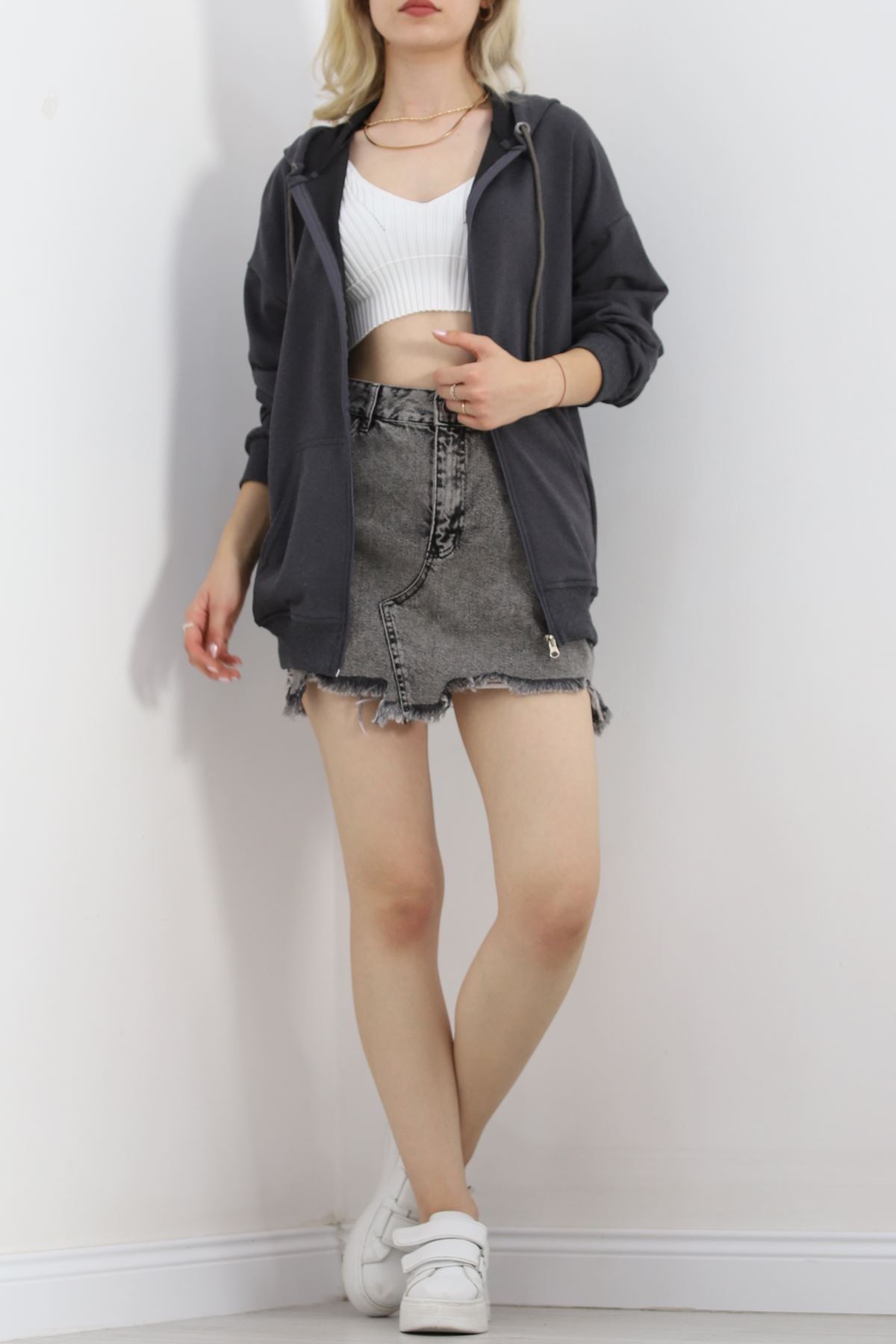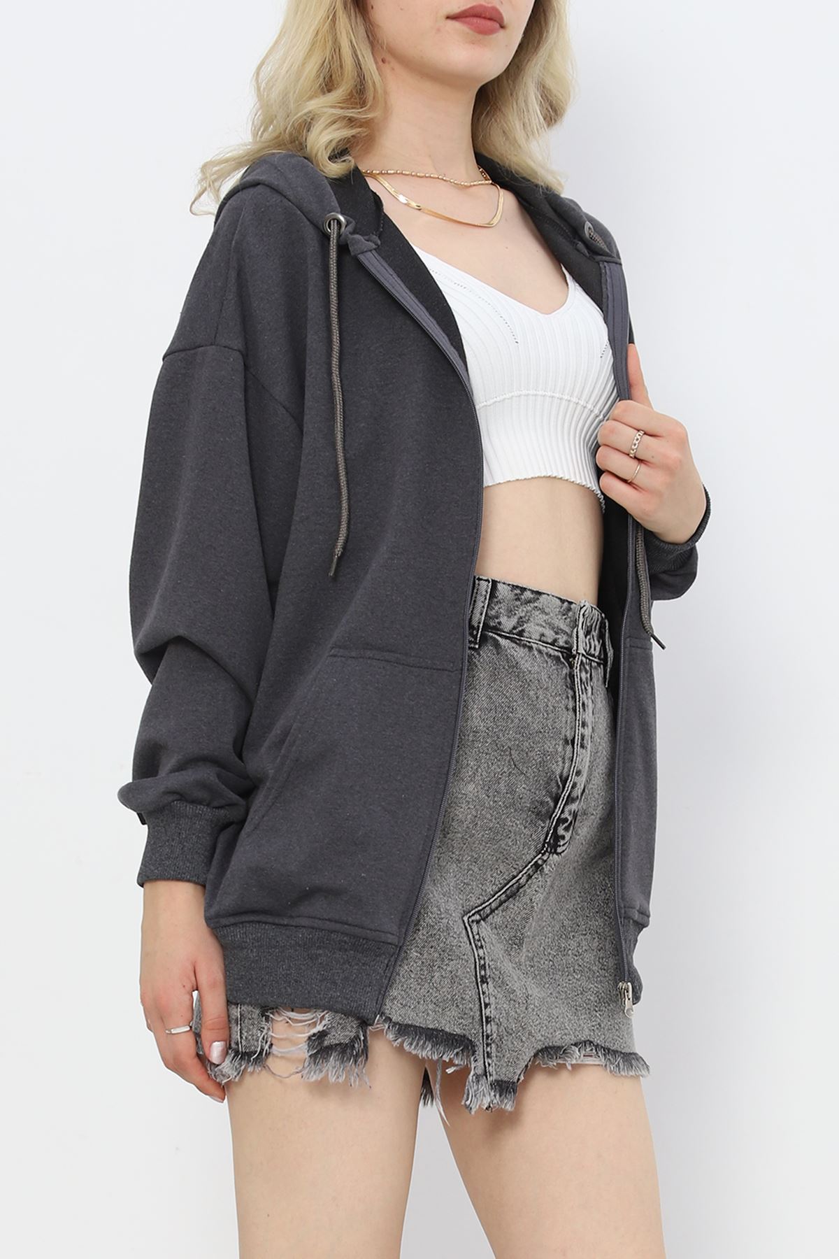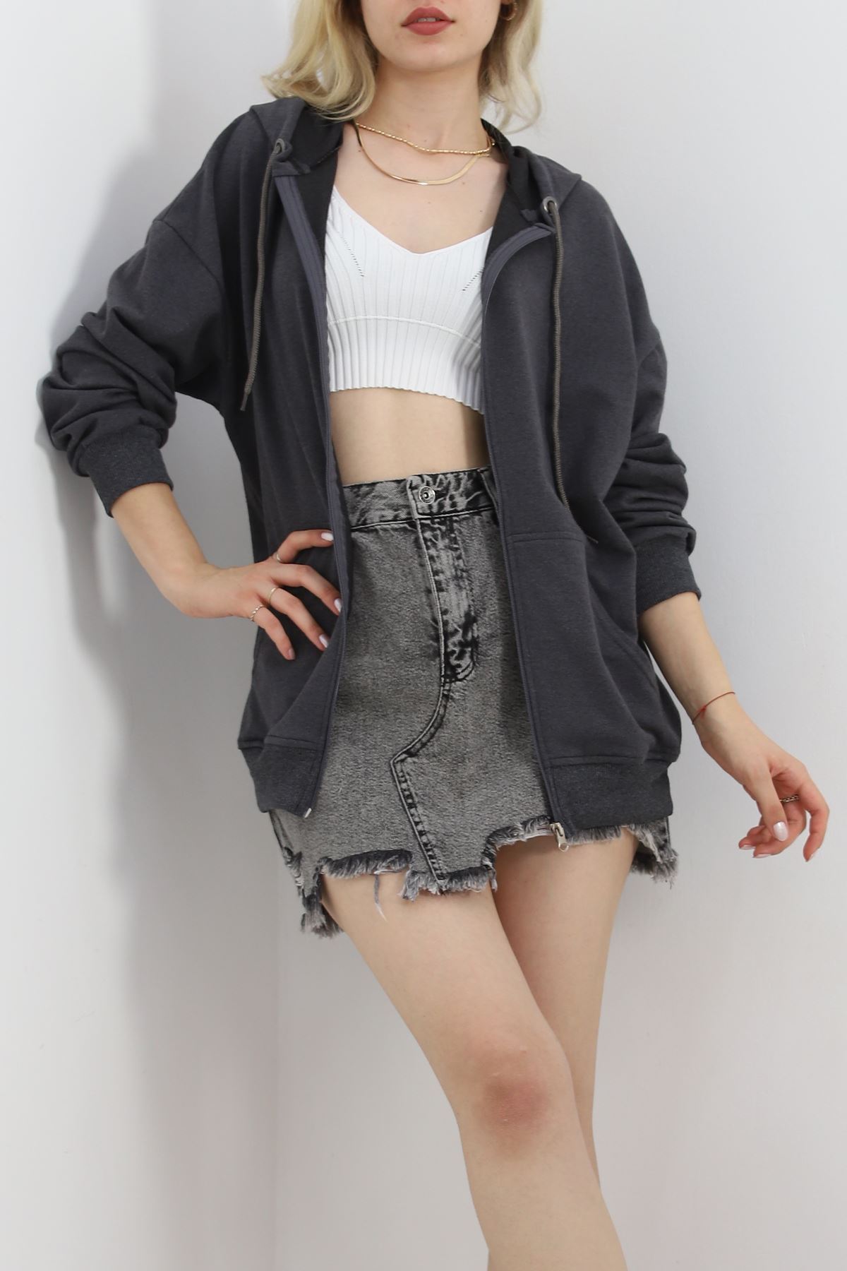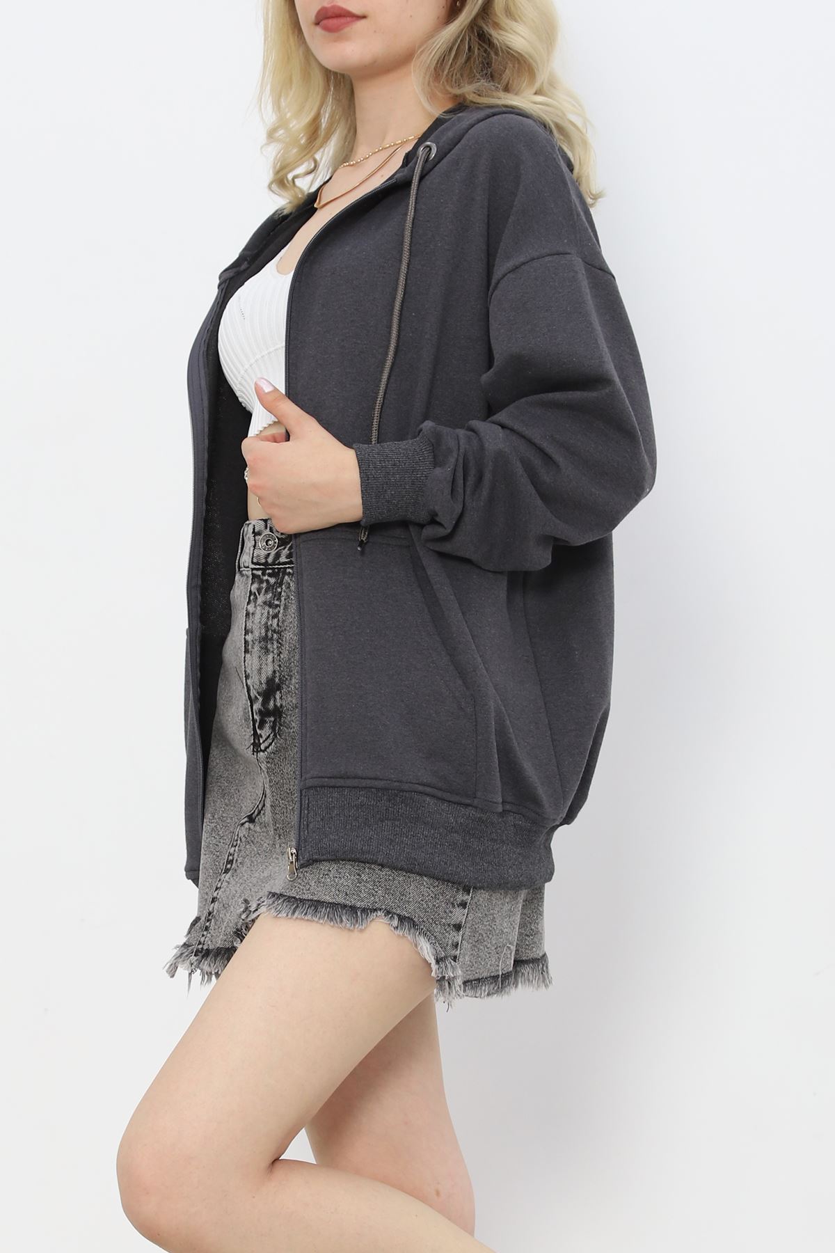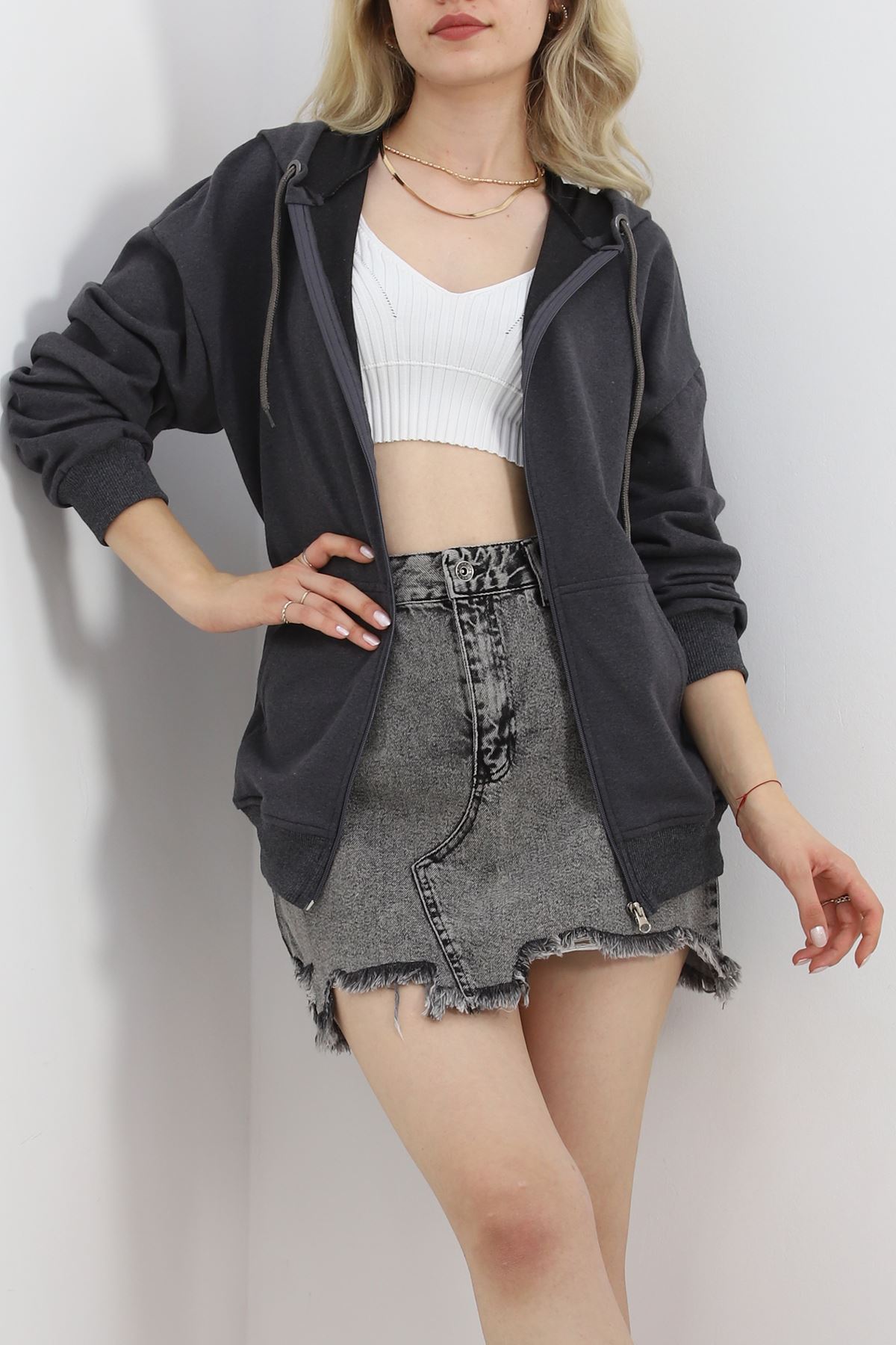 Kapşonlu Oversize Sweat Füme - 20201.053.