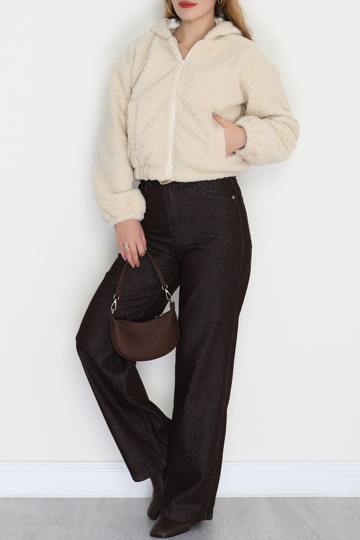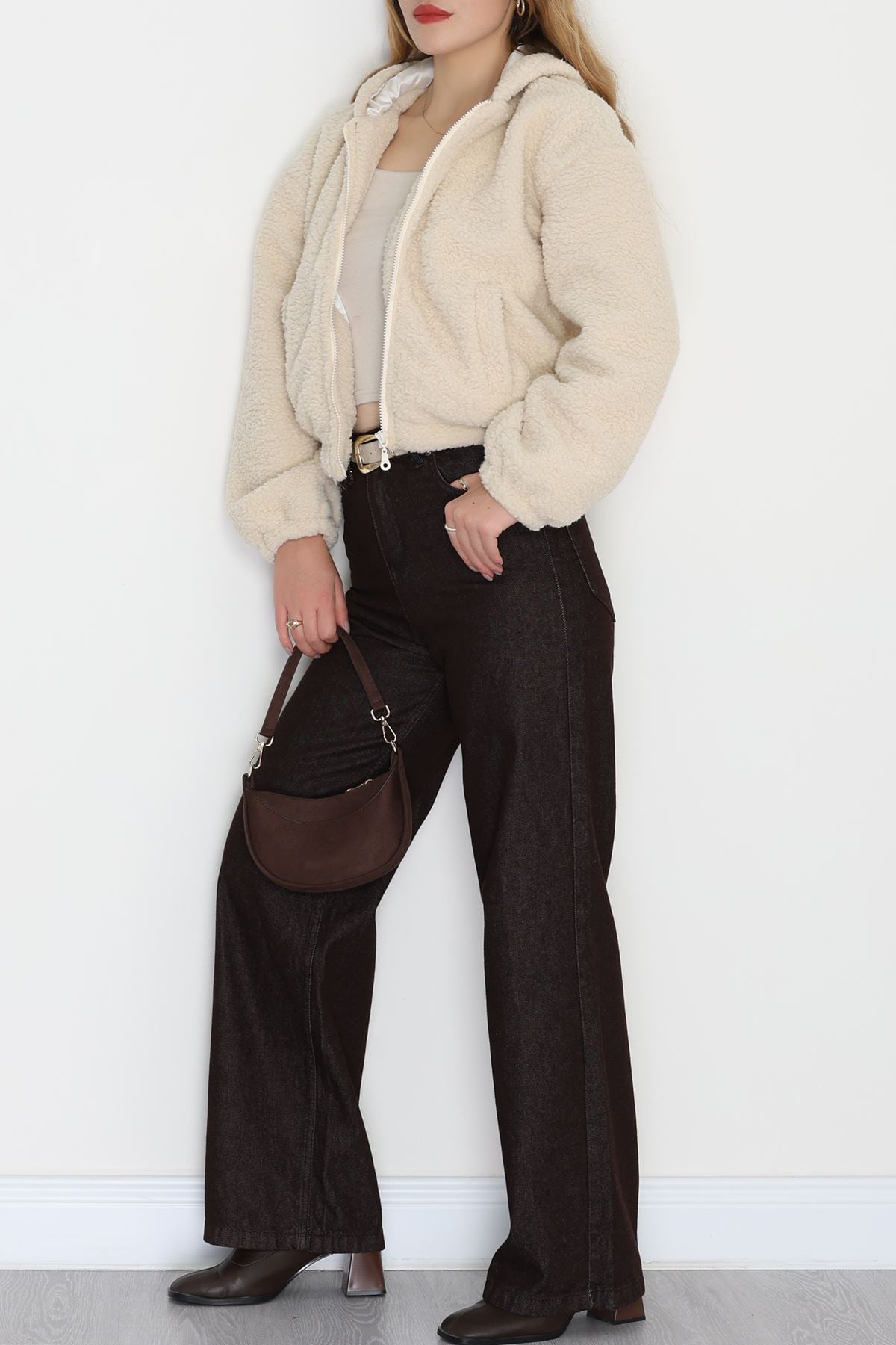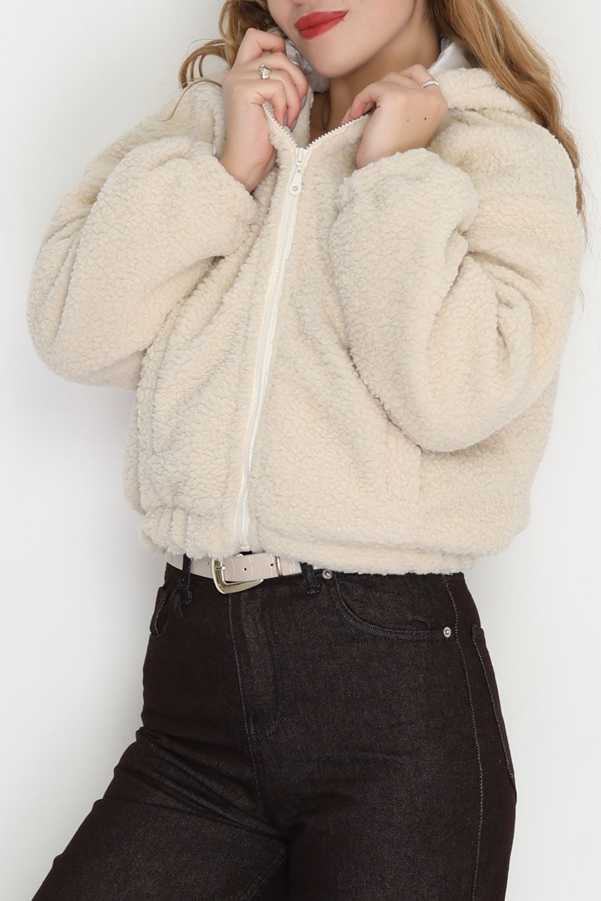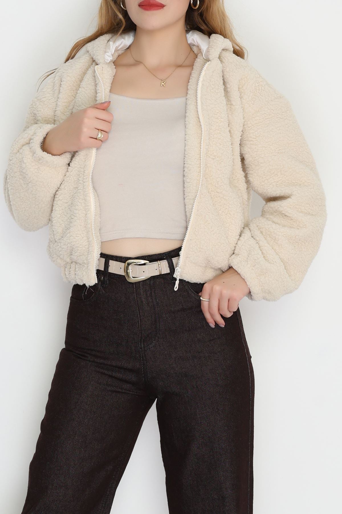Kapşonlu Peluş Mont Bej - 42445.1247.