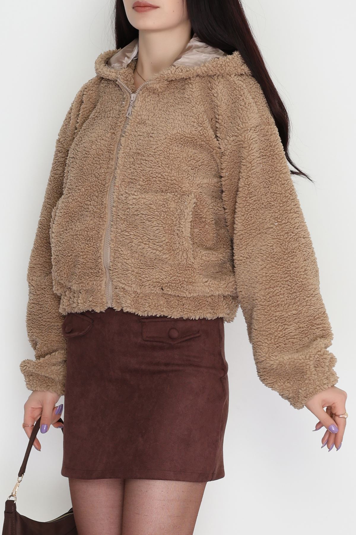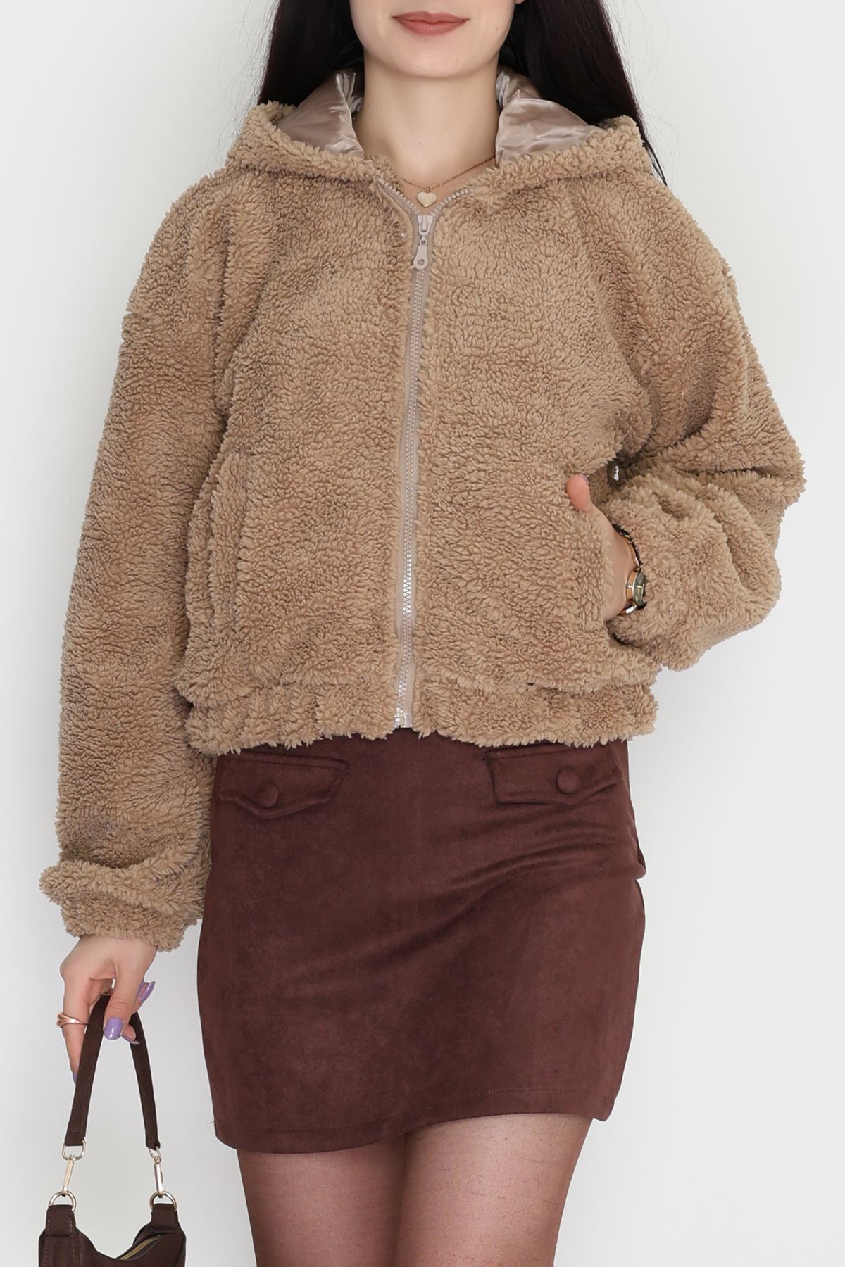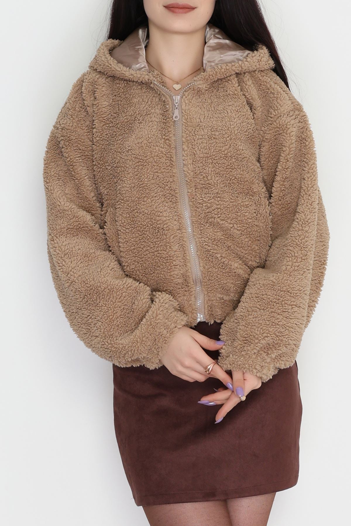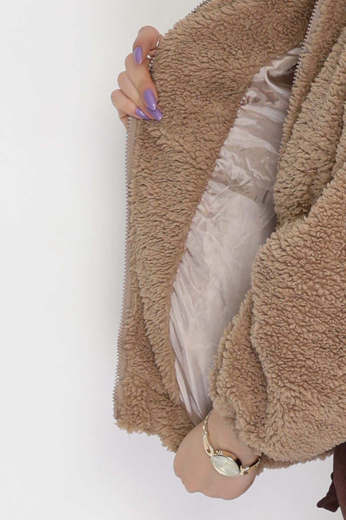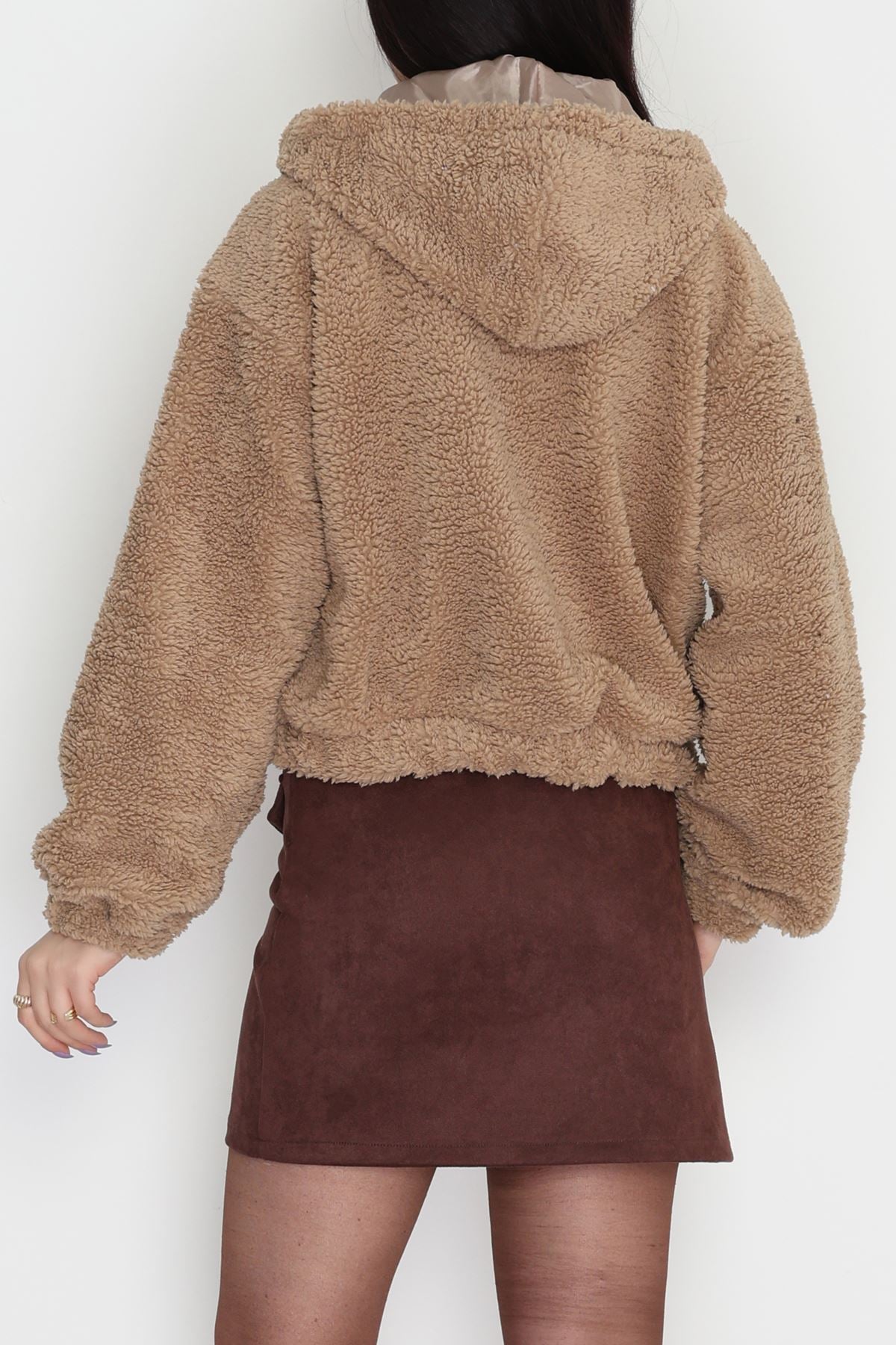 Kapşonlu Peluş Mont Camel - 42445.1247.