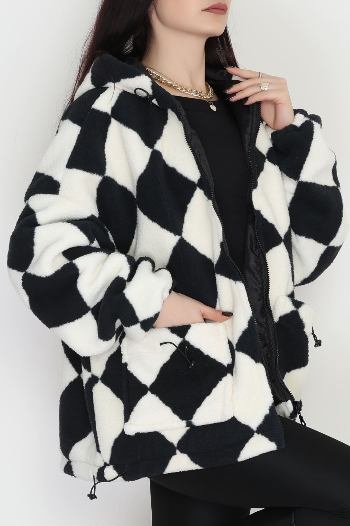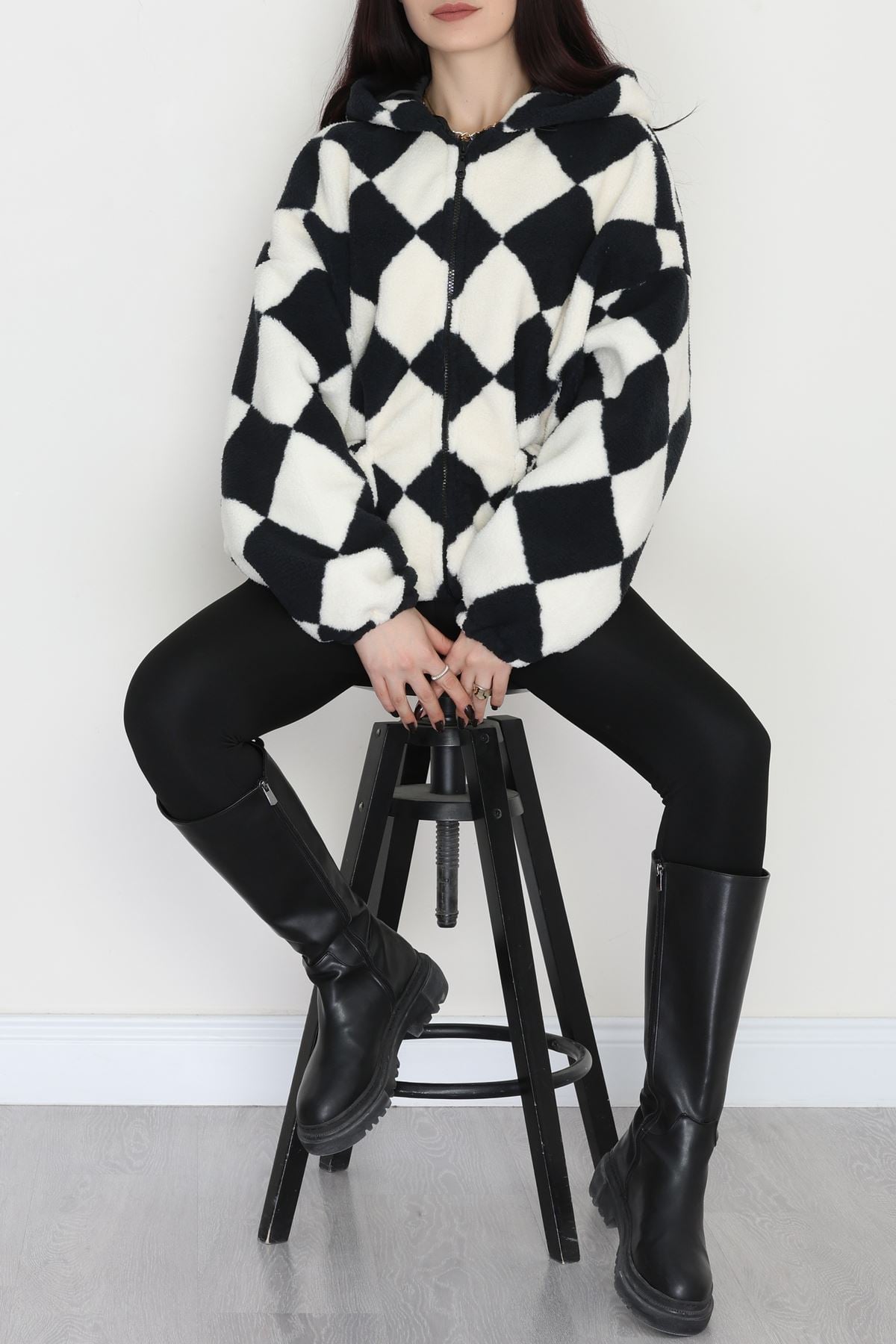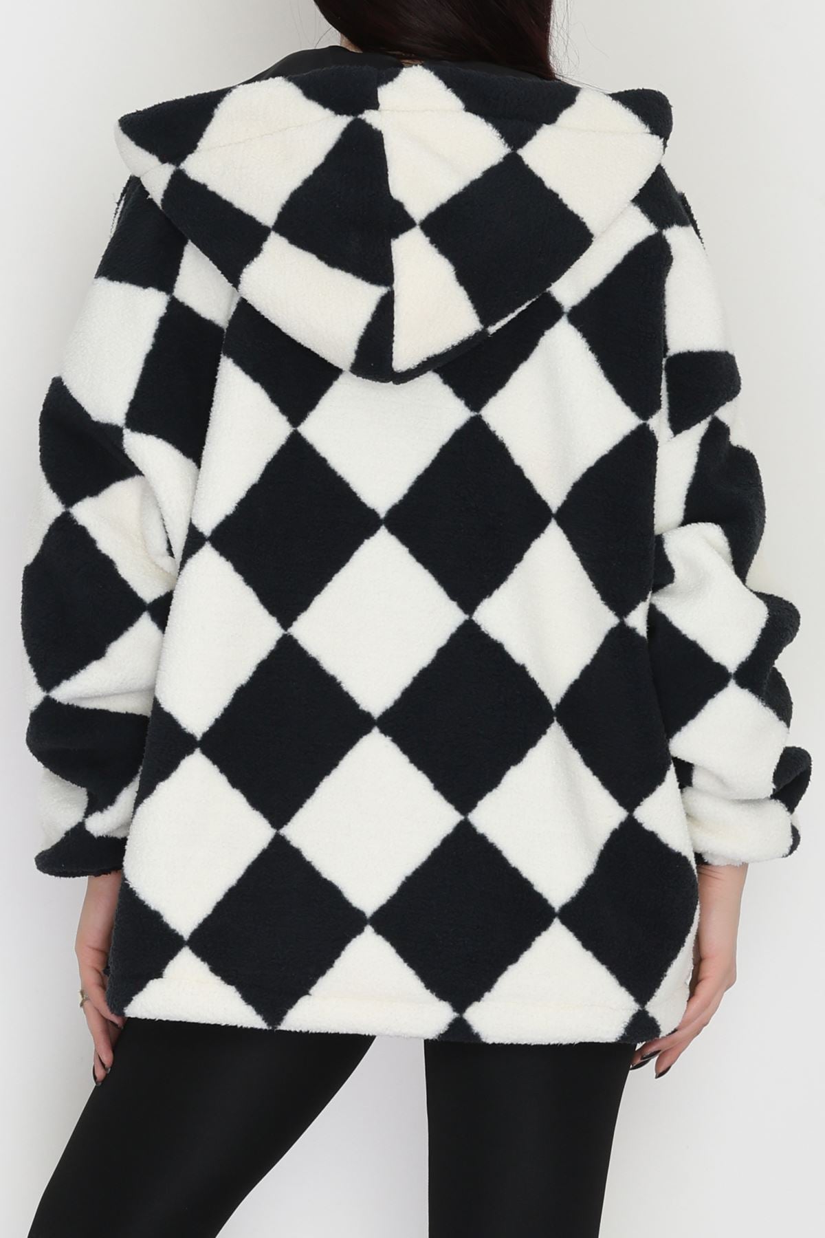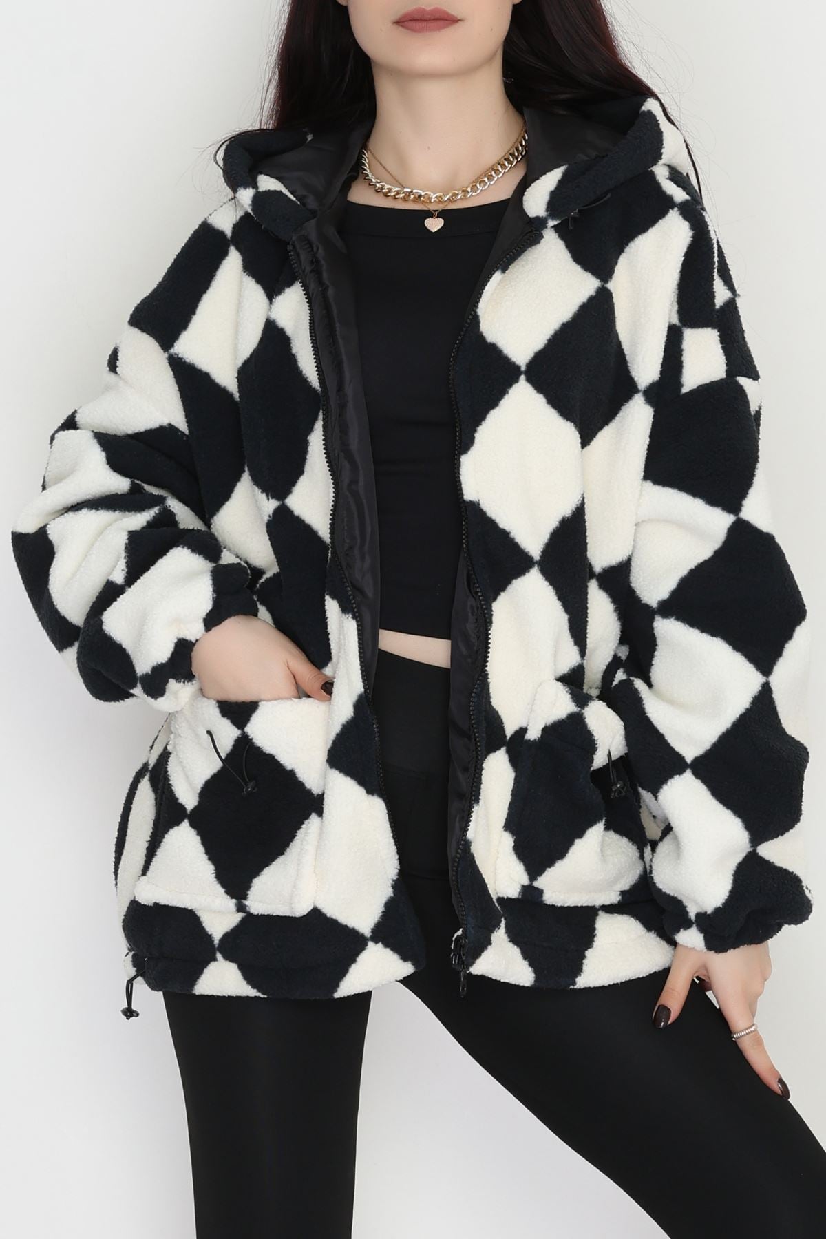 Kareli Kapşonlu Mont Siyah - 4047.1247.