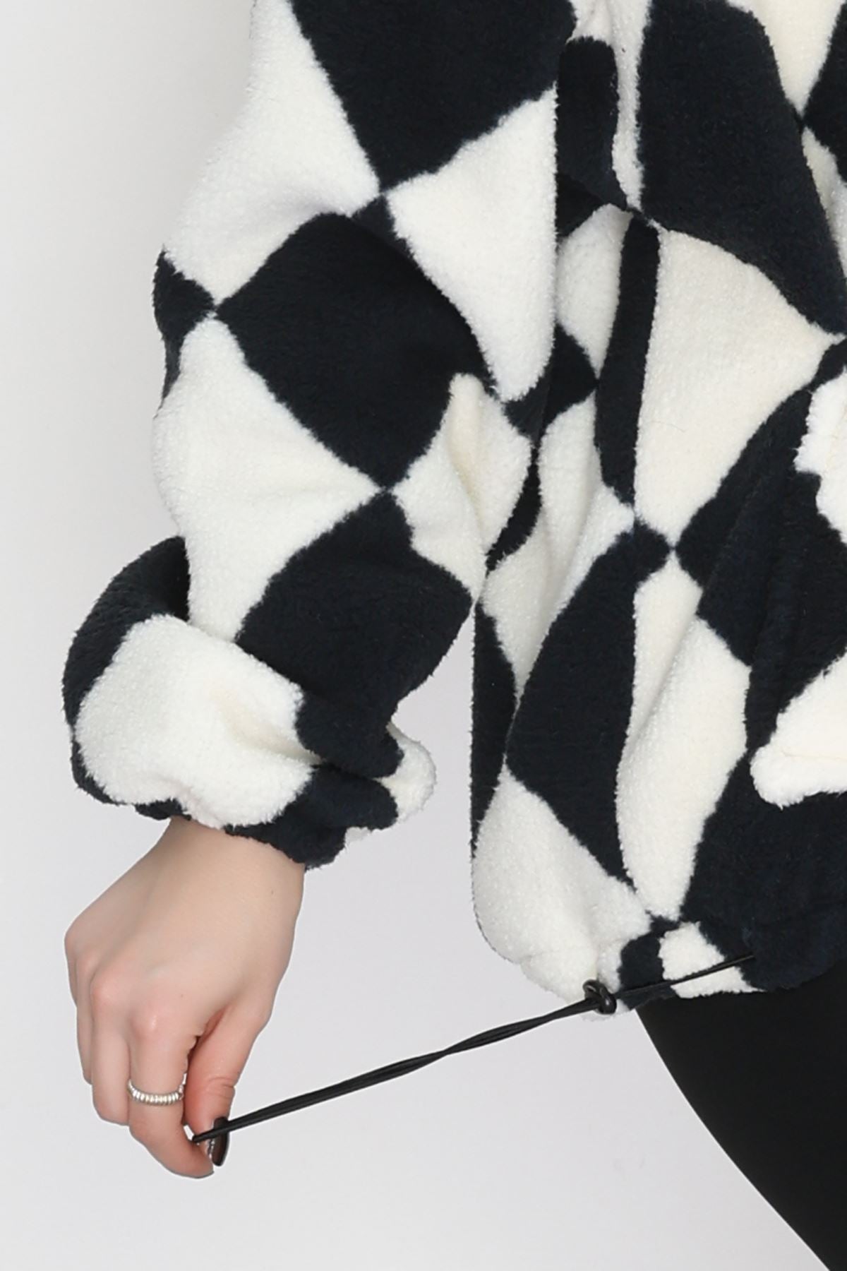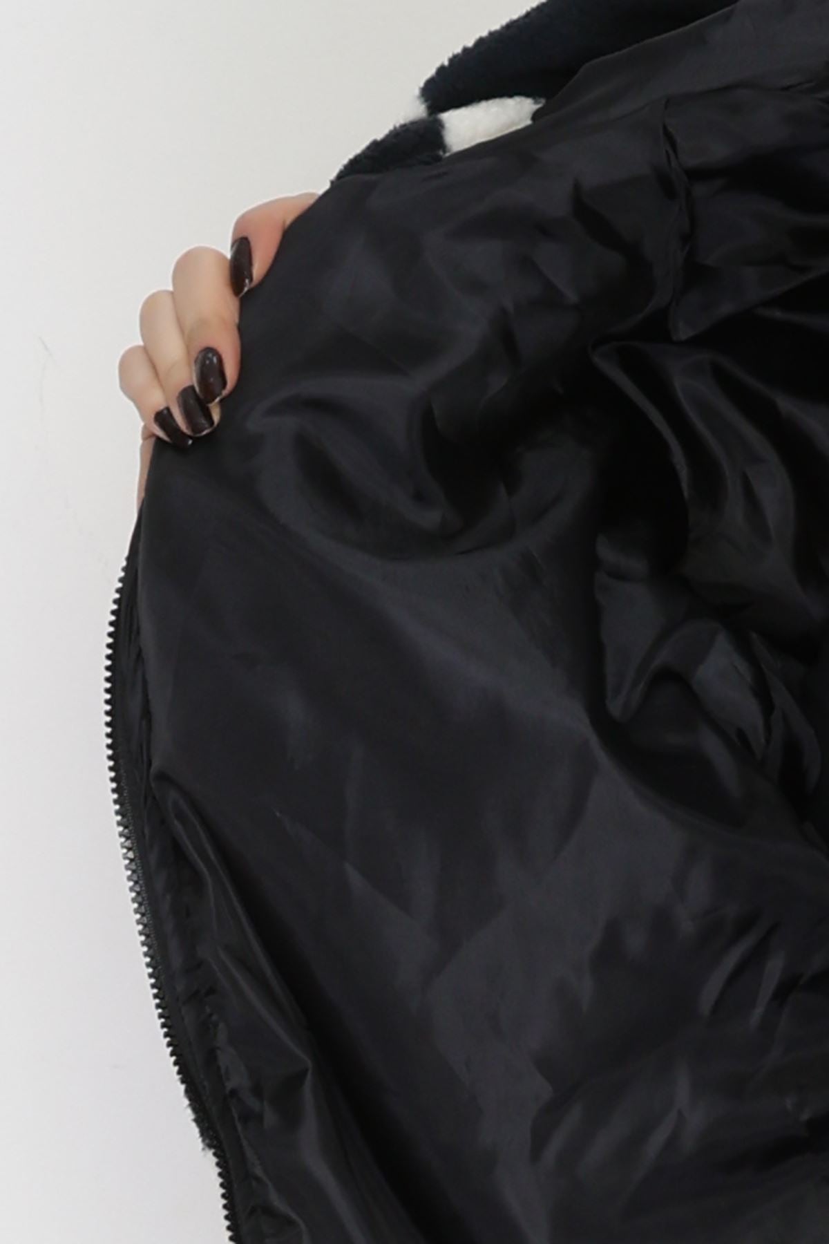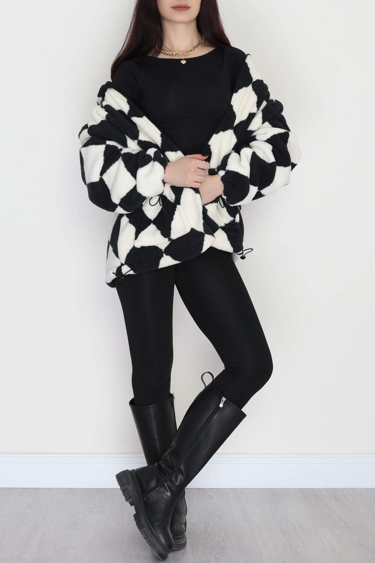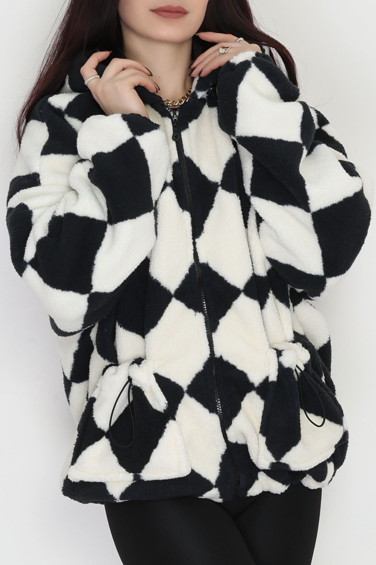 Kareli Kapşonlu Mont Siyah - 4047.1247.