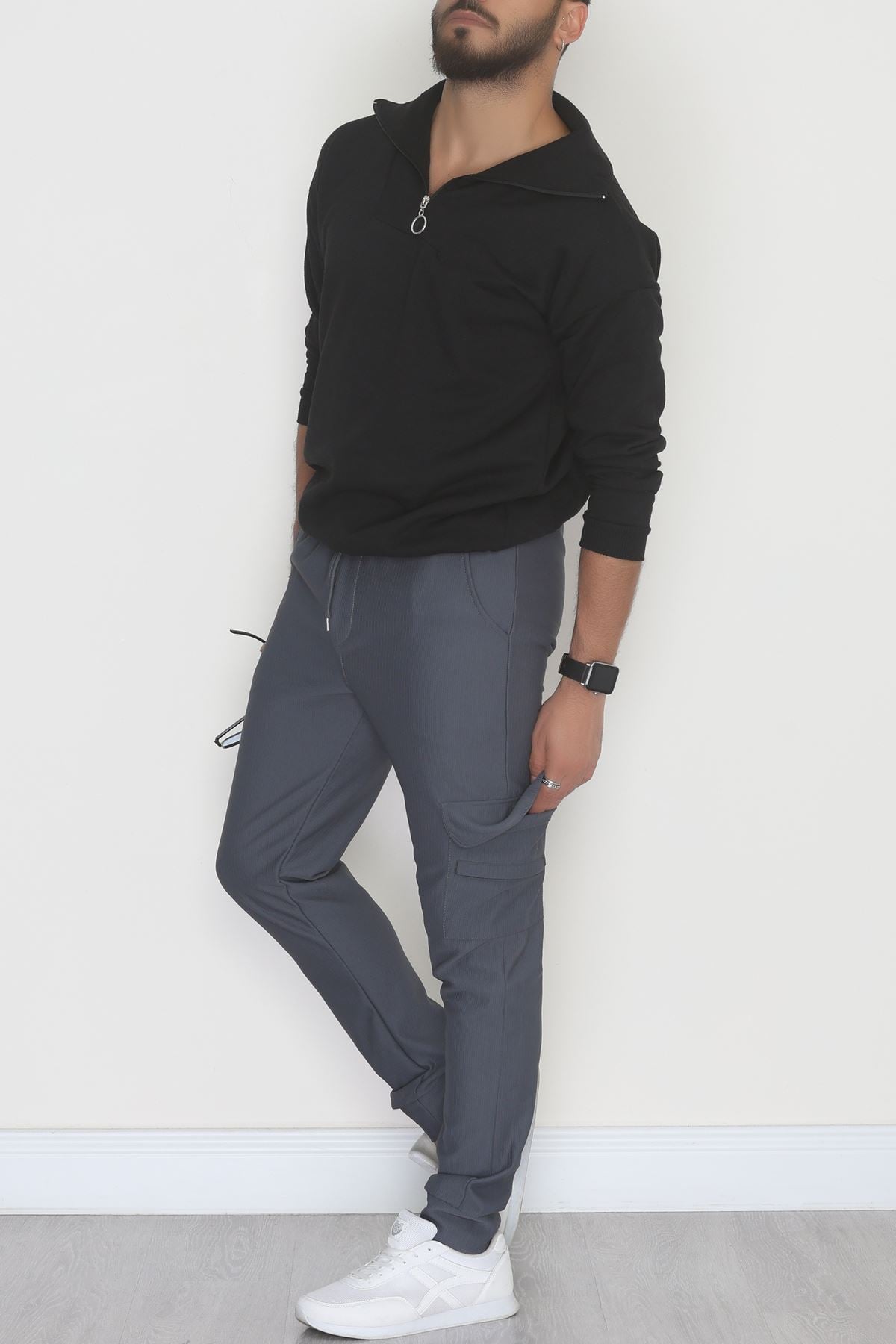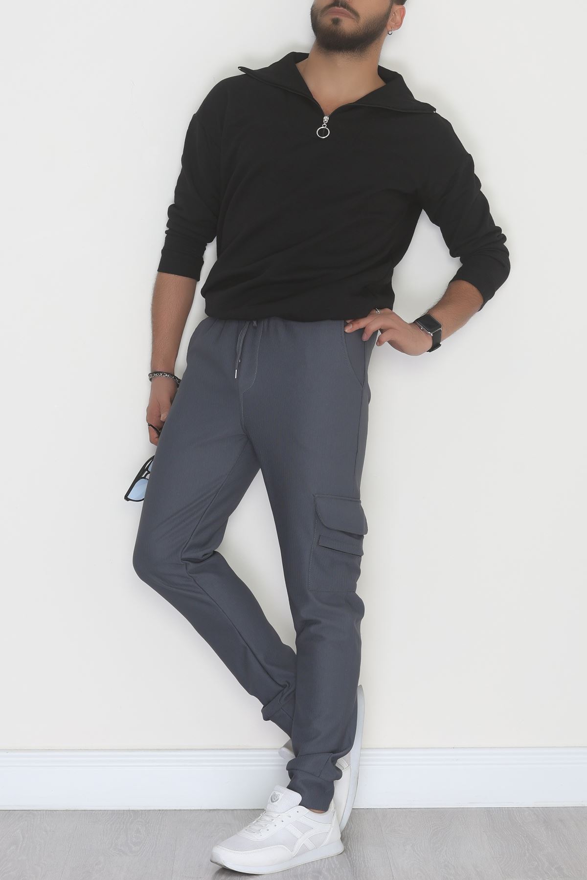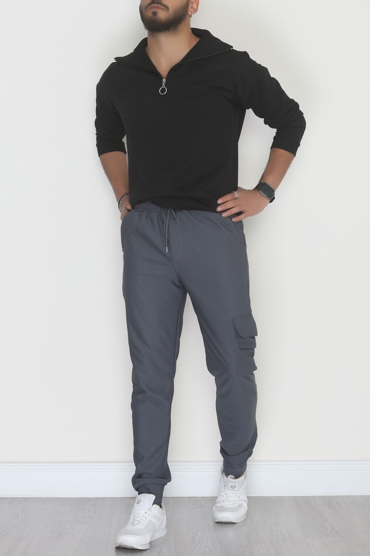 Kargo Cepli Ottoman Kumaş Erkek Eşofman Altı Füme - 42654.1937.