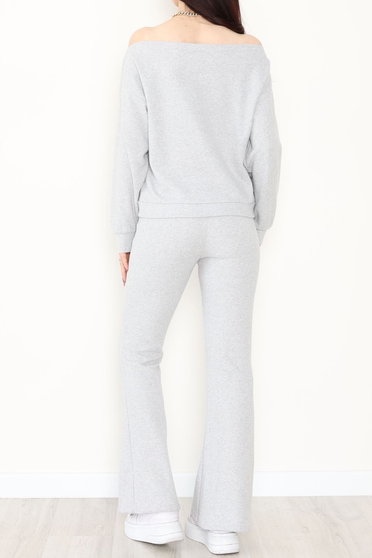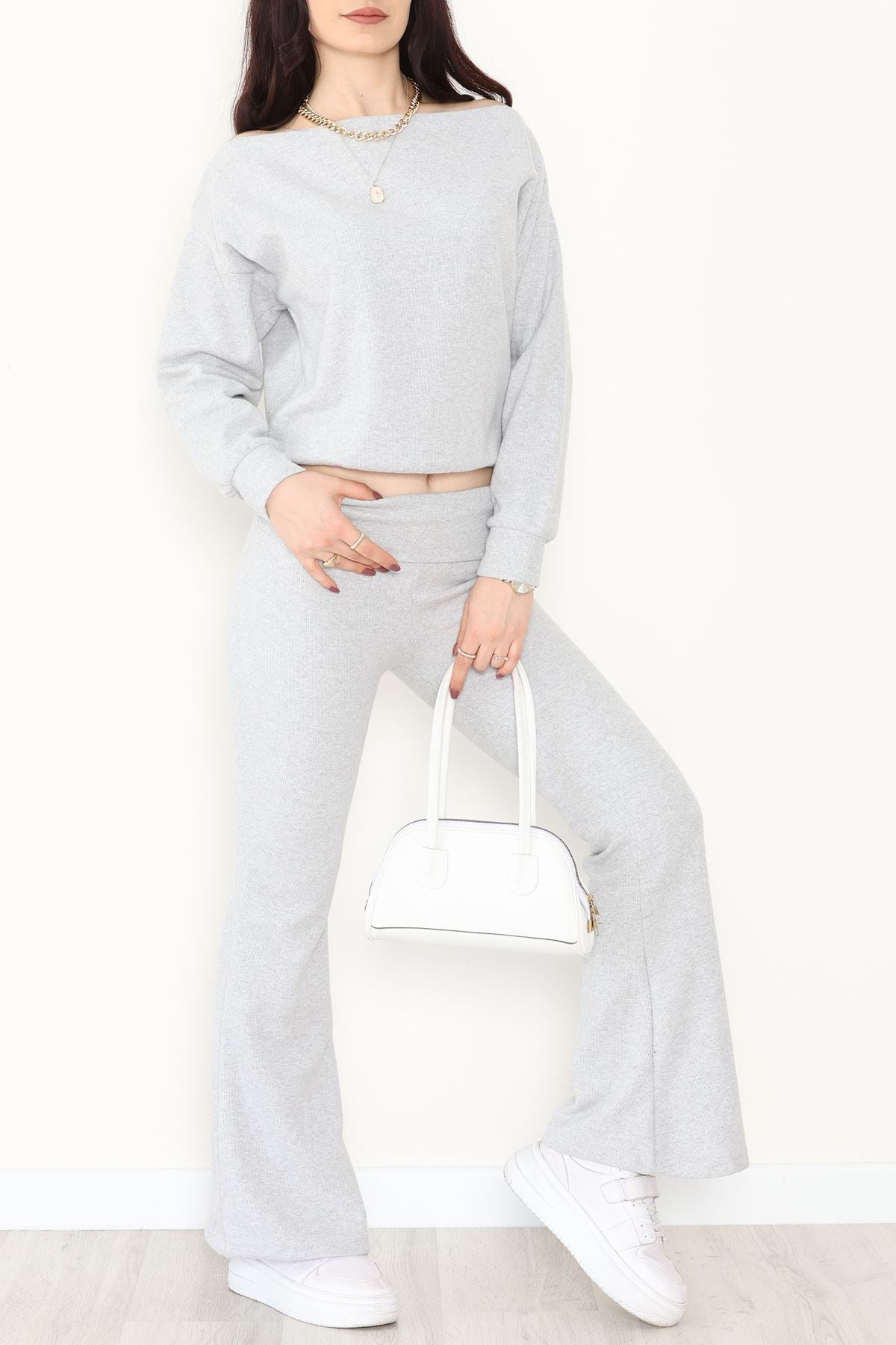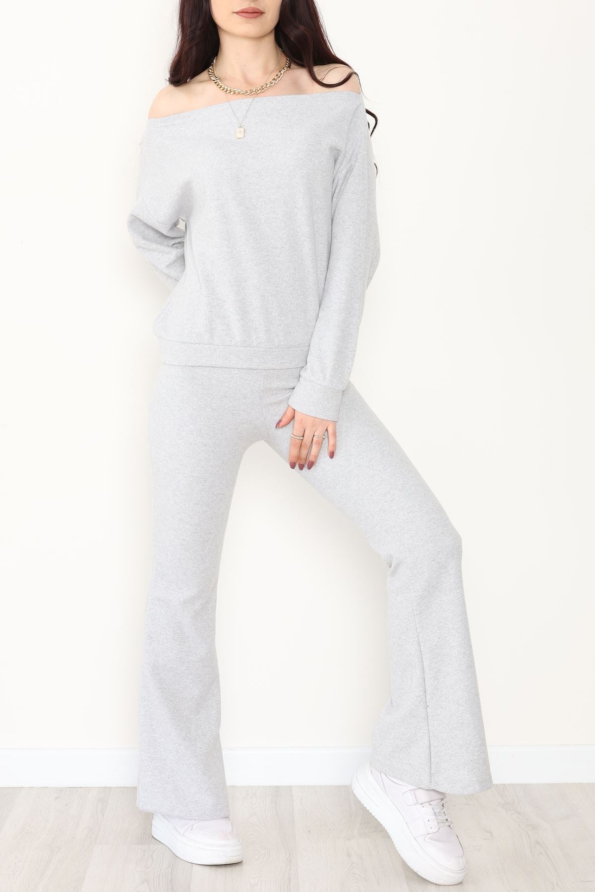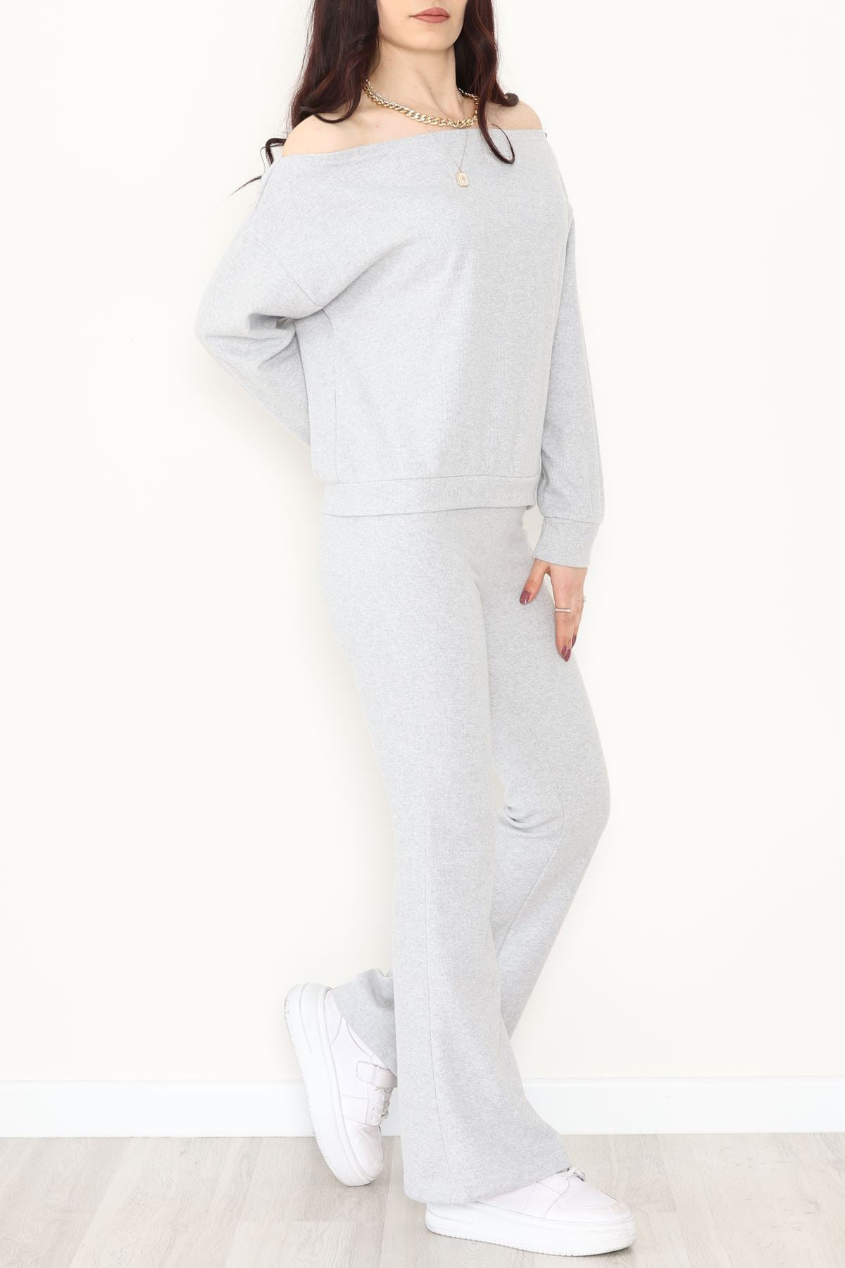 Kayık Yaka Selanik Kumaş İkili Takım Gri - 42739.1567.
