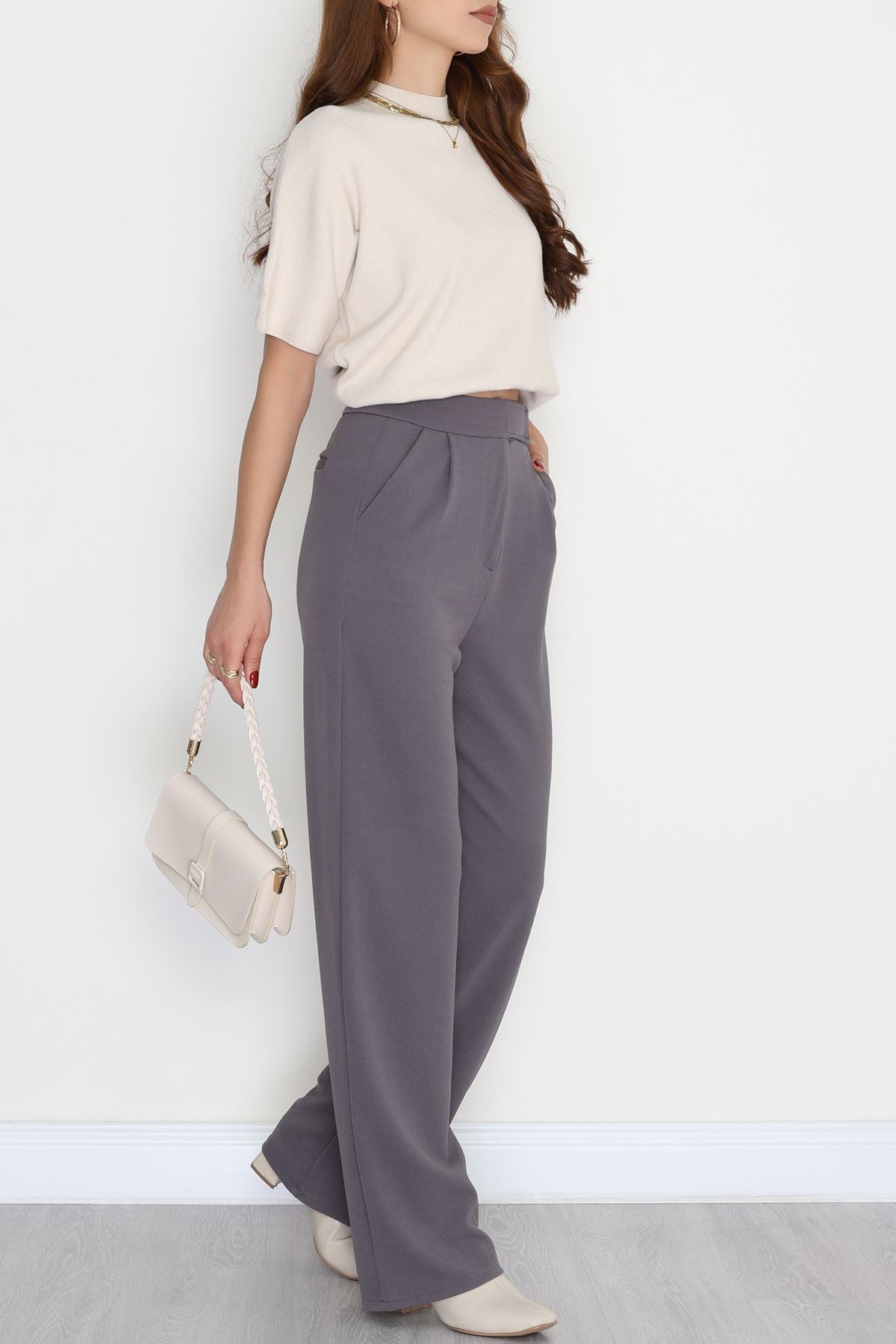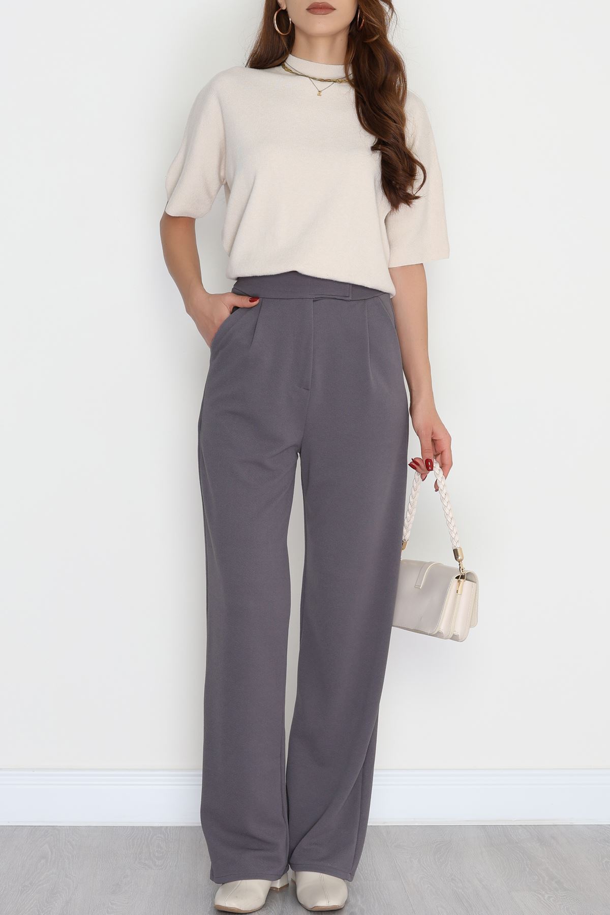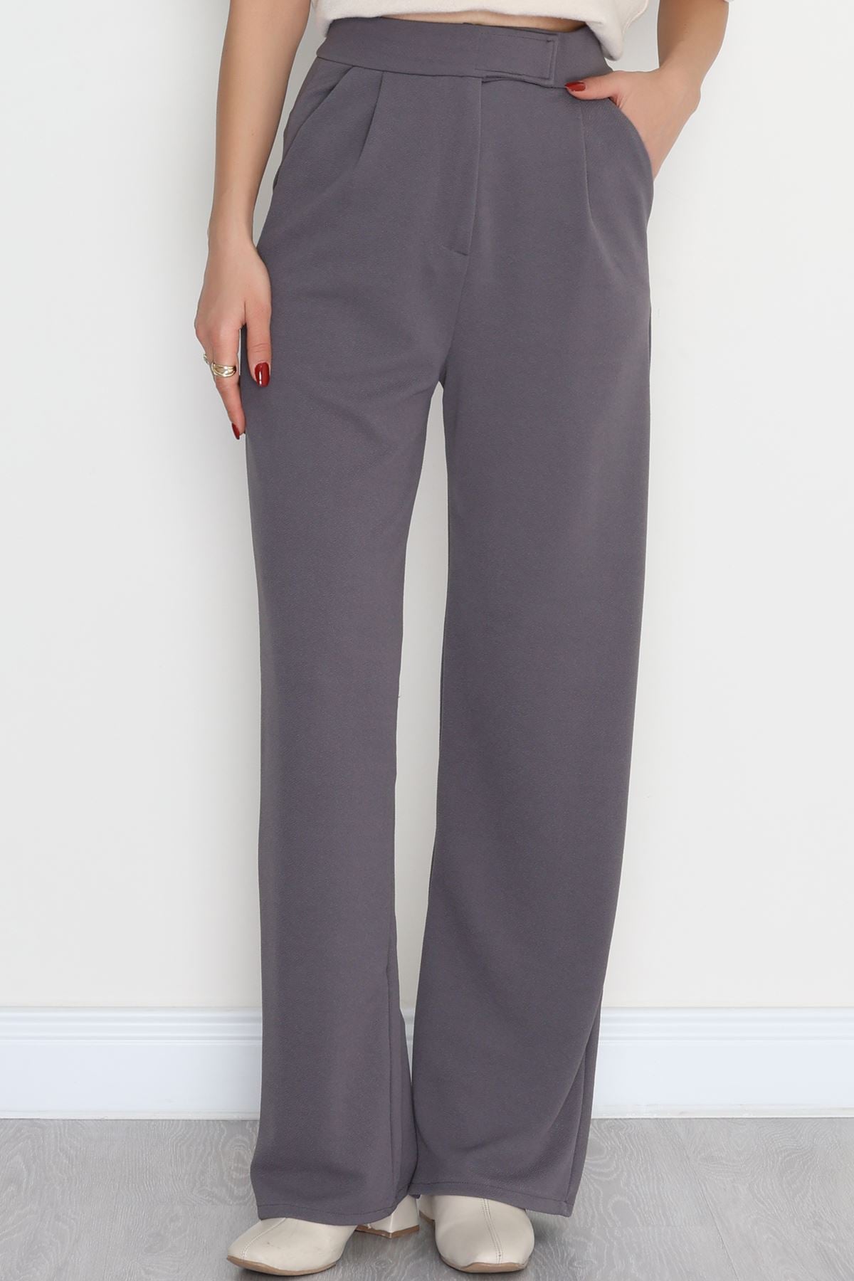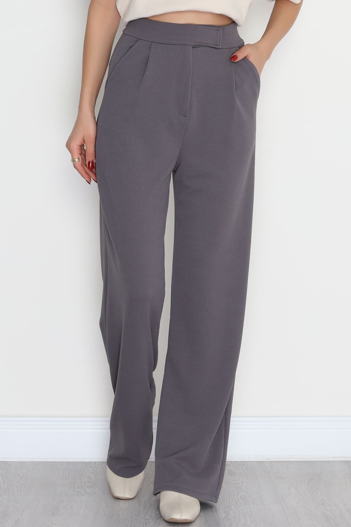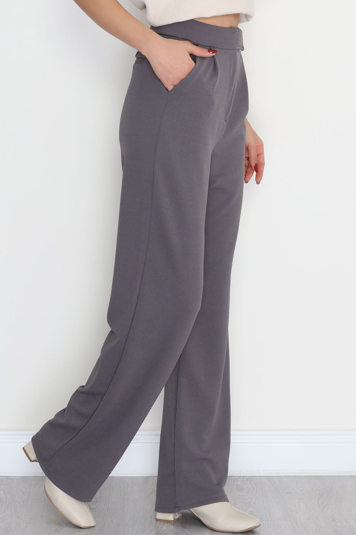 Kemer Cırtlı Krep Pantolon Füme - 20255.1865.