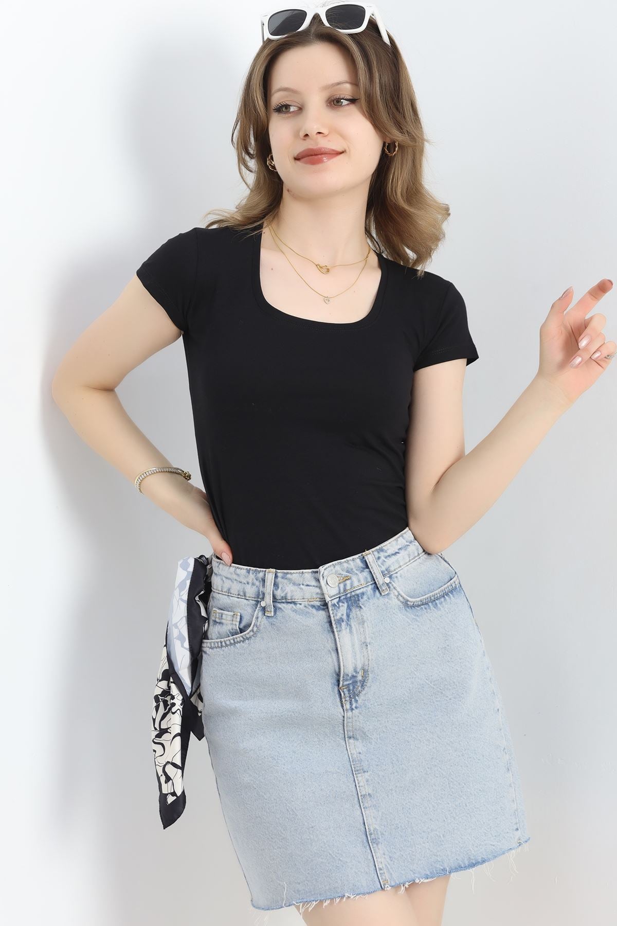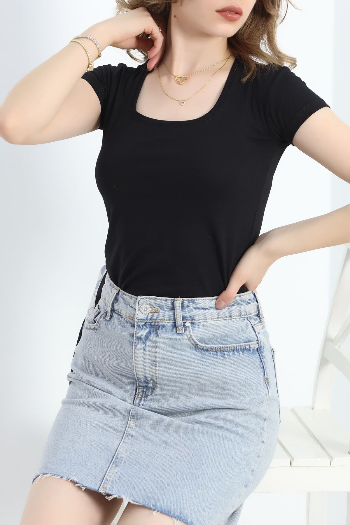 Kısa Kol Kare Yaka Body Siyah - 21069.200.