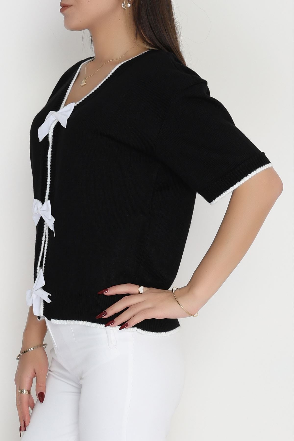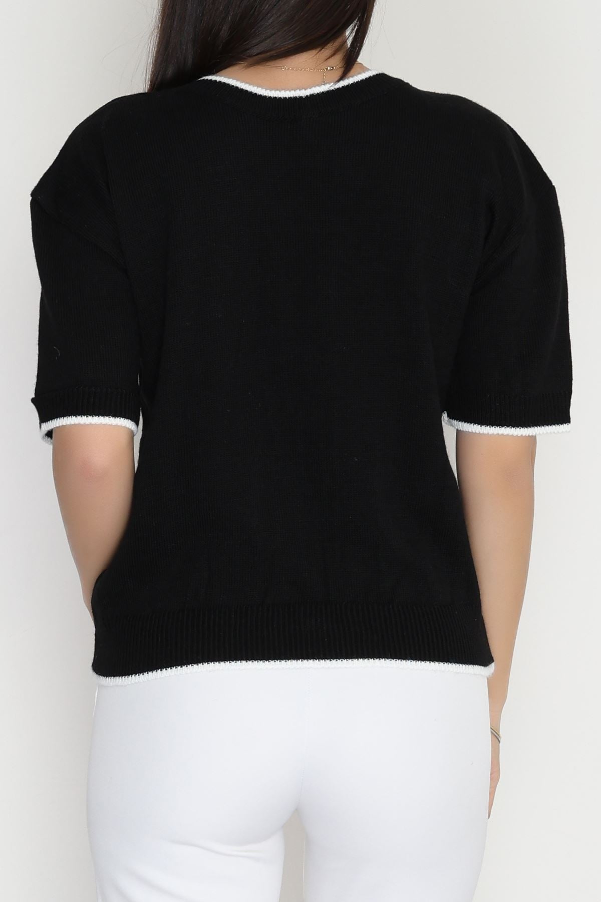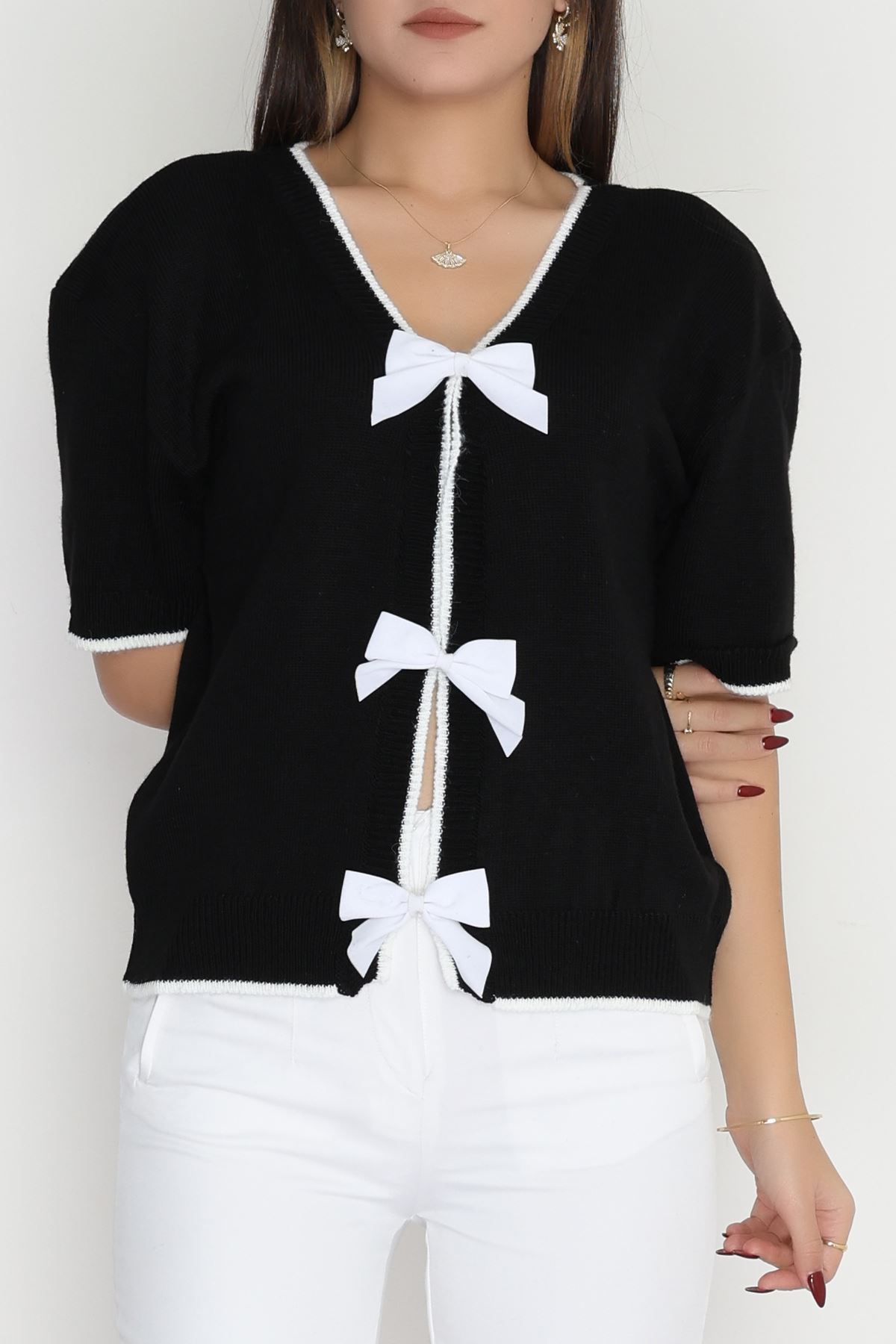 Kısa Kollu Fiyonklu Triko Siyah - 2281.1765.