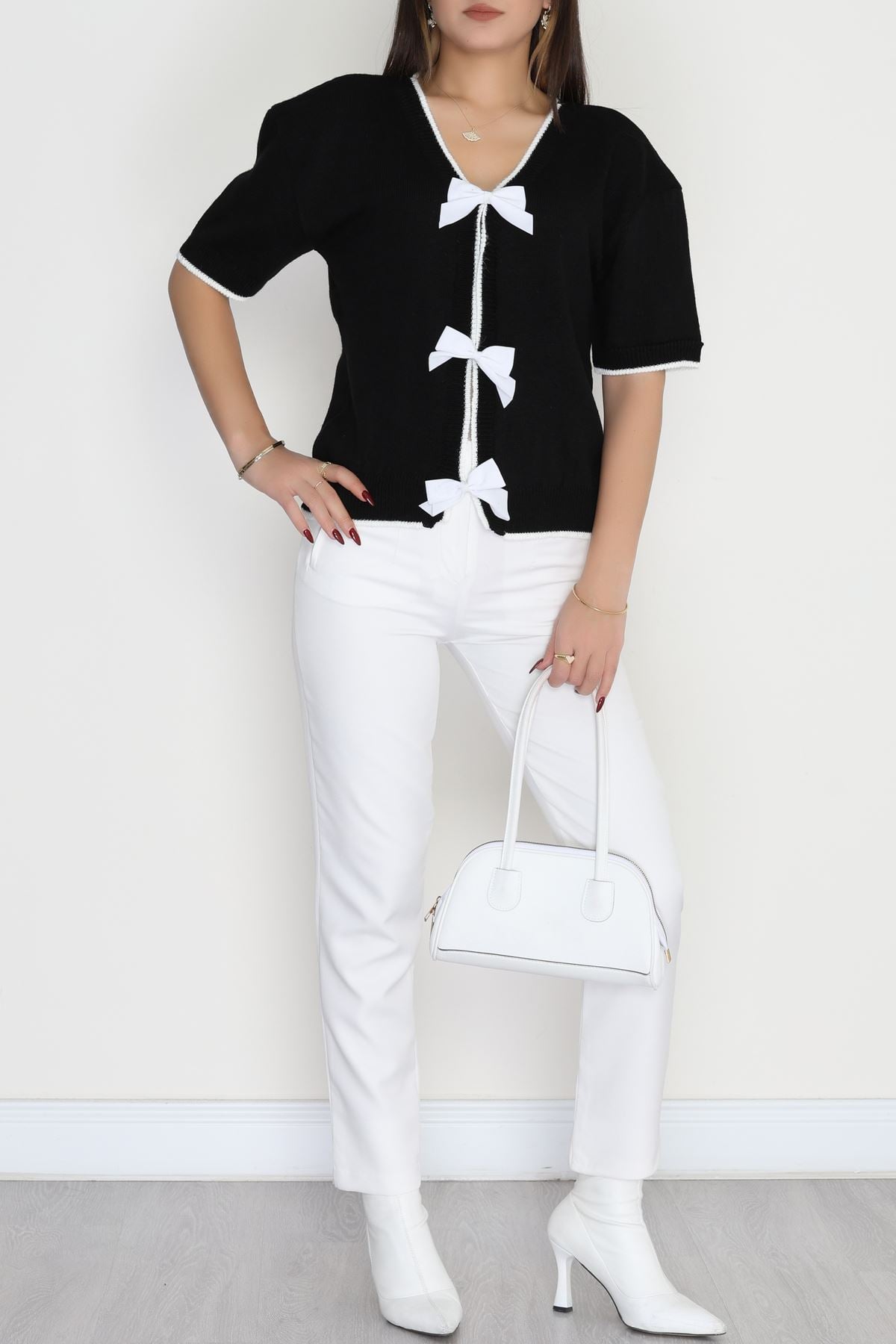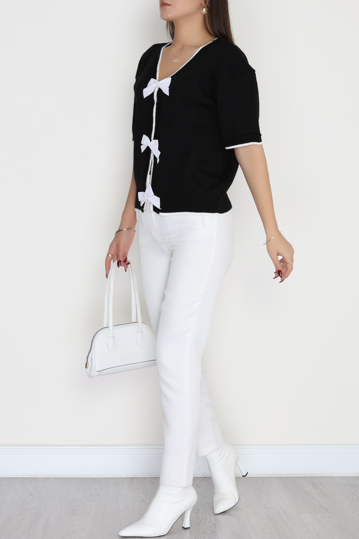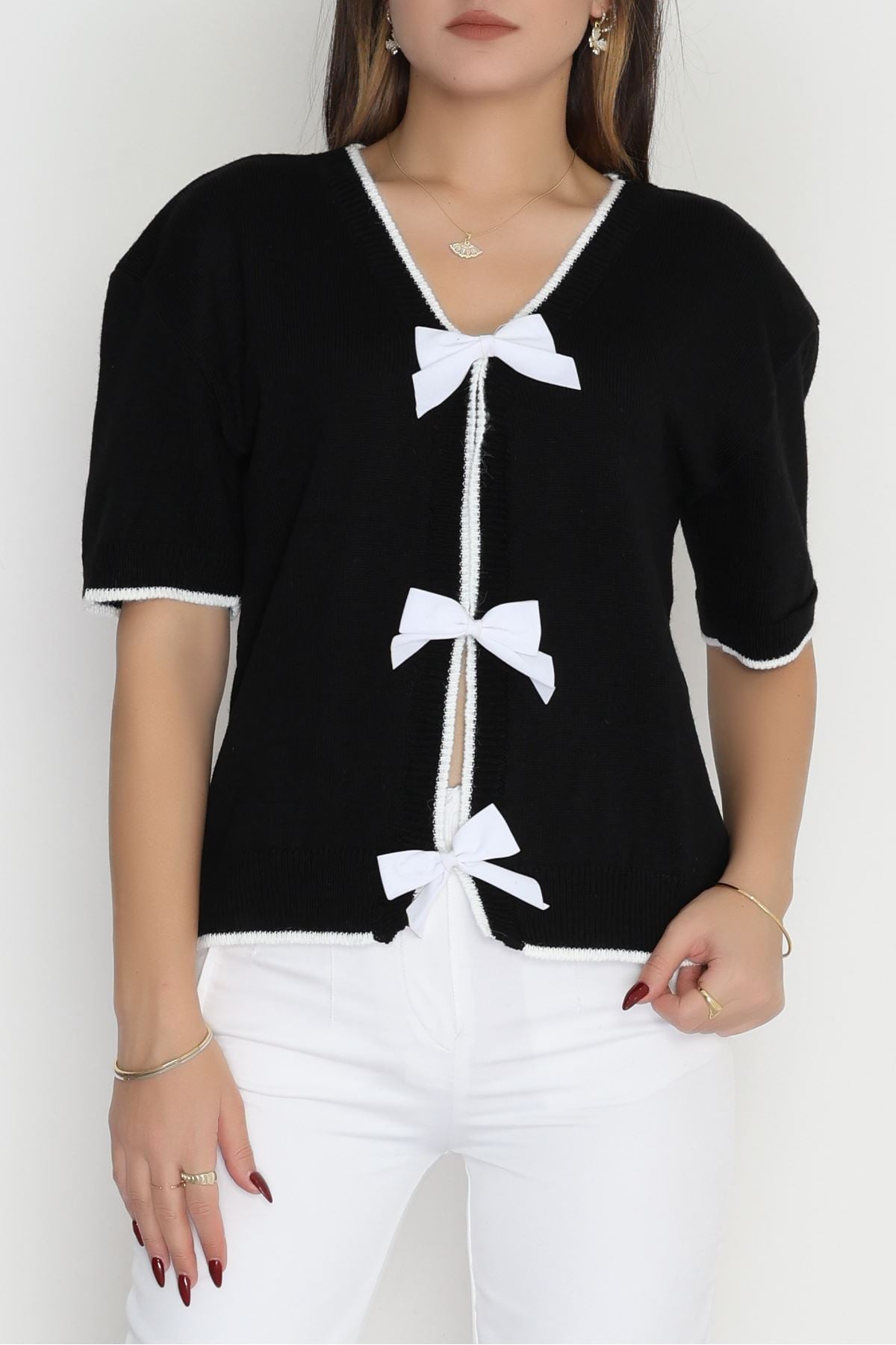Kısa Kollu Fiyonklu Triko Siyah - 2281.1765.