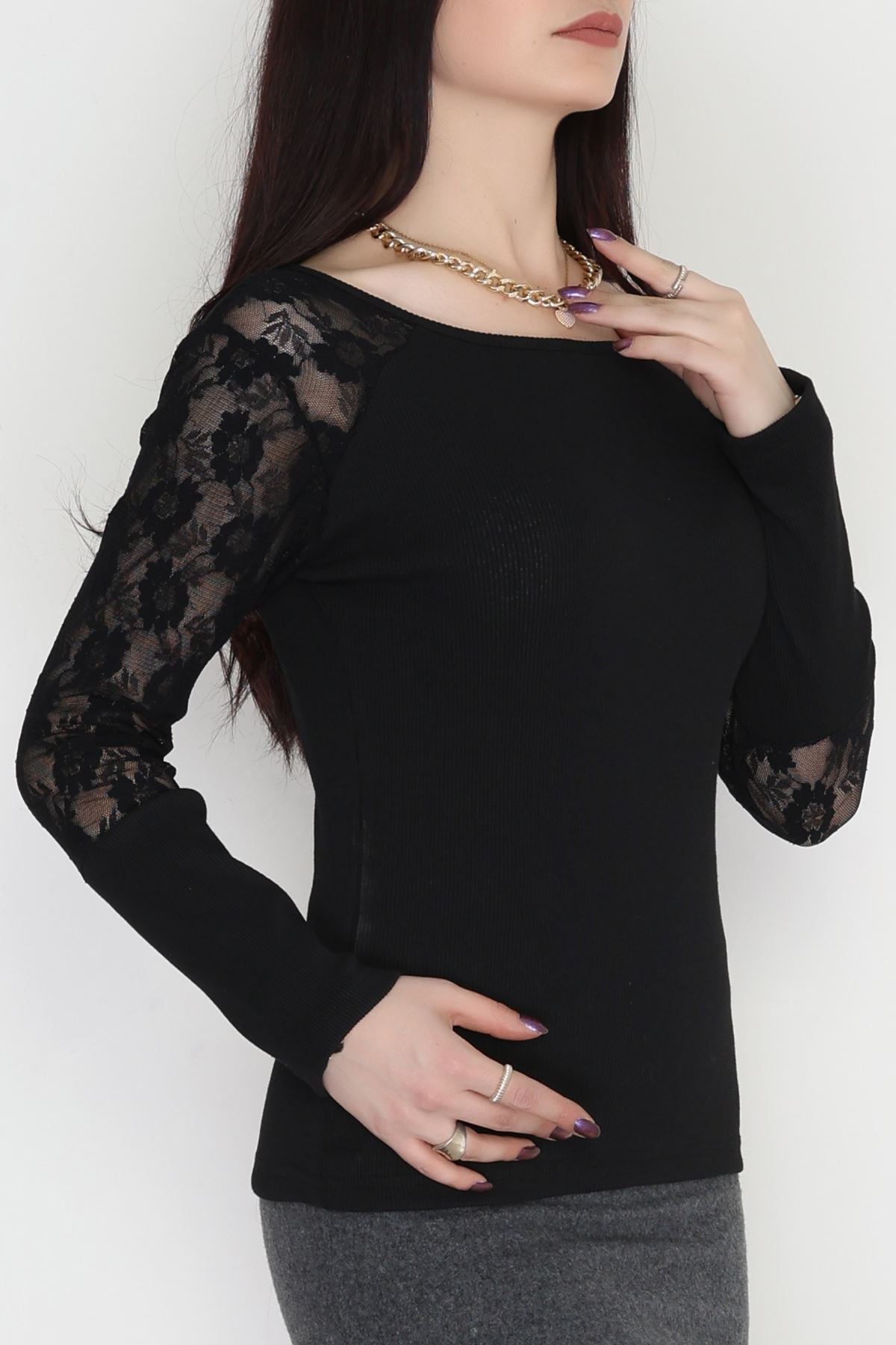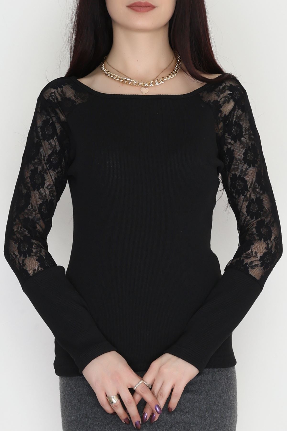Kolu Dantel Kaşkorse Bluz Siyah - 1752.1095.